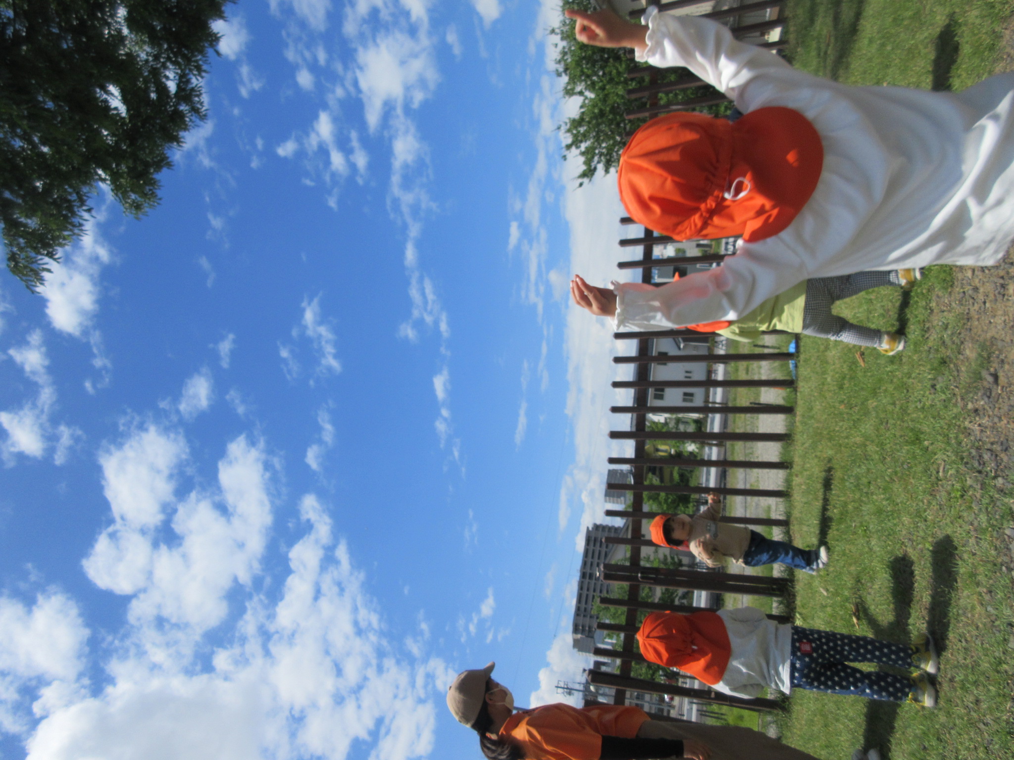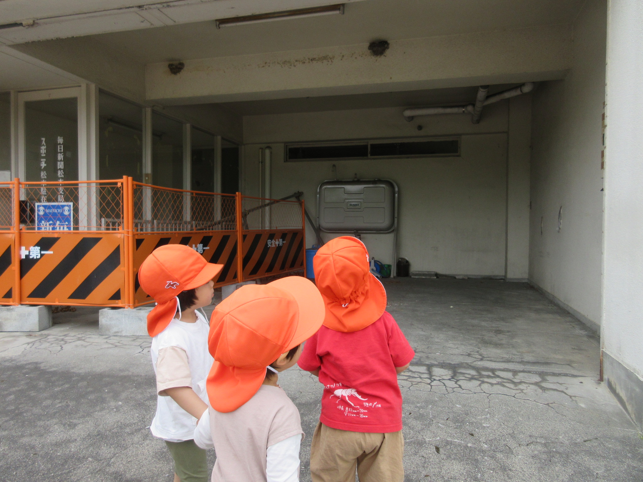 帰り道は園の近くにあるツバメの巣を見て帰りました。ツバメが飛び立つと「行っちゃったね〜」「どこ行くのかな?」と想像を膨らめながら、お話を楽しむ子どもたちでした![]()