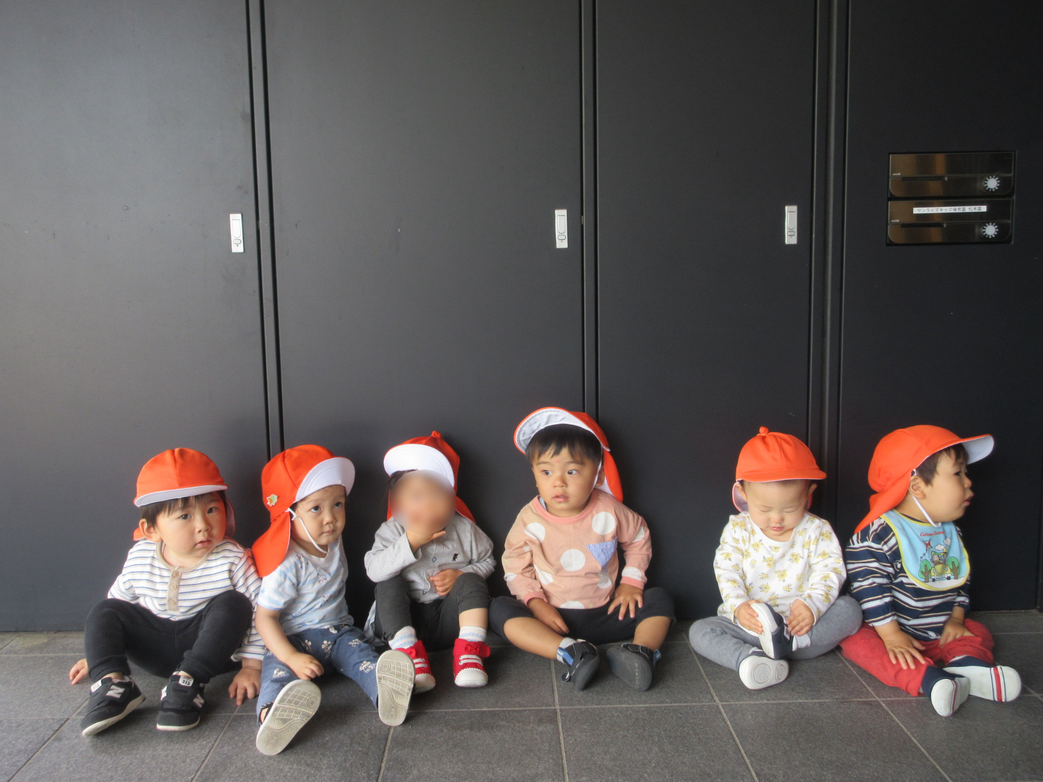 保育園の前で集合写真をパシャ![]()