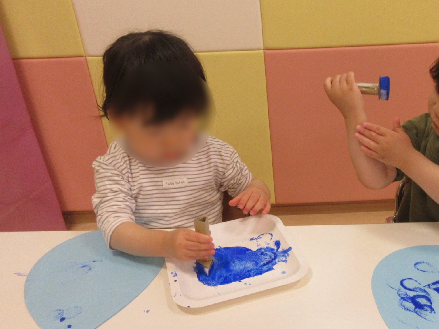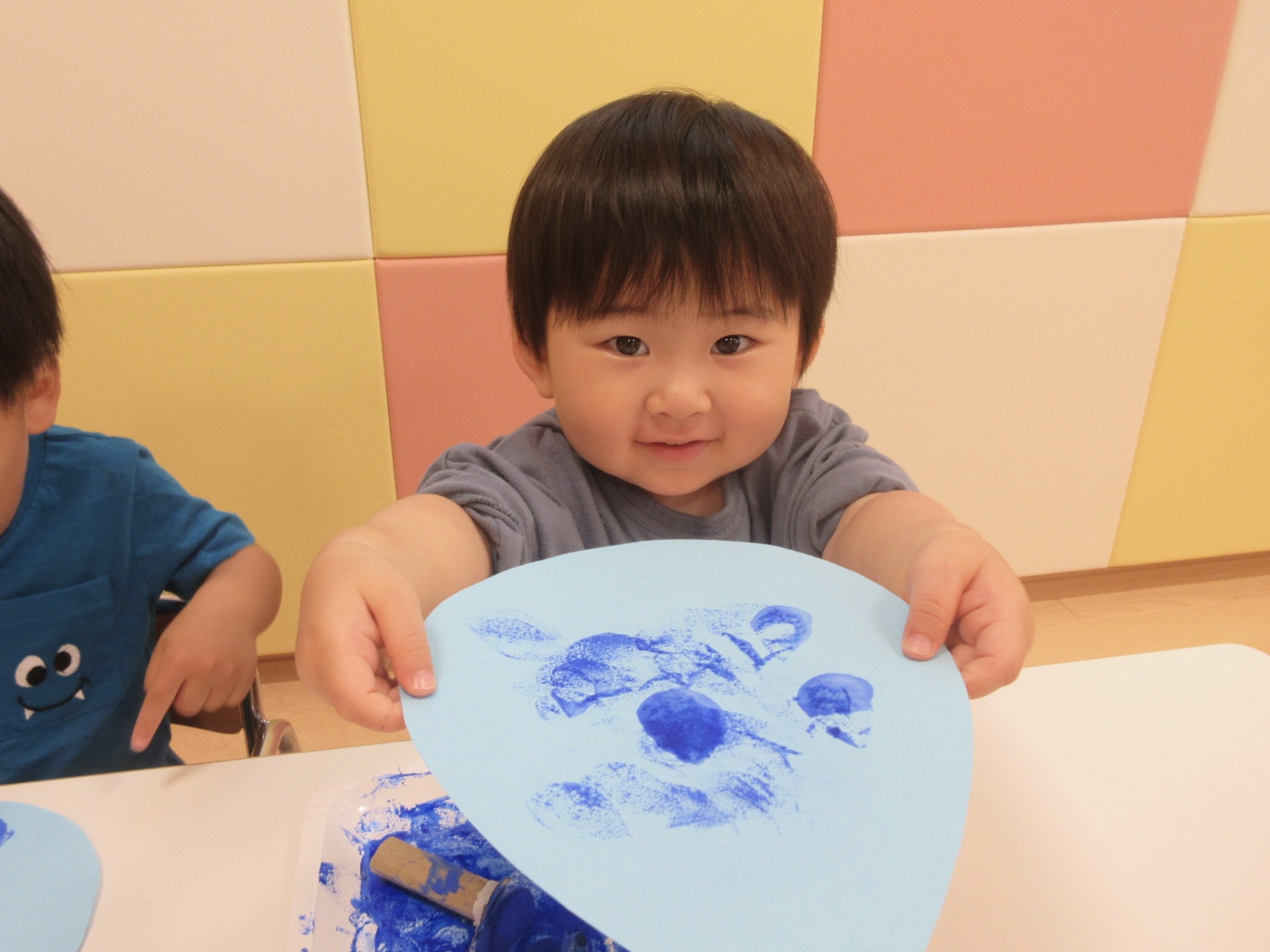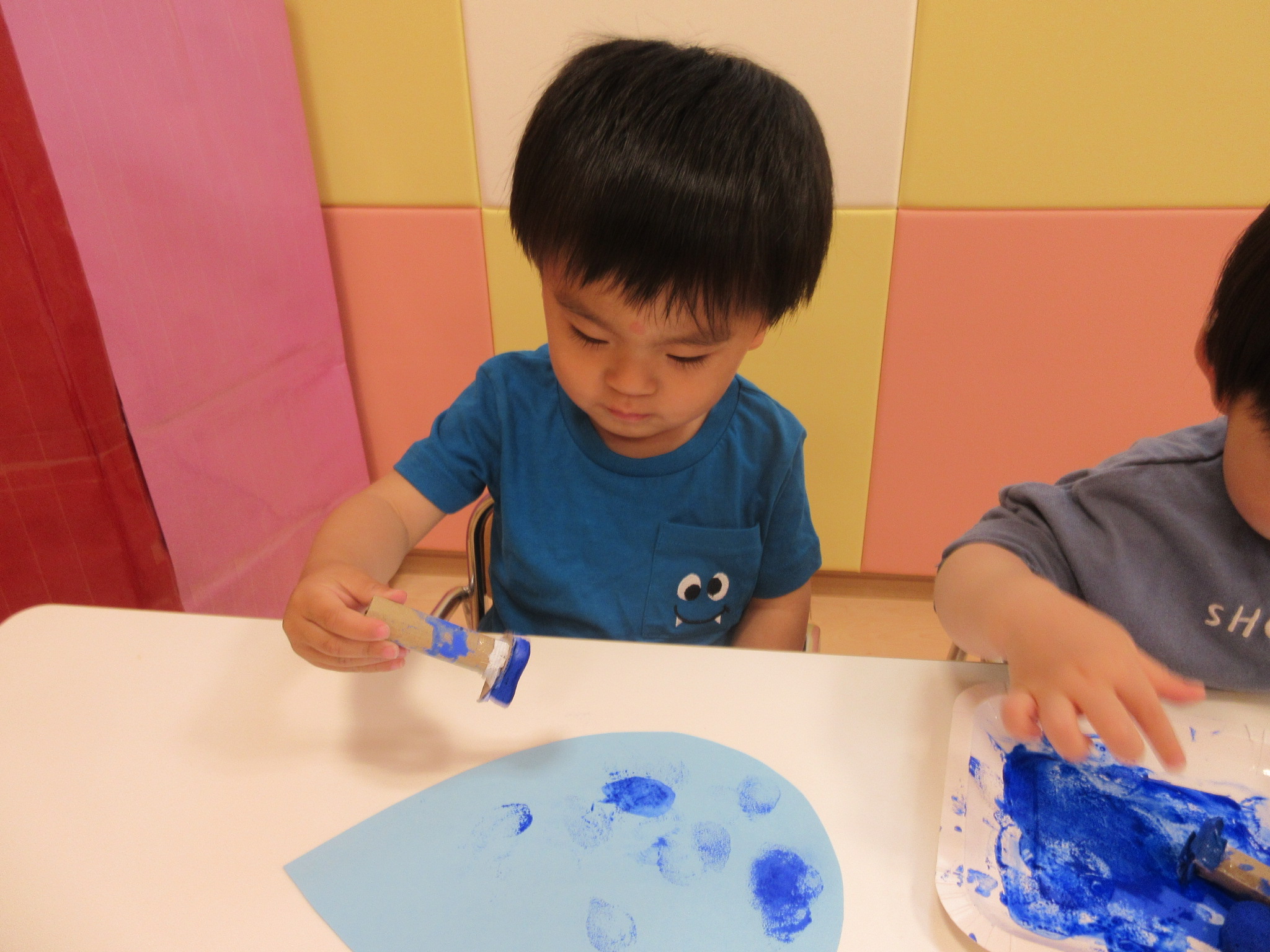 ↓スタンプについたインクを指にペタッとつけている子も![]()