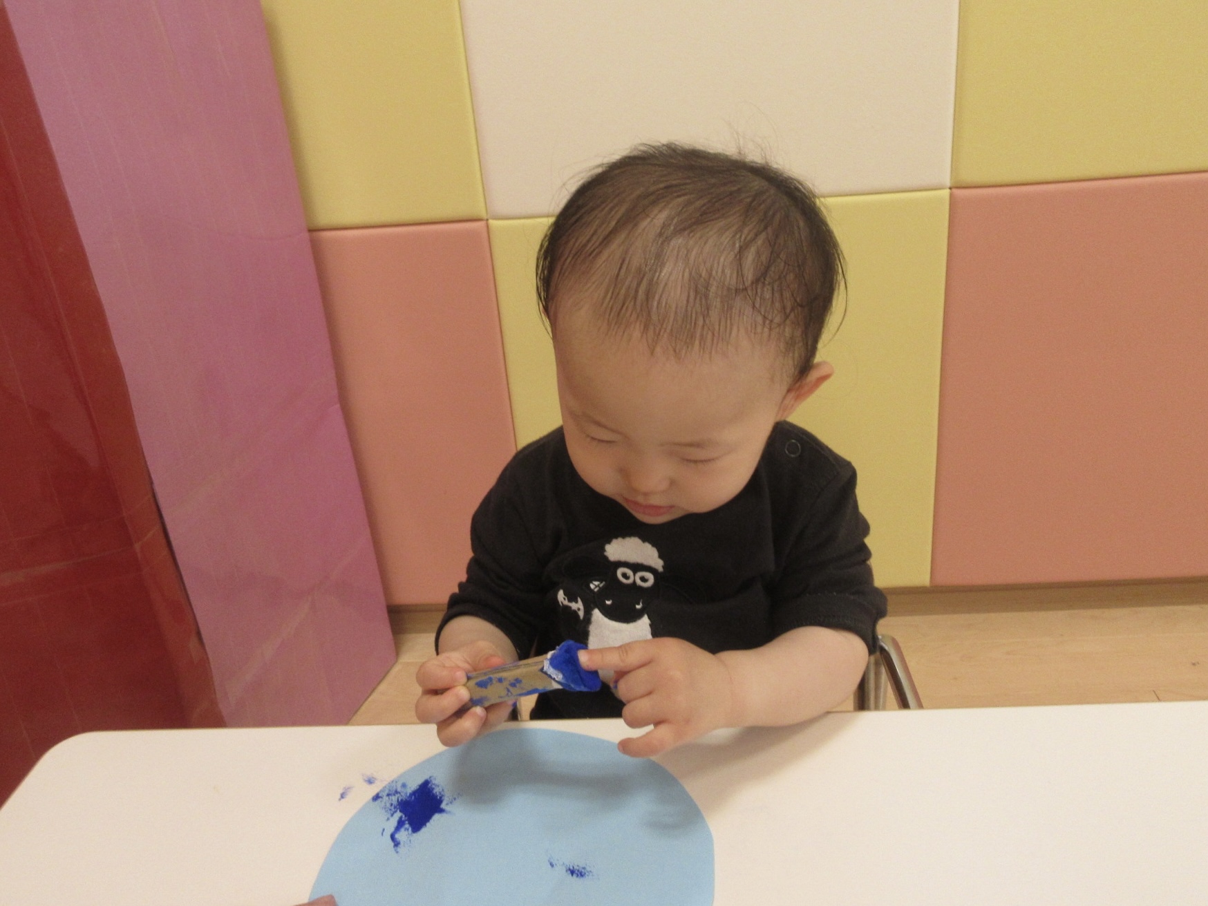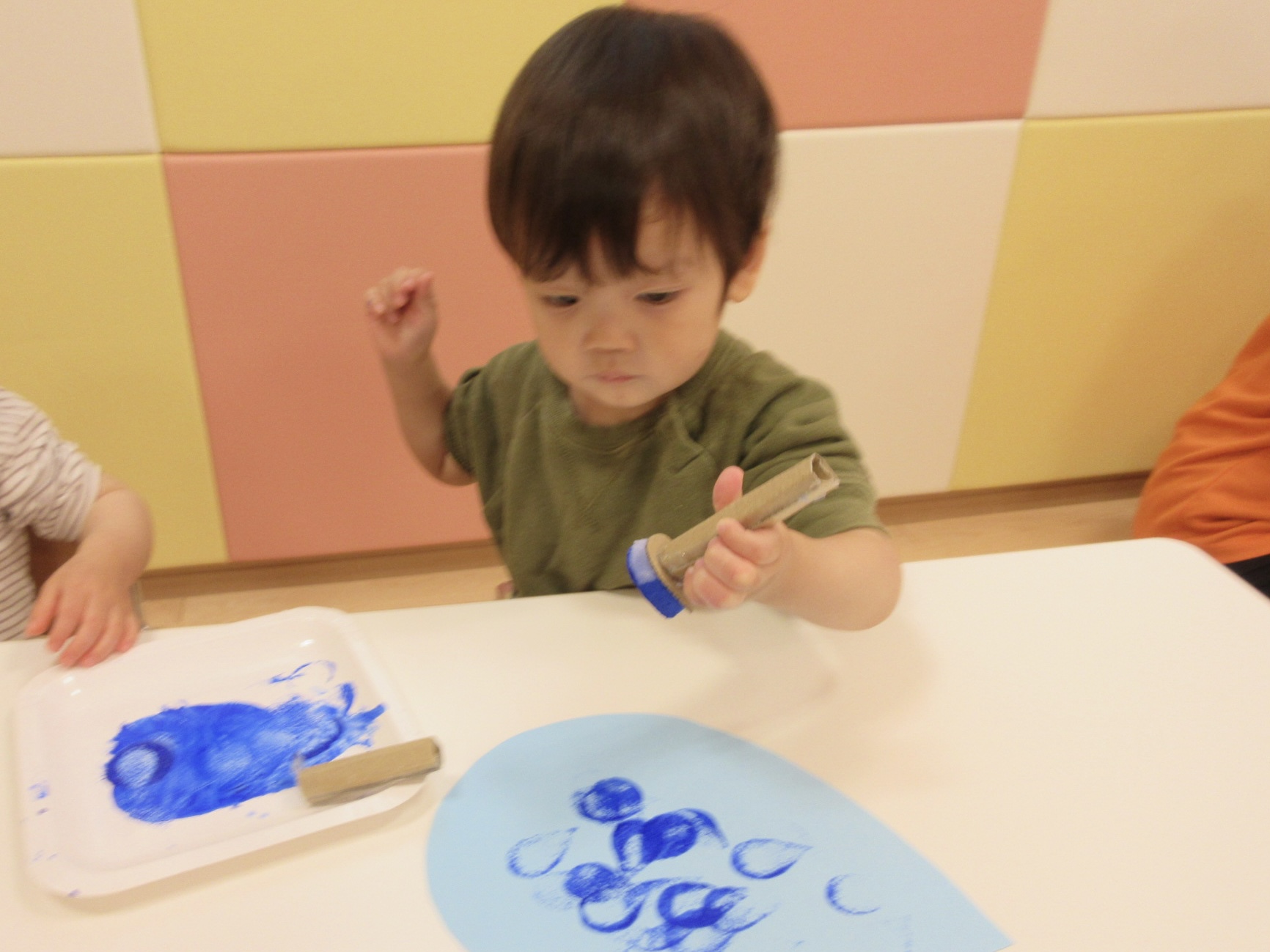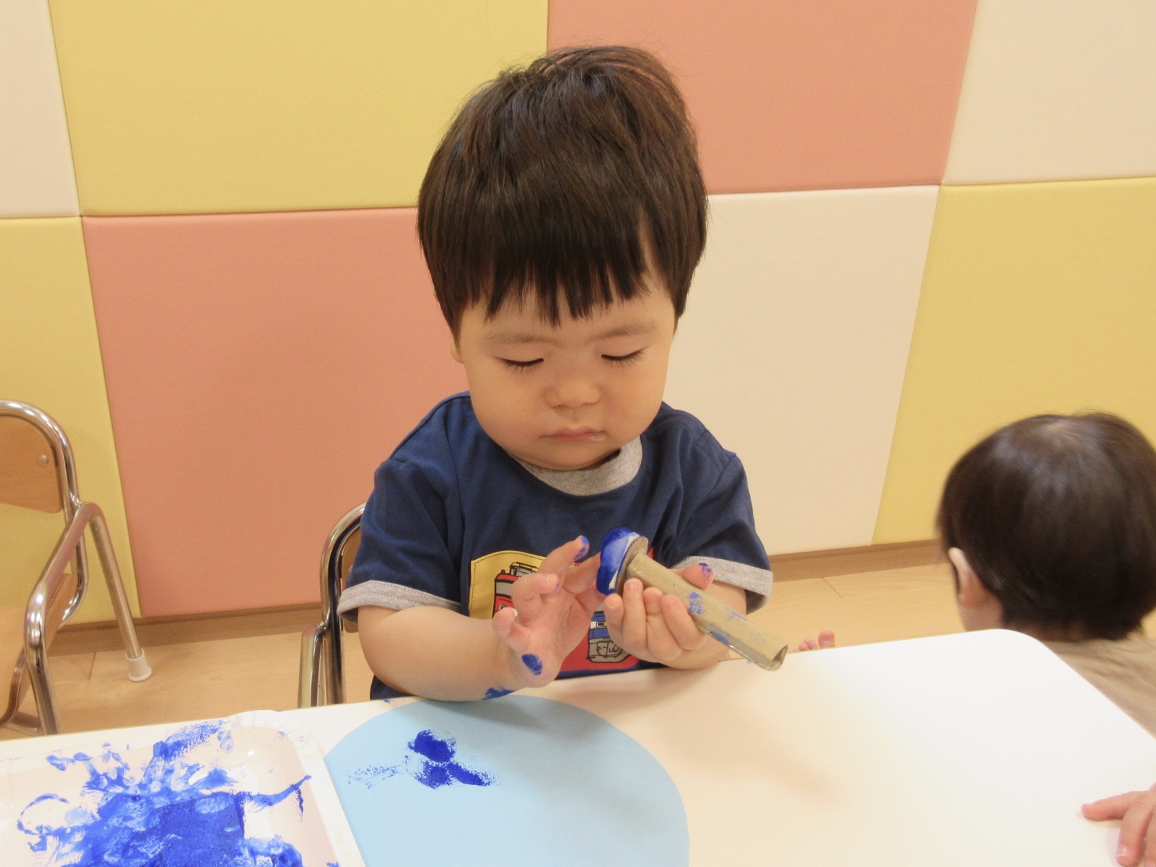 ↓スタンプについたインクを指にペタッとつけている子も![]()