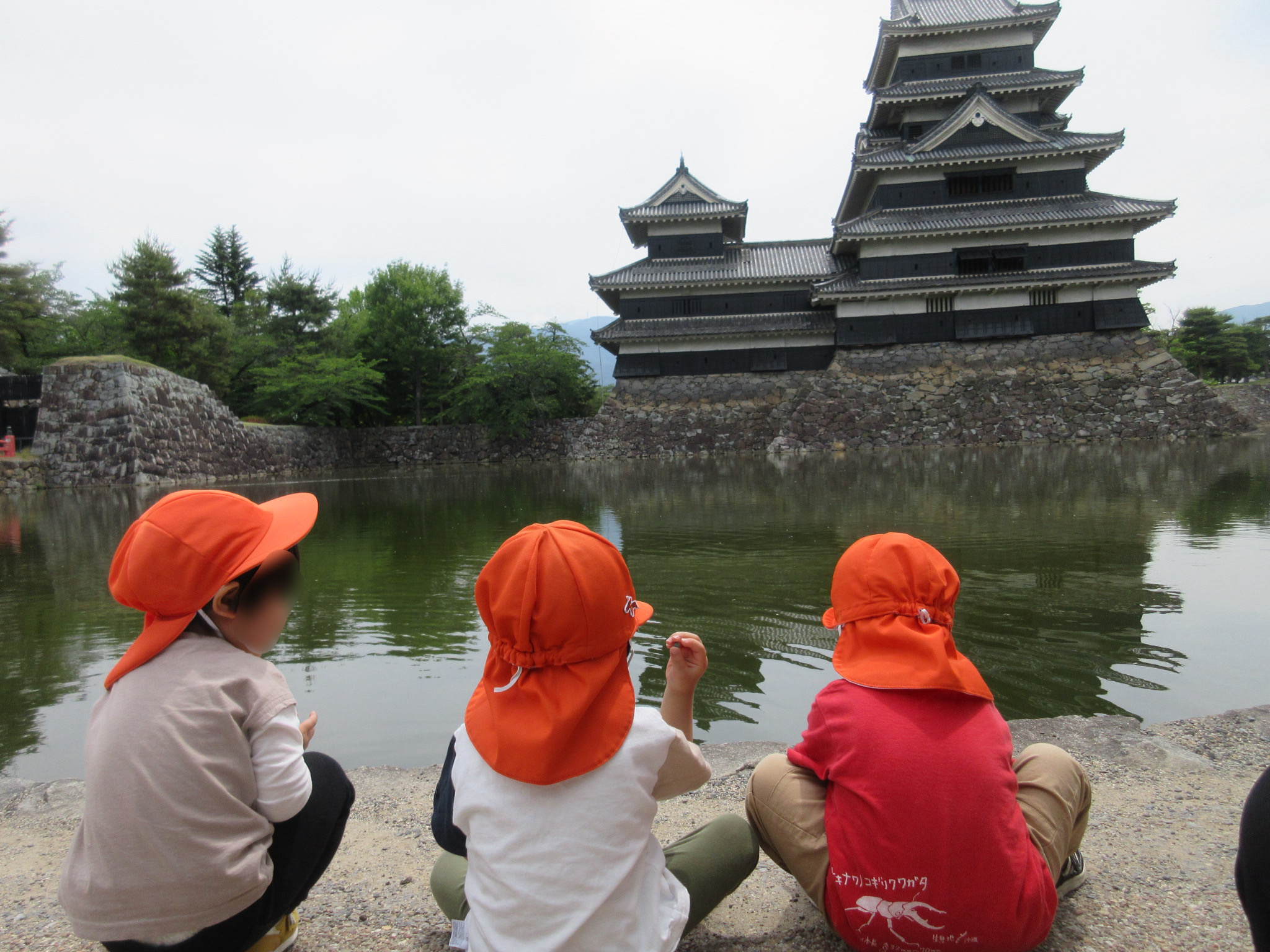 沢山歩いた後は、みんなで座ってのんびりと松本城を見ていますよ![]()