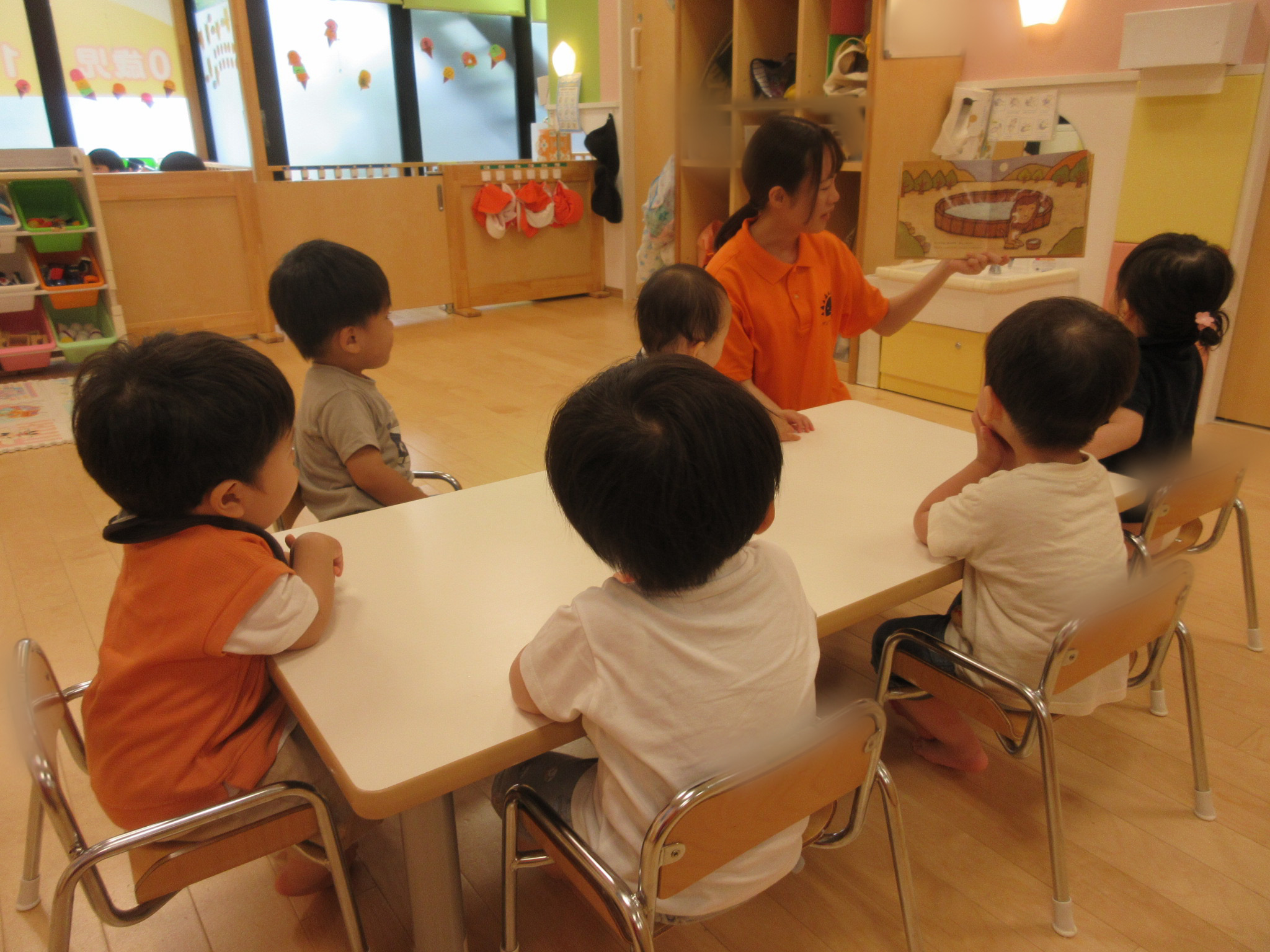 最後に動物たちがお風呂に「どぼーん」と入る場面では「キャ〜」と大はしゃぎのいちご組さんでした🍓