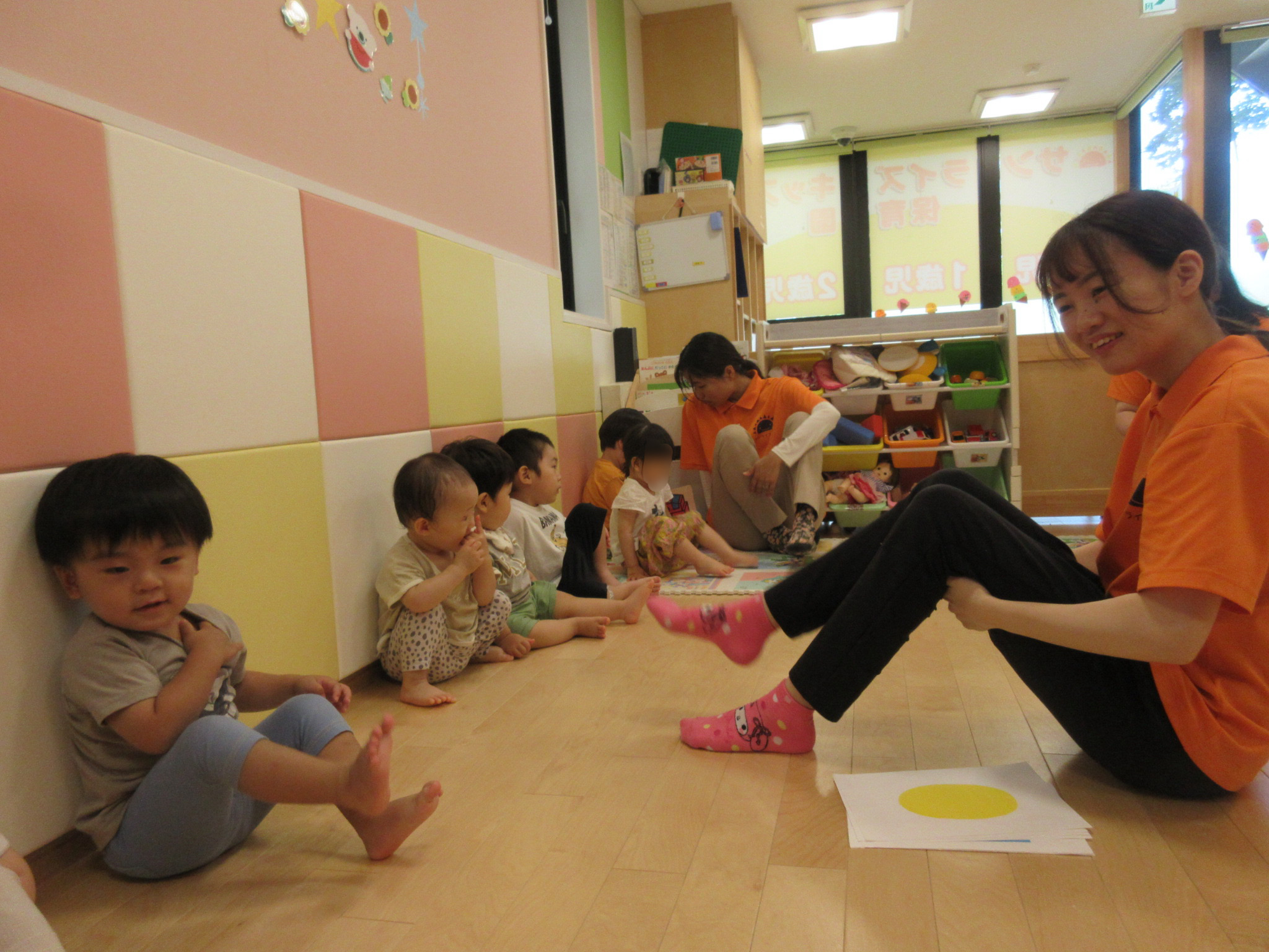音楽に合わせて手をパチパチと叩いたり、足をバタバタさせたりと、動きもバッチリな子どもたちです