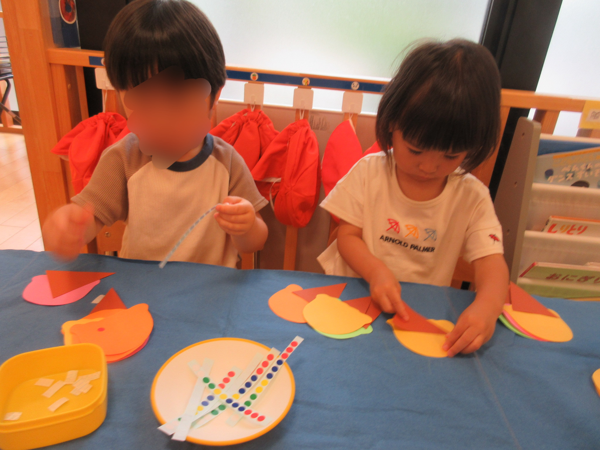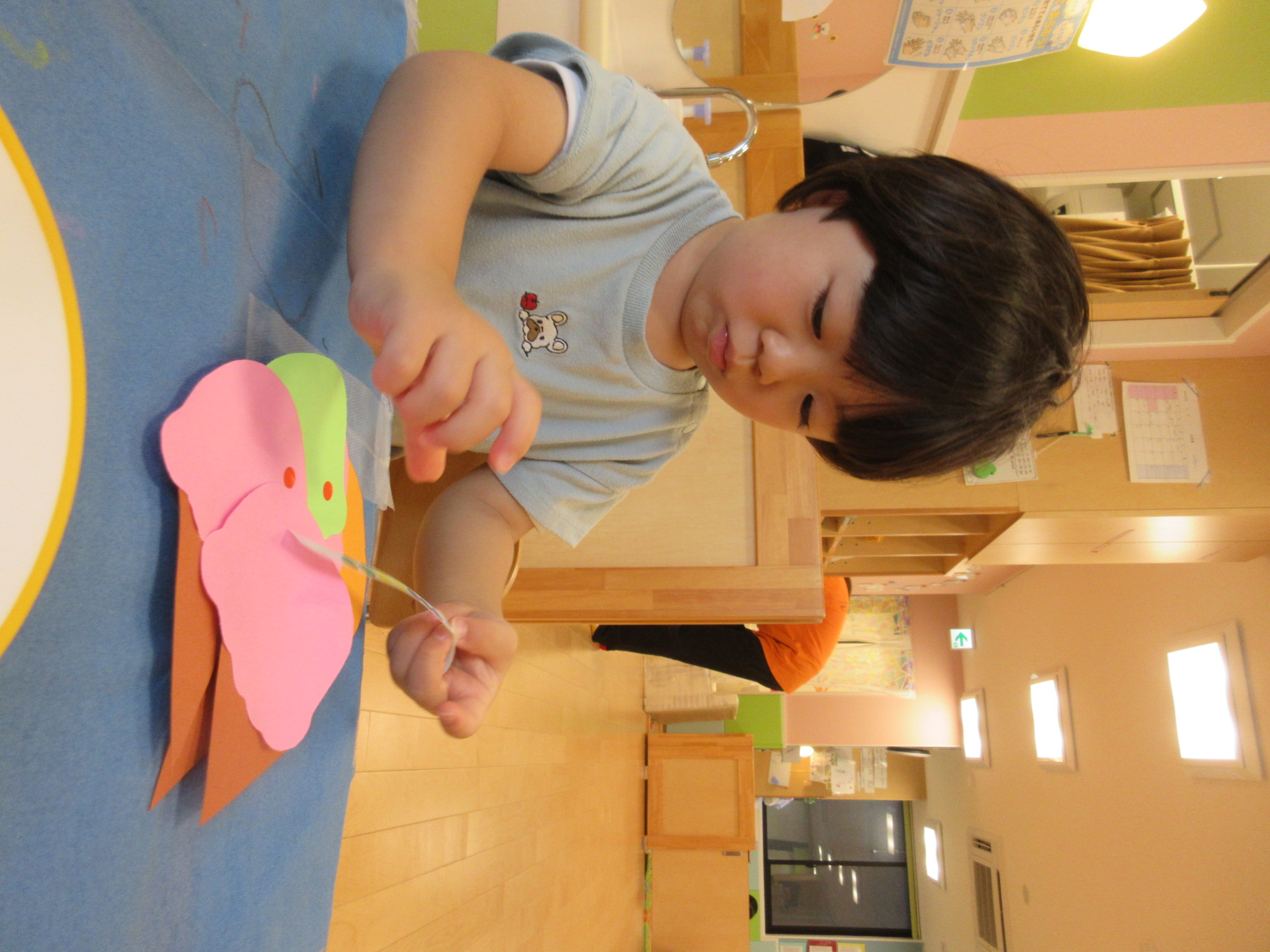 来週は口をサインペンで描いてもらおうと思っています。完成したものは来週のブログでお伝えさせていただきますね!指先を使った遊びとしてスズランテープを割くのはお家でも簡単にできる遊びですのでもしよろしければやってみてくださいね![]()
