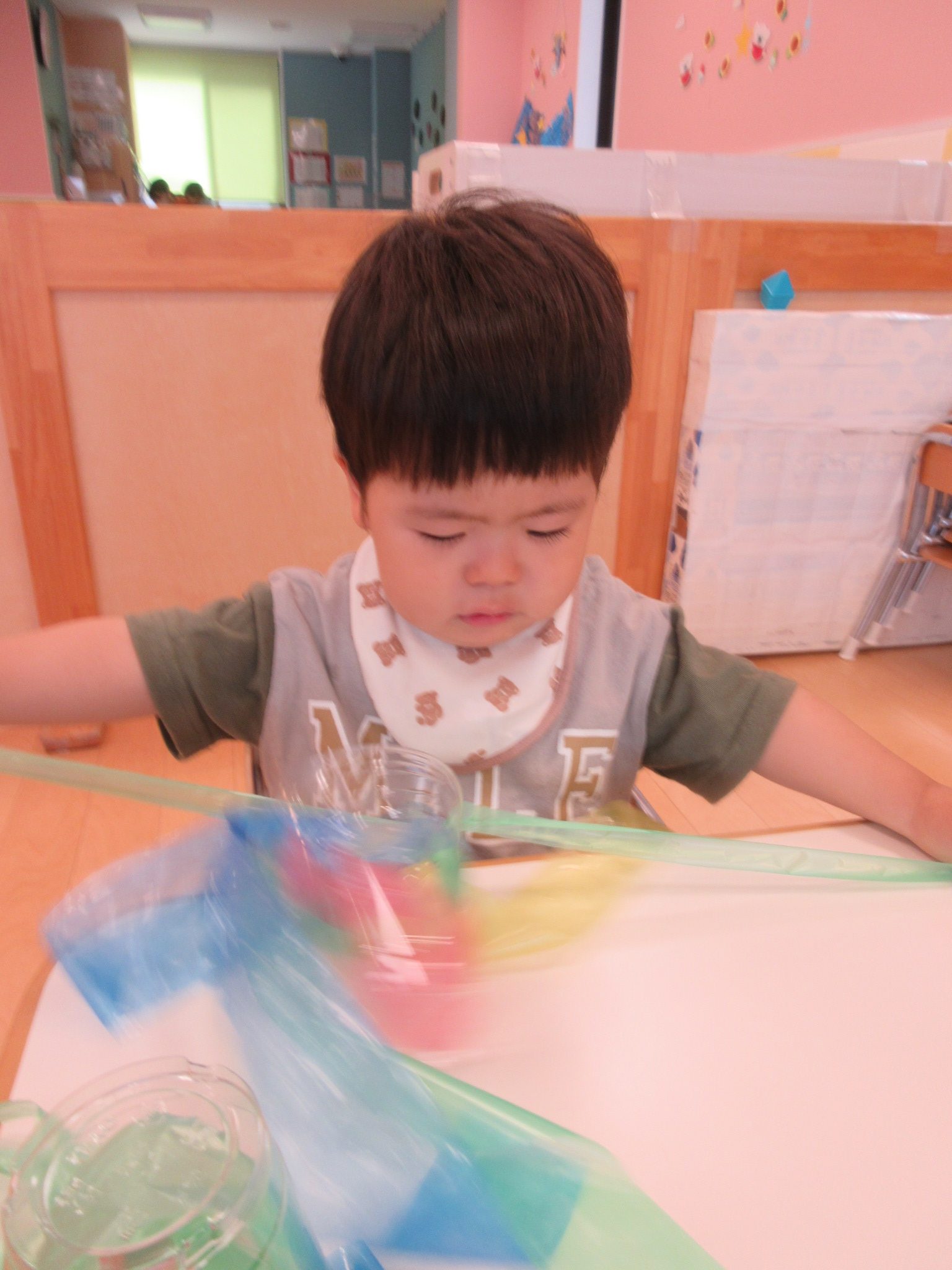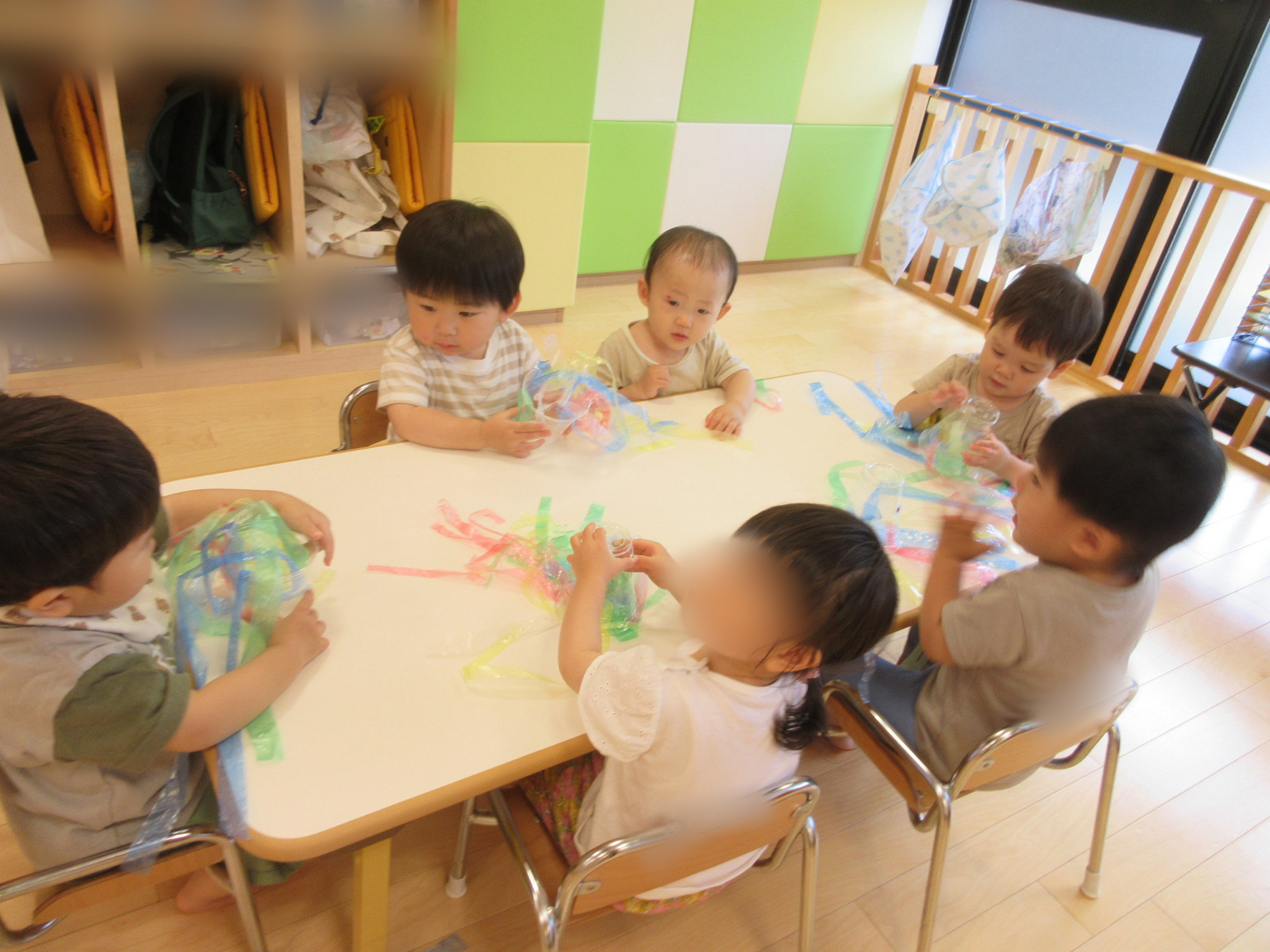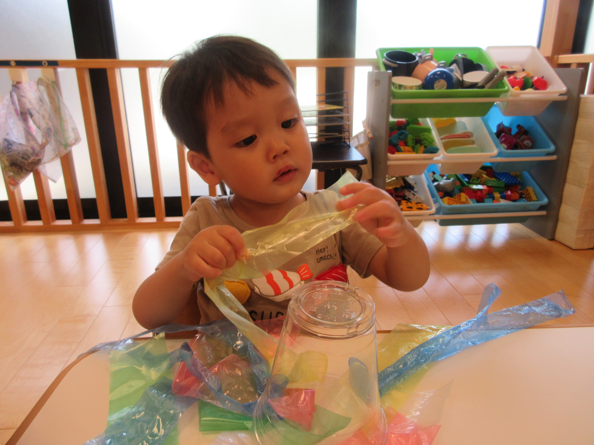 ↓こちらの子はカップの中にスズランテープを入れることが楽しいようで詰めていました![]()