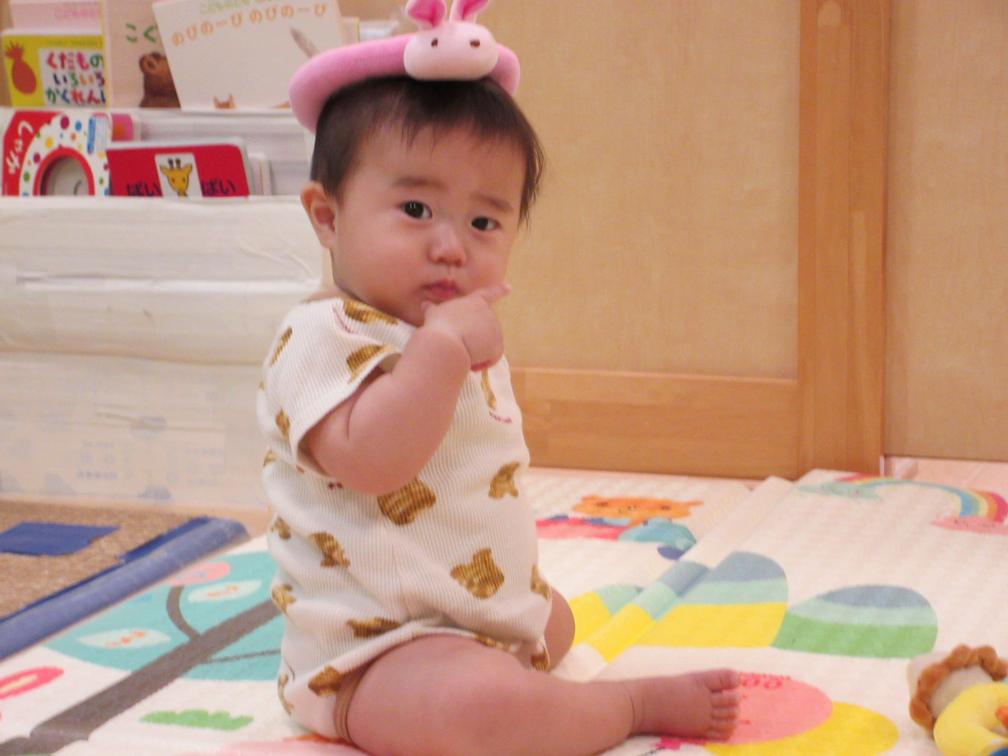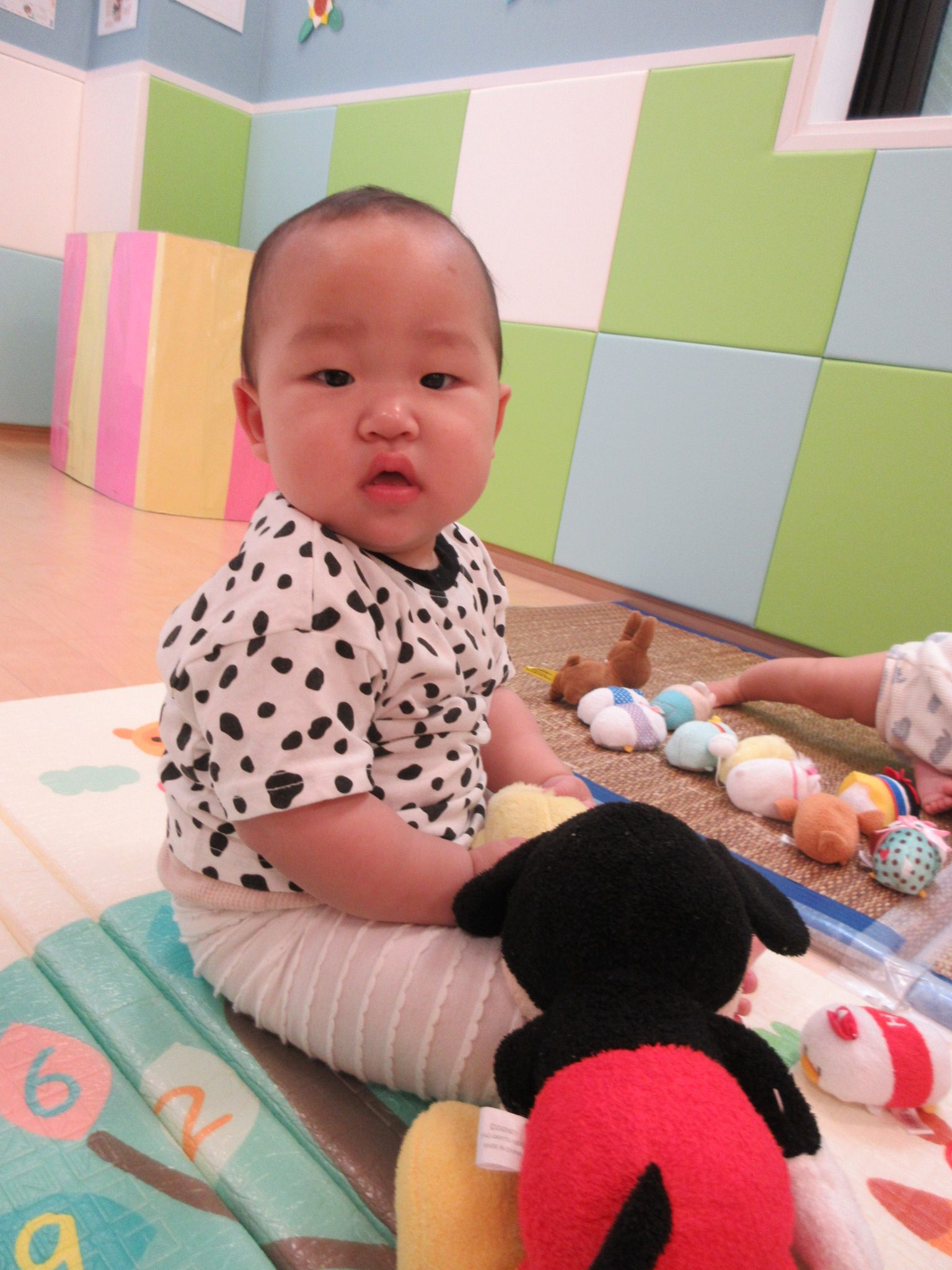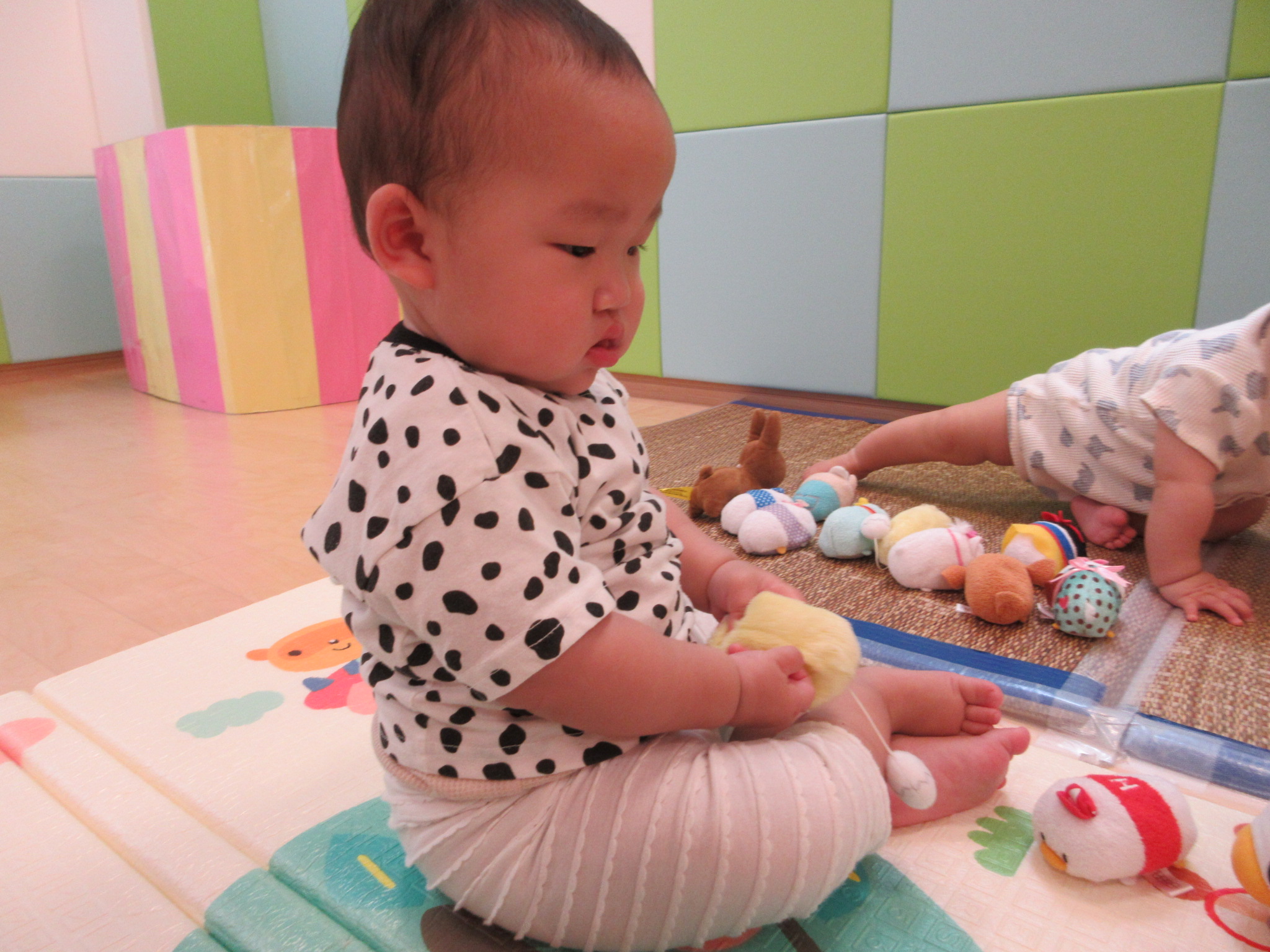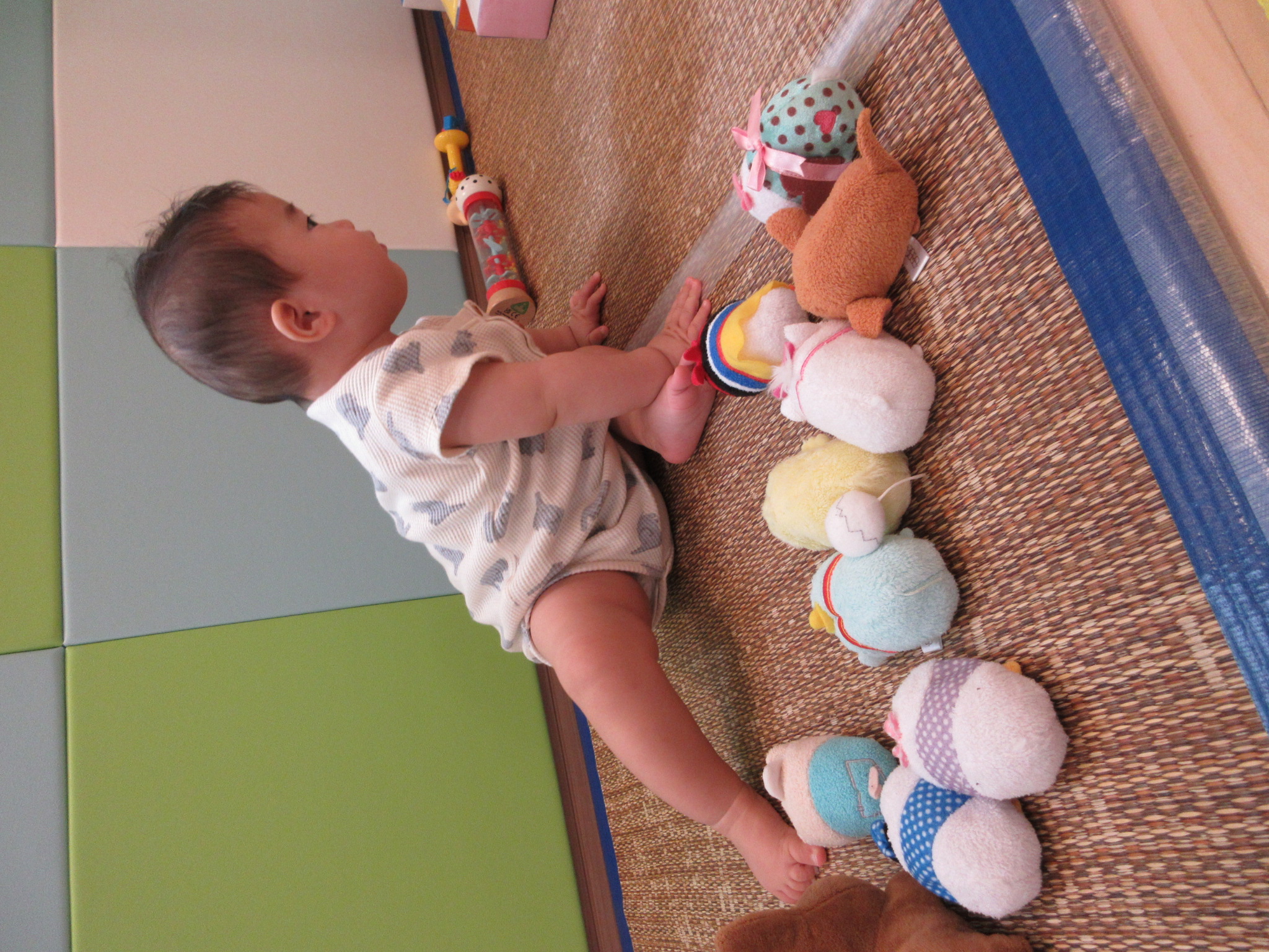 先生に頭にのせられたり並べられたお人形と見つめ合って見たりしていましたよ![]()