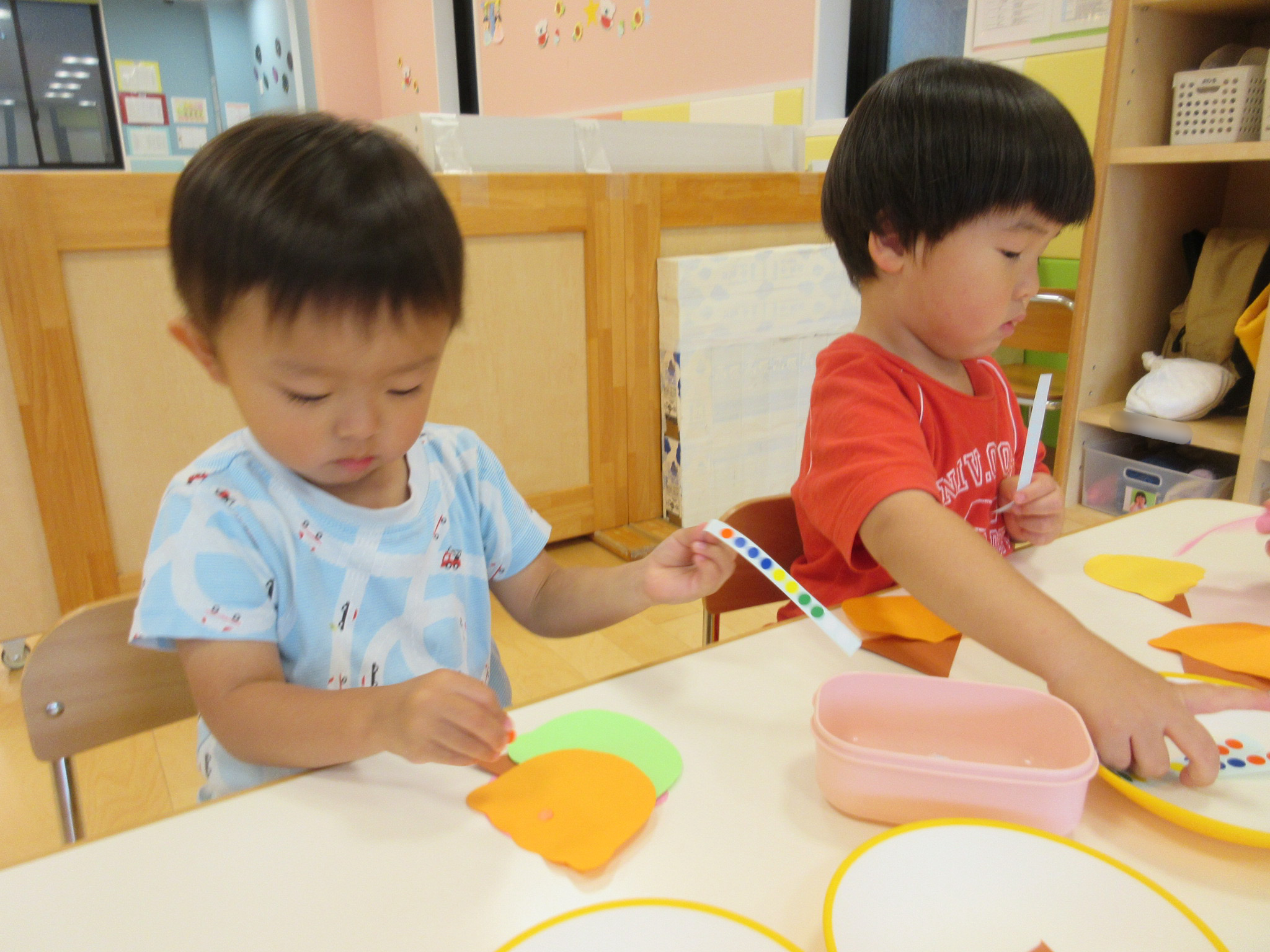 その後は、クラゲの目をそれぞれシールで貼ってもらいました![]()