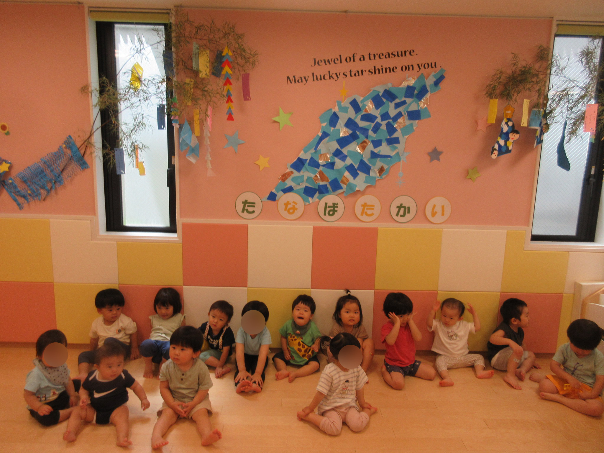壁に飾られている笹は、株式会社MTSシステム様が子どもたちにと敷地内の立派な笹をいただきました。
