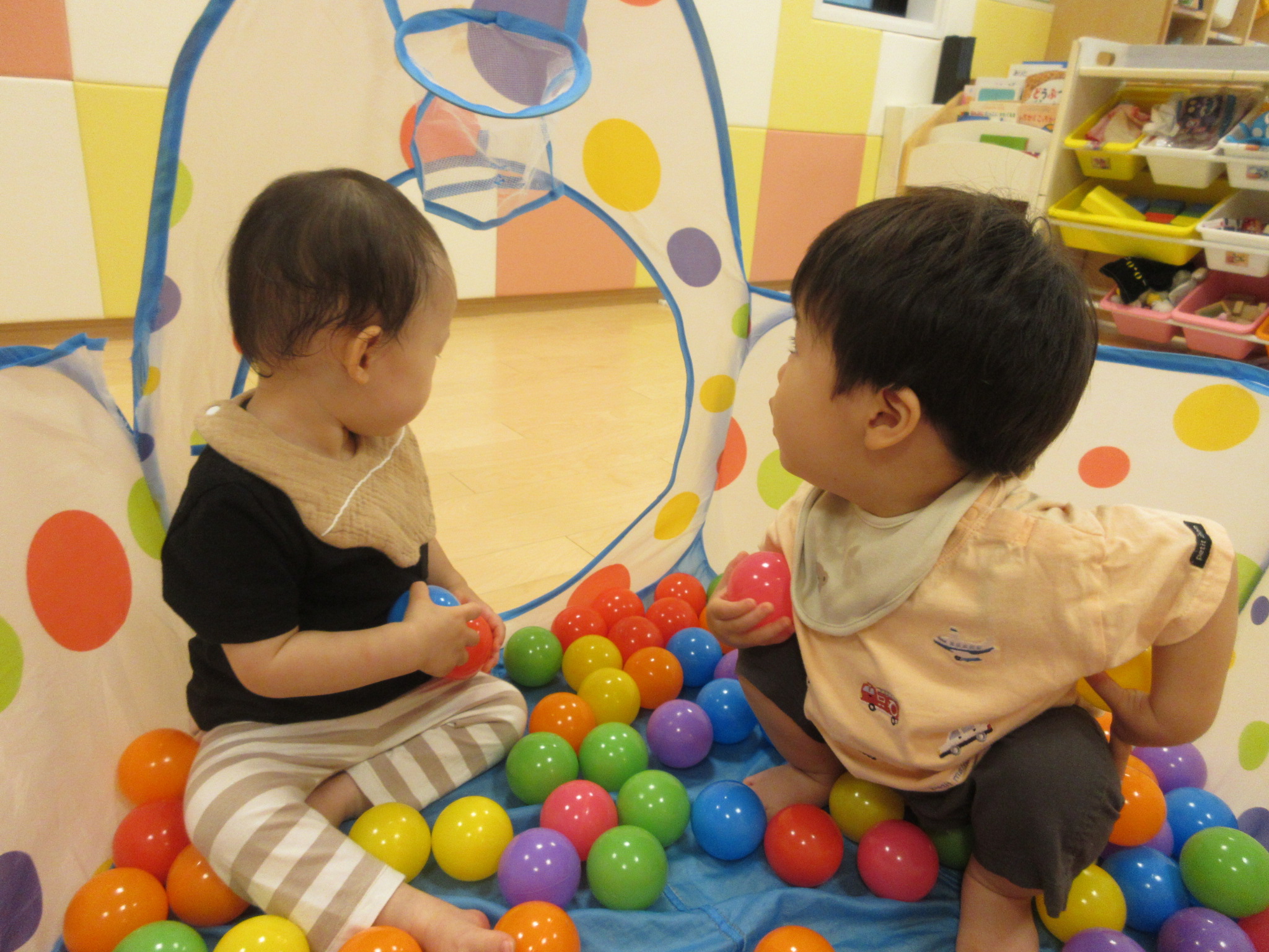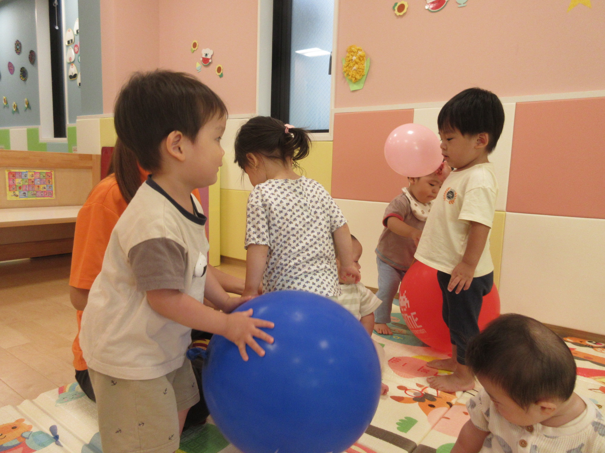 また、風船遊びやボールプールなど今週は色々な遊びもしました。赤と青の大きな風船はいちご組さんの保護者の方からいただきました。ありがとうございます![]()