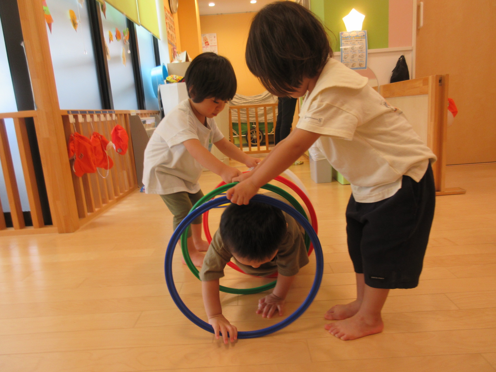 お友だちと協力して、順番にトンネルを潜ったりもしました![]()