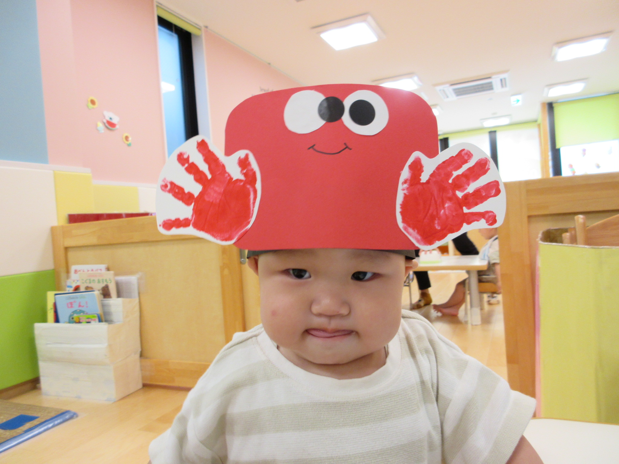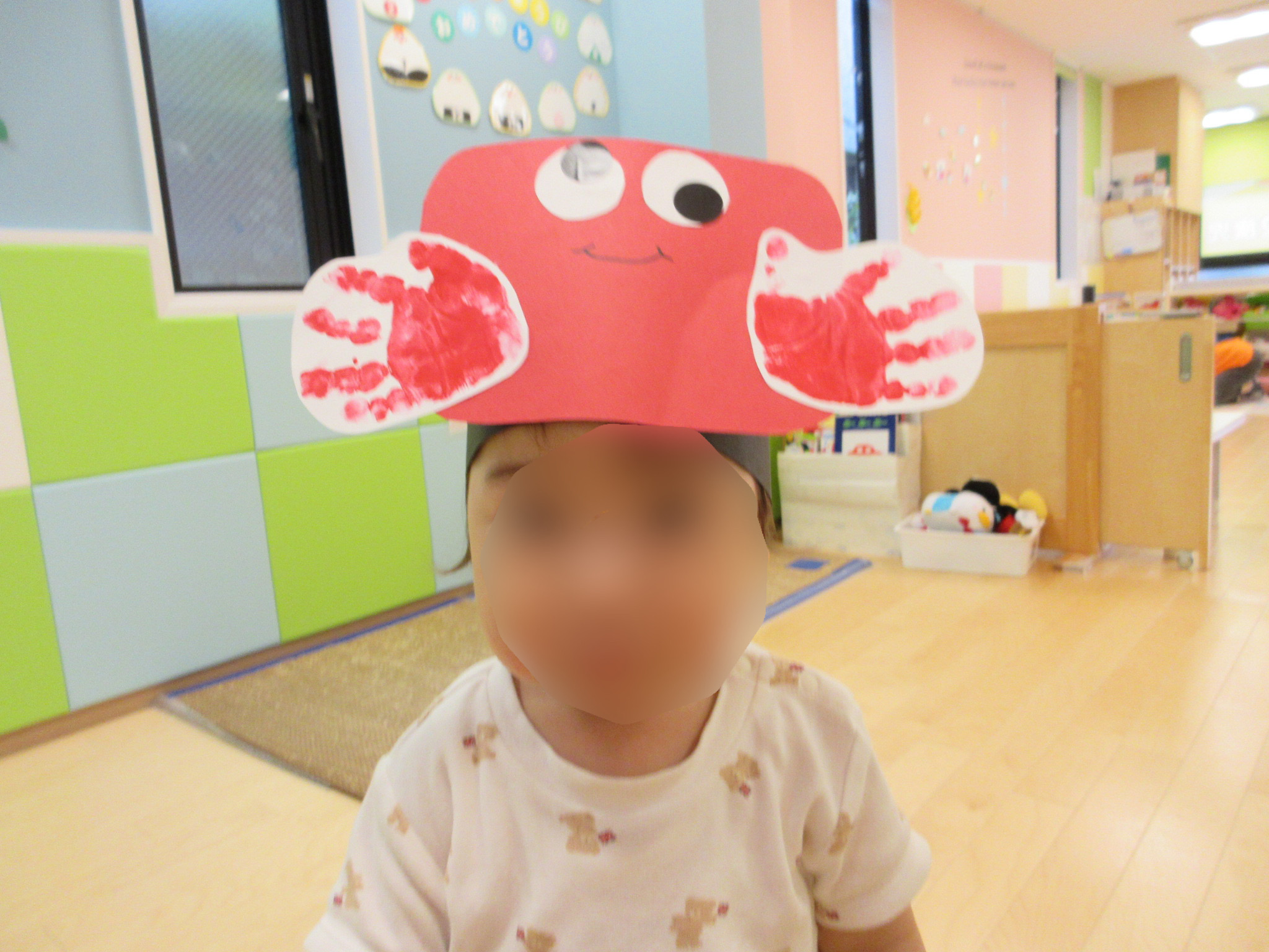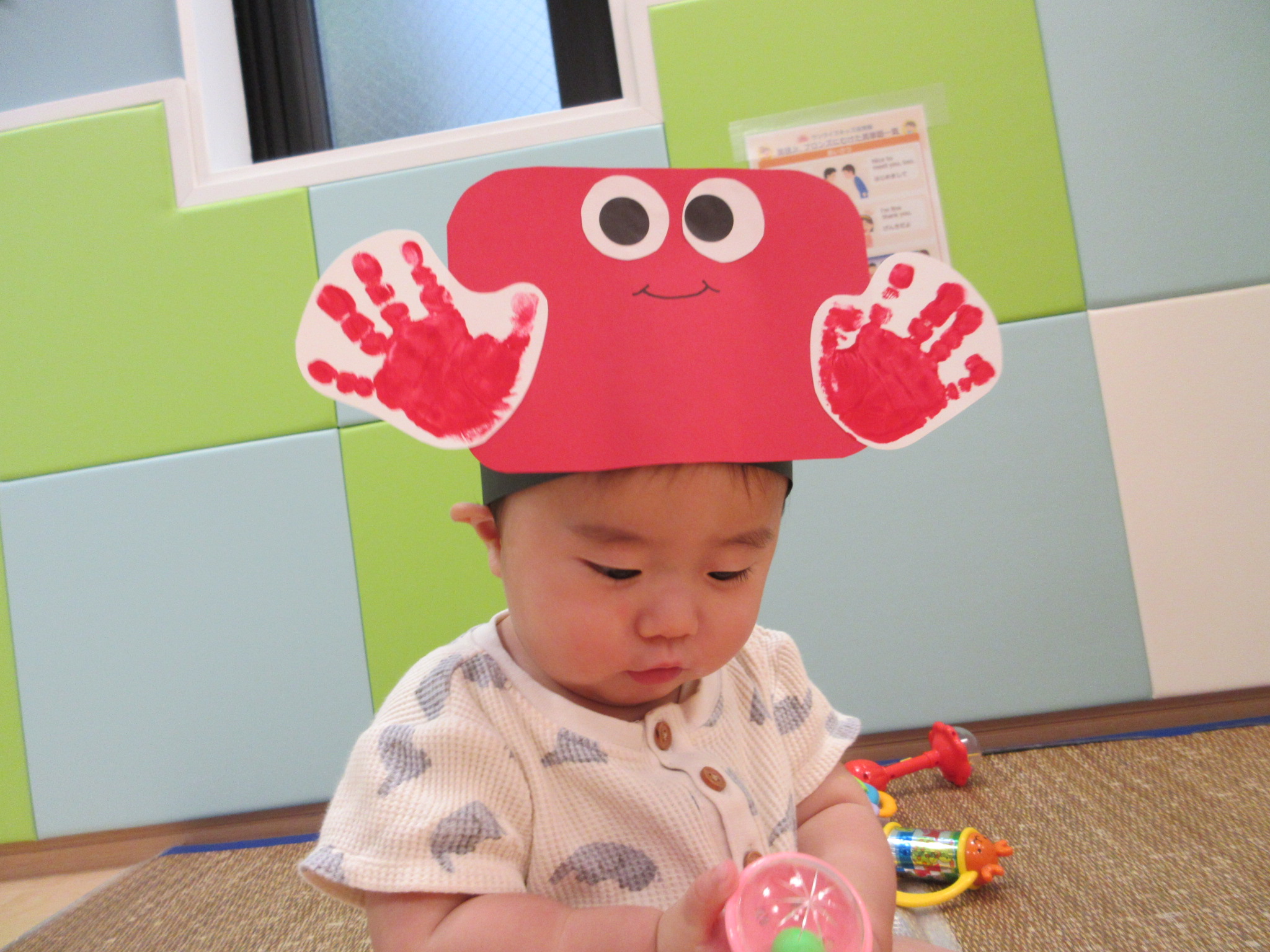カニの目と、カニのハサミを子どもたちの手形を使って作りました![]()
