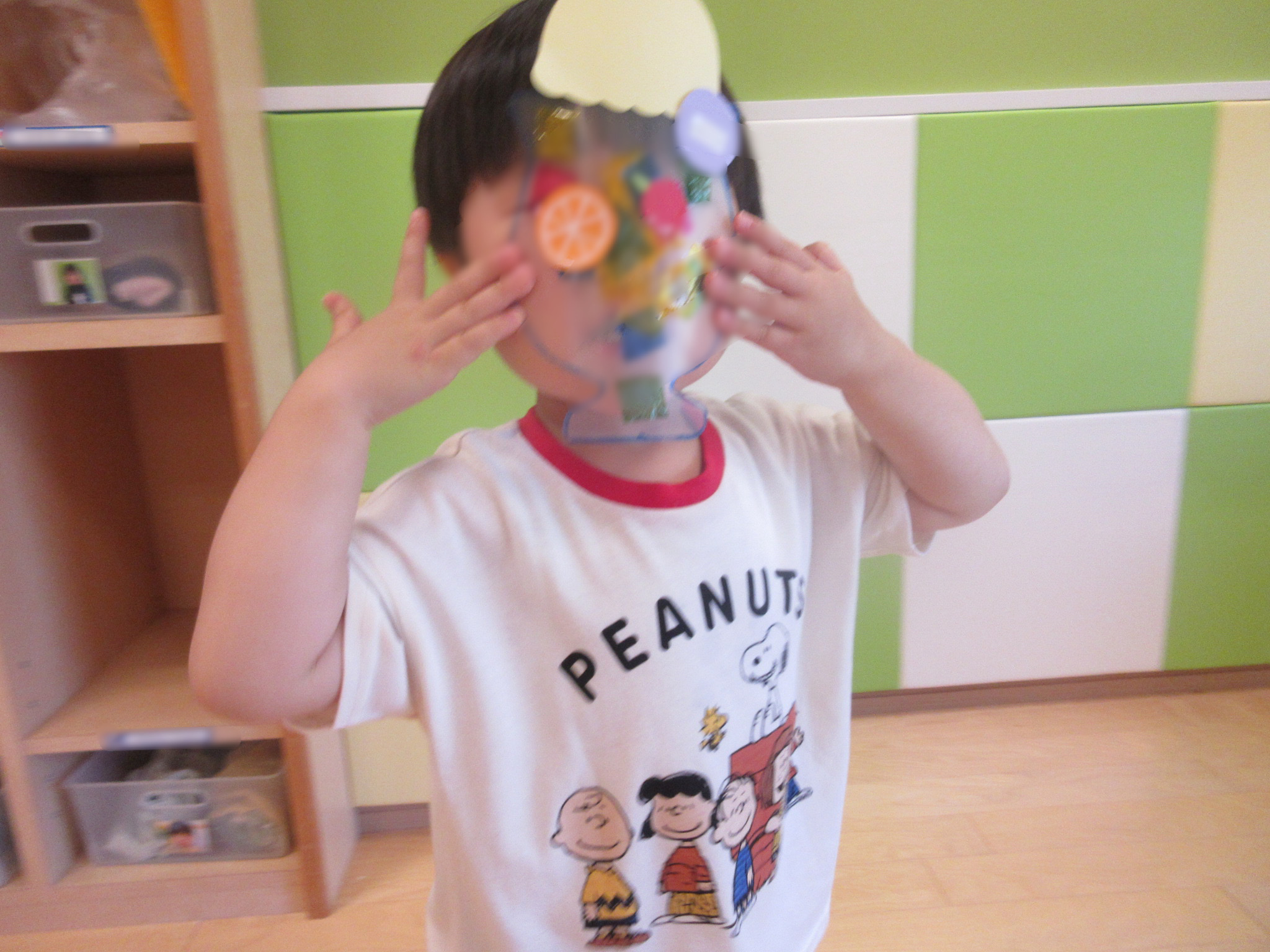 作ったカニさんはお面にすることに![]()