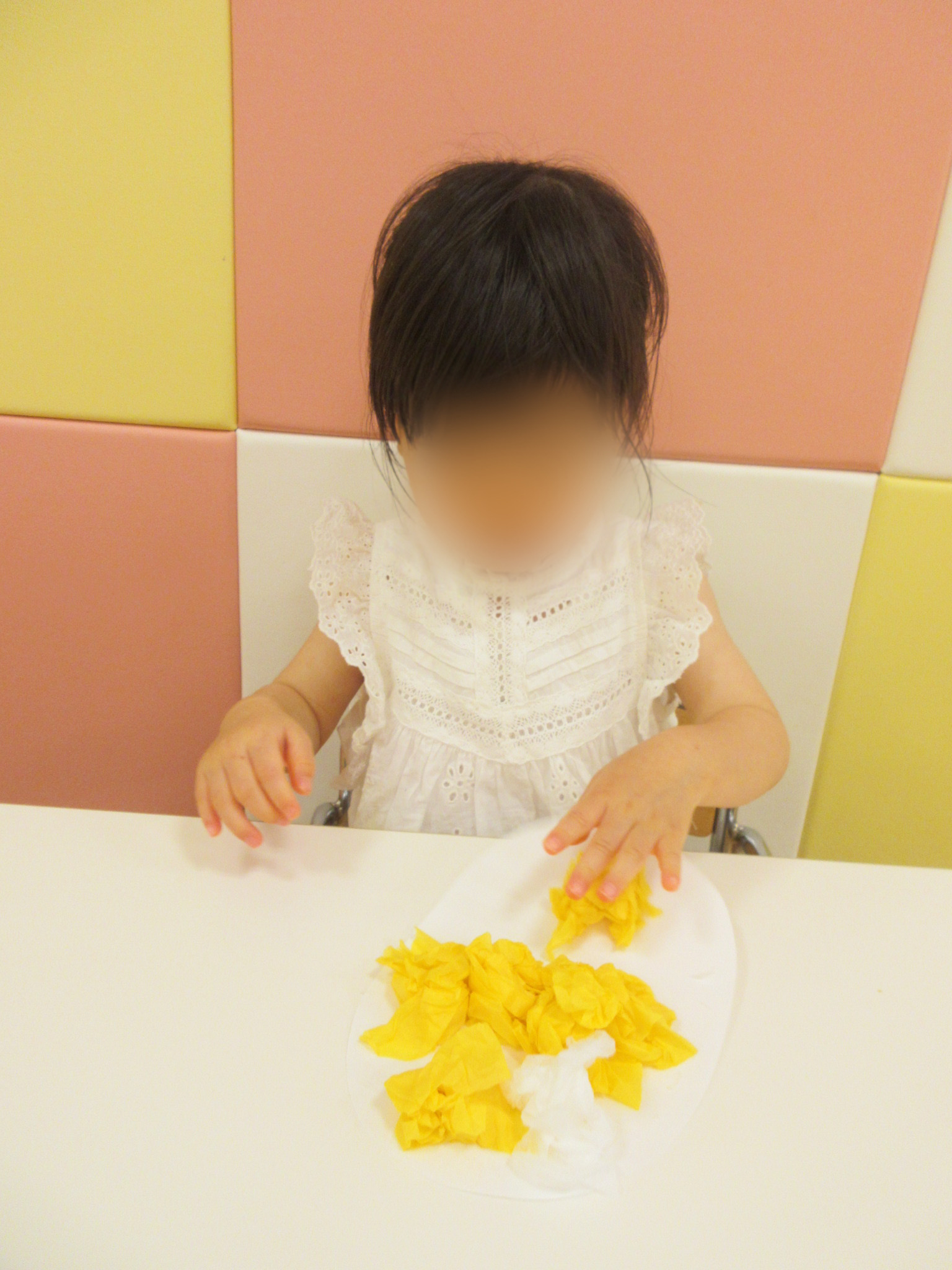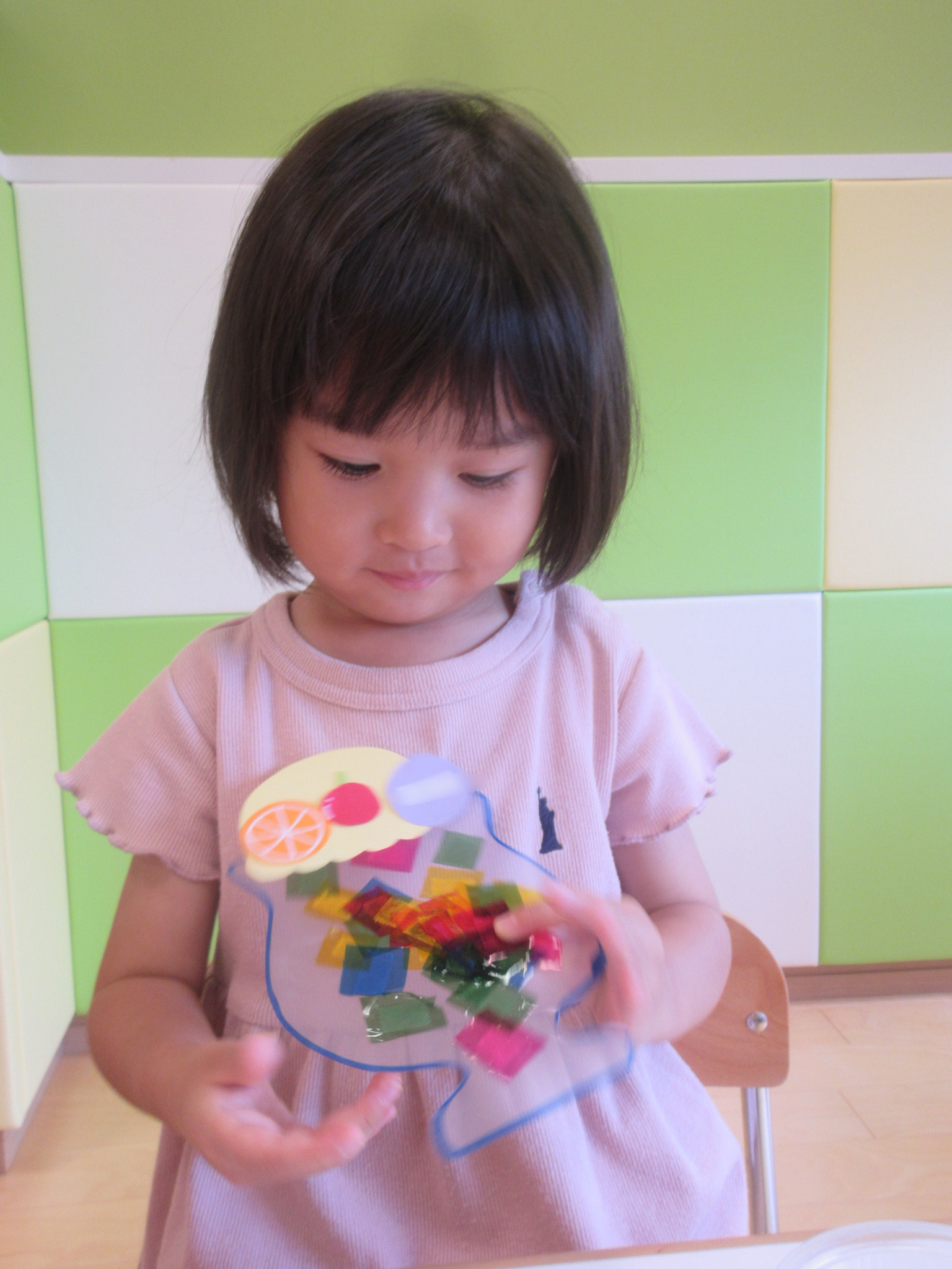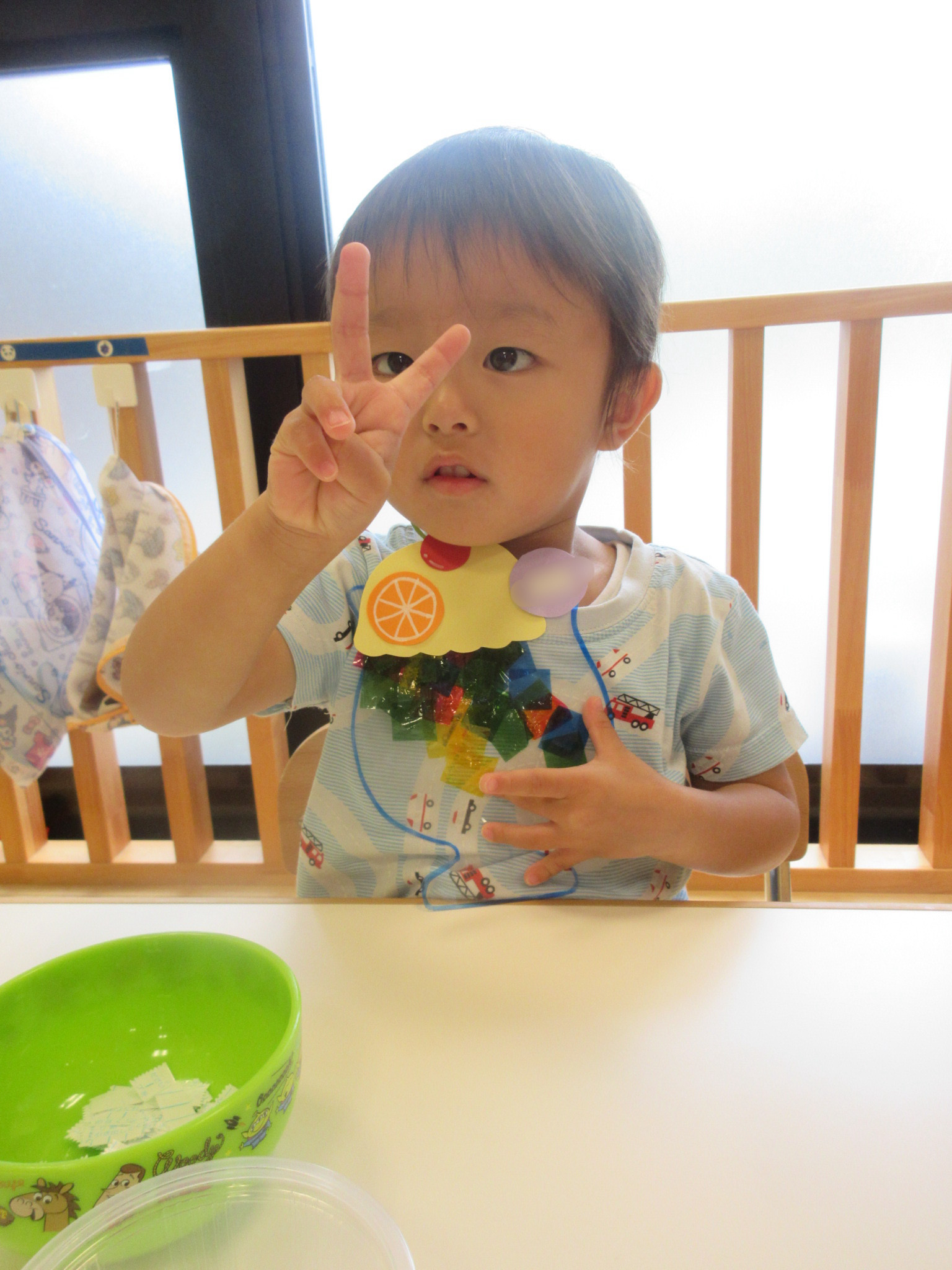 頭につけると、気になり取ってしまう子もいましたが