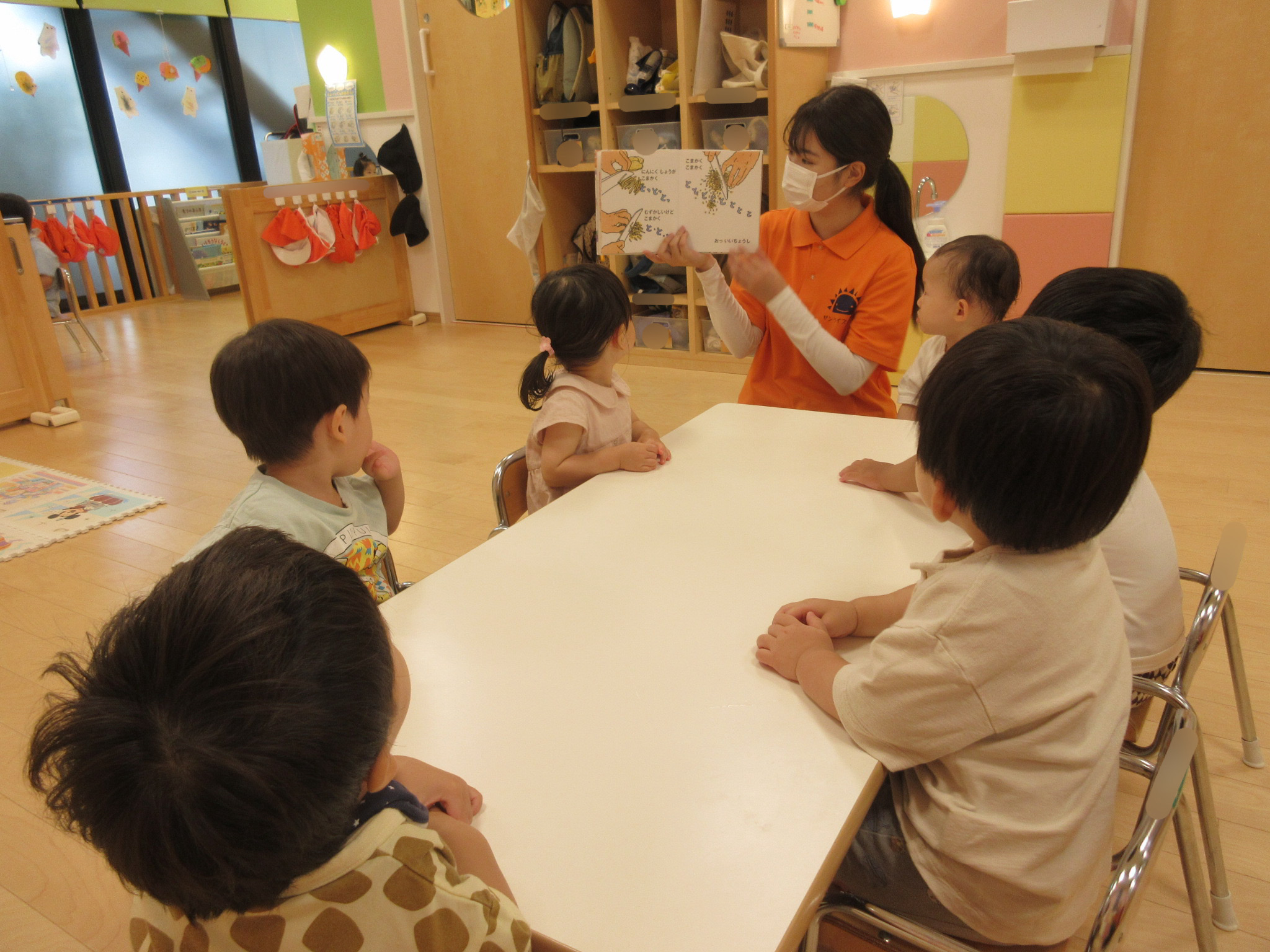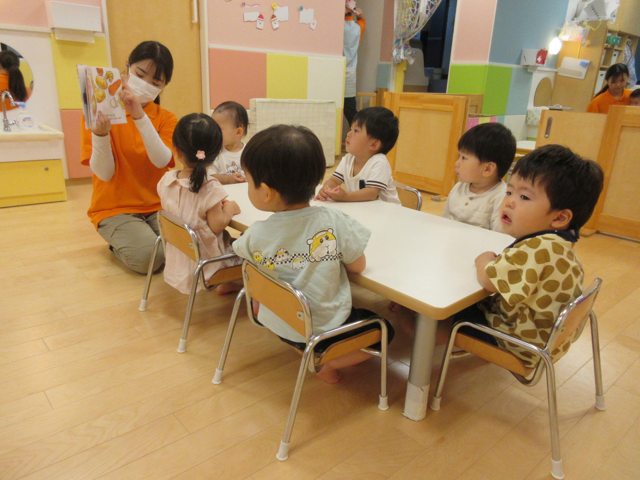 にんじんやじゃがいも、玉ねぎなど身近な食材のイラストを見て、名前を言う子もいましたよ![]()