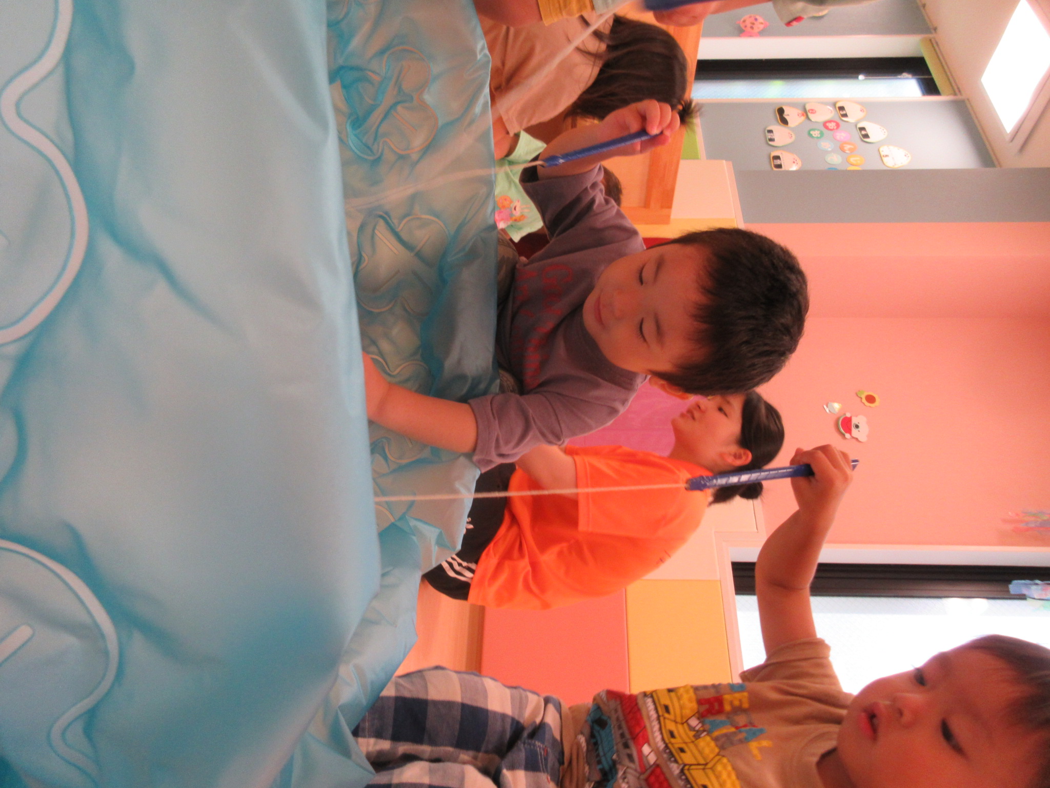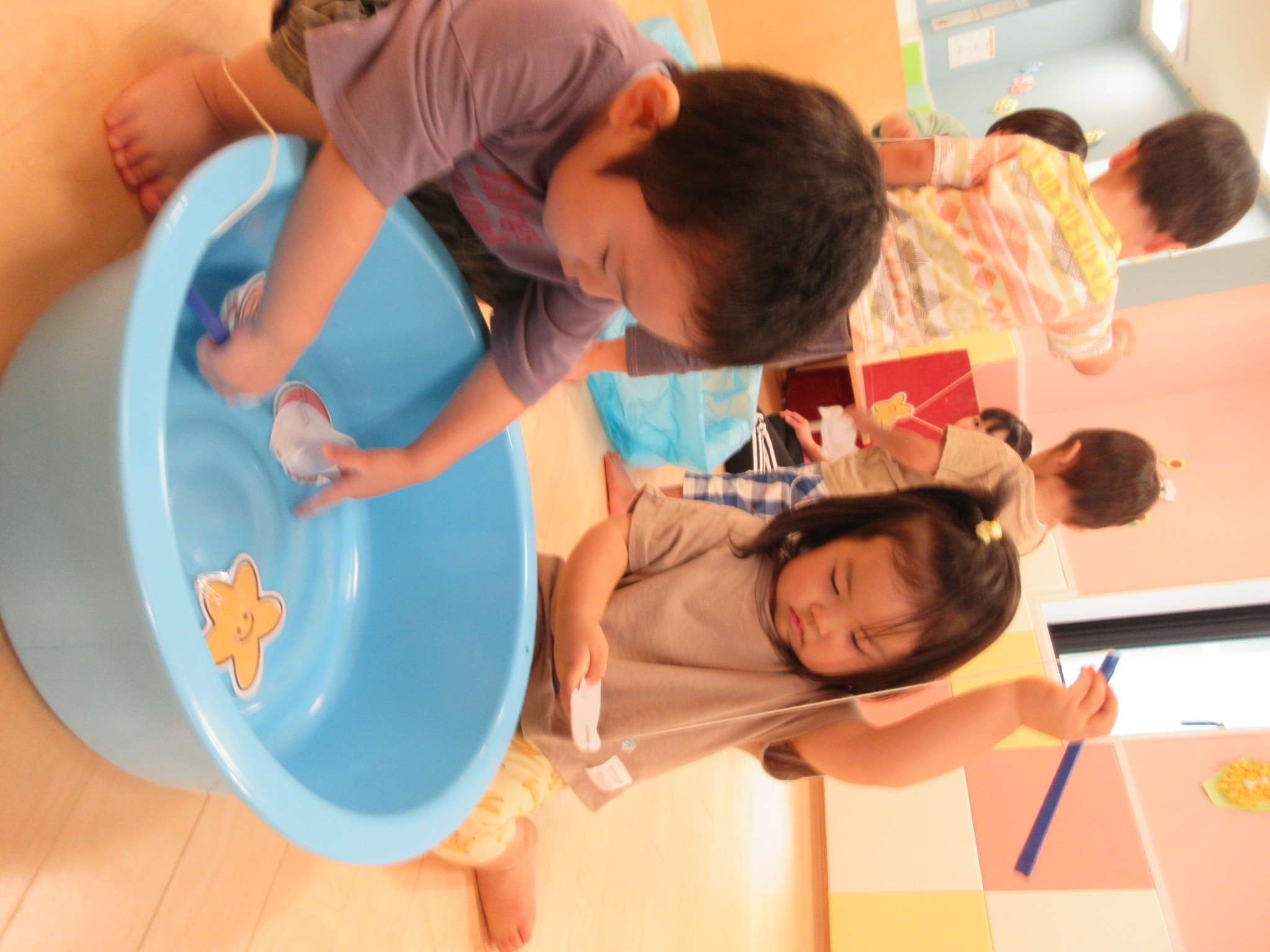 3人ずつに分かれてそれぞれ遊んでいたのですが、アイスキャンディーの氷が1番人気で譲り合いながら仲良く触っていましたよ![]()