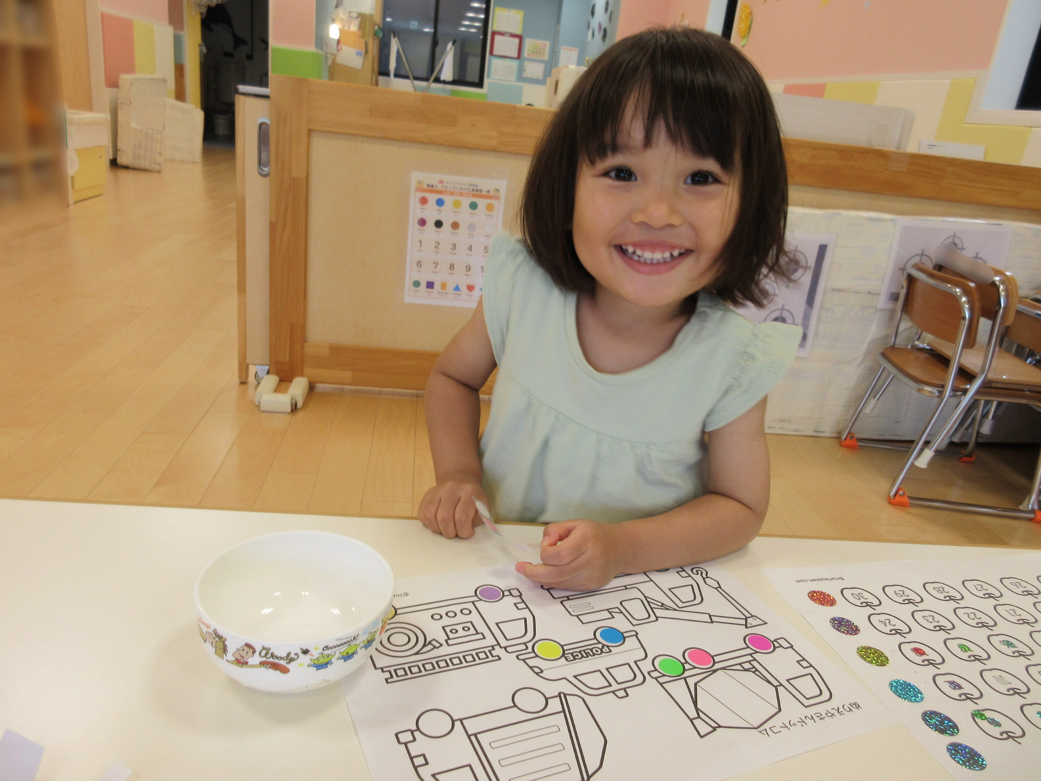 色々な色のシールを使ってシール貼りをする姿も![]()
