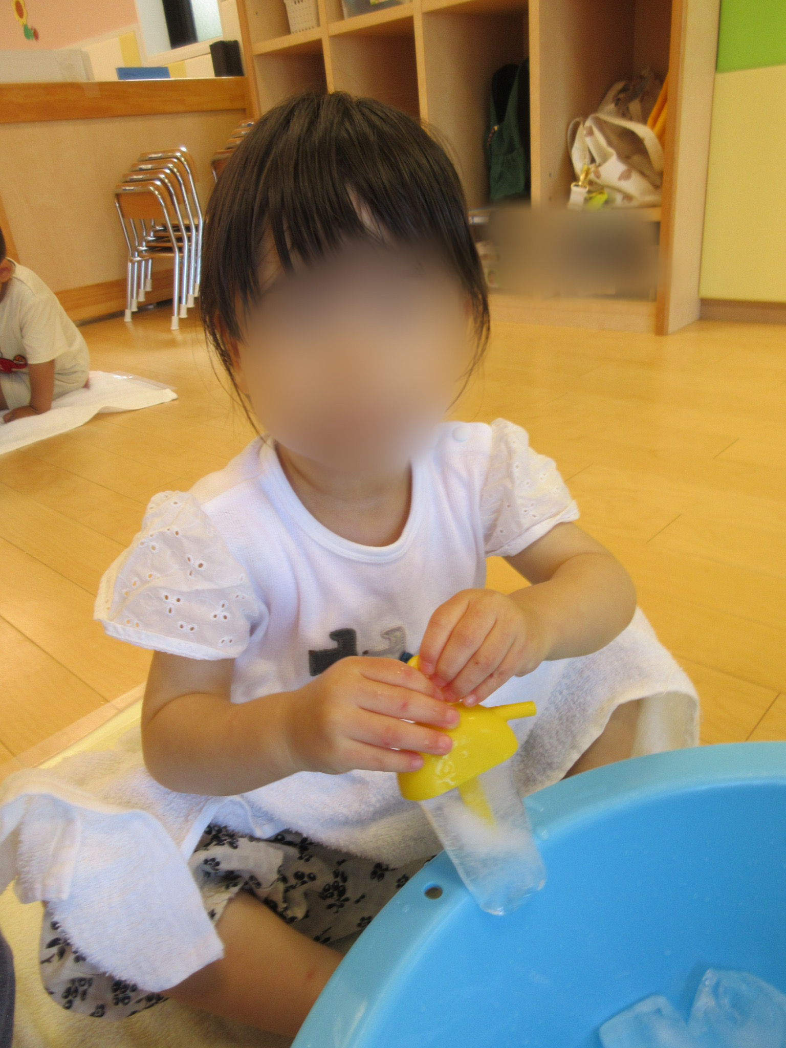 ↓手で氷を掴んで、先生に「みて〜」と見せてくれた子、
