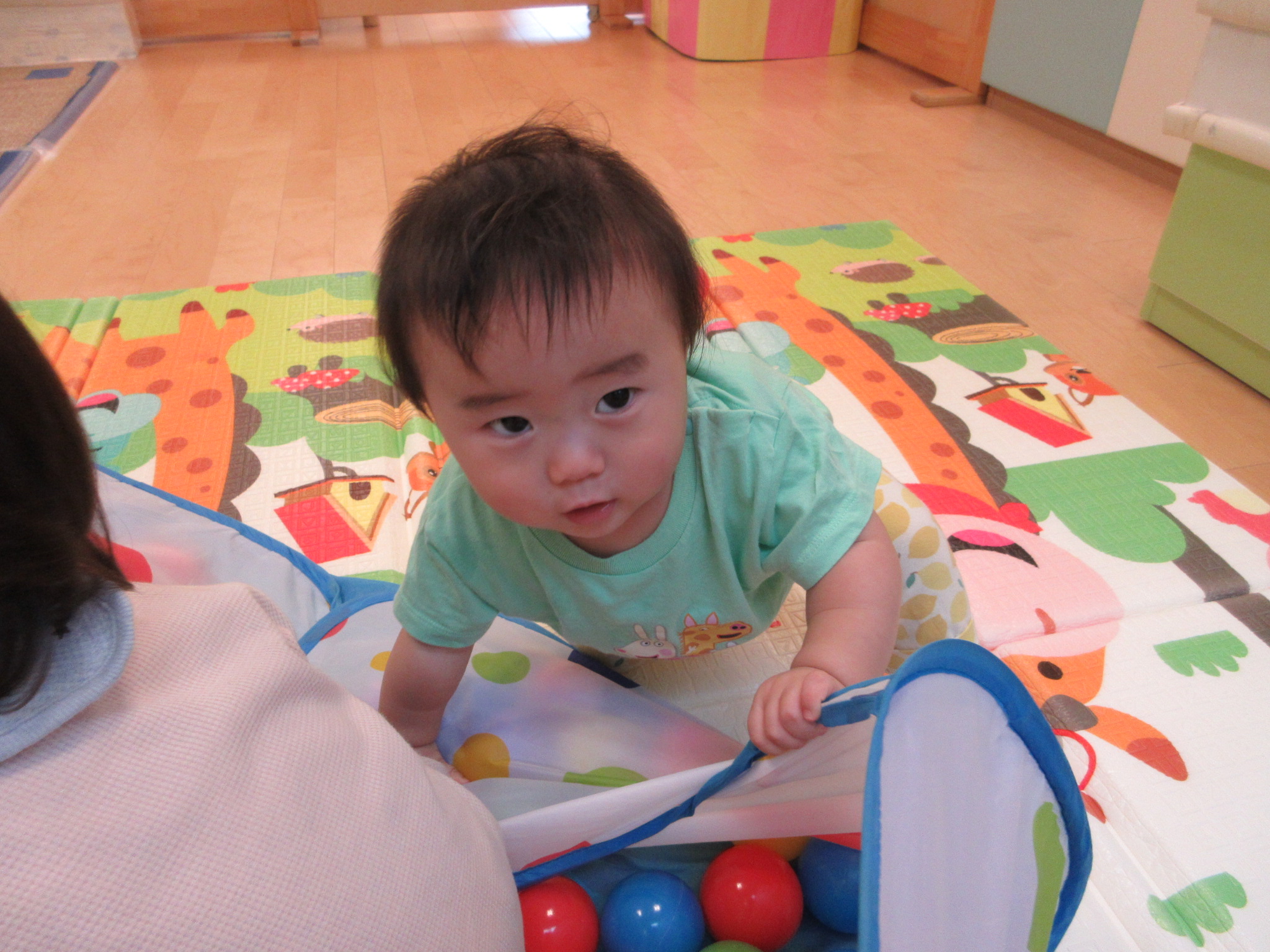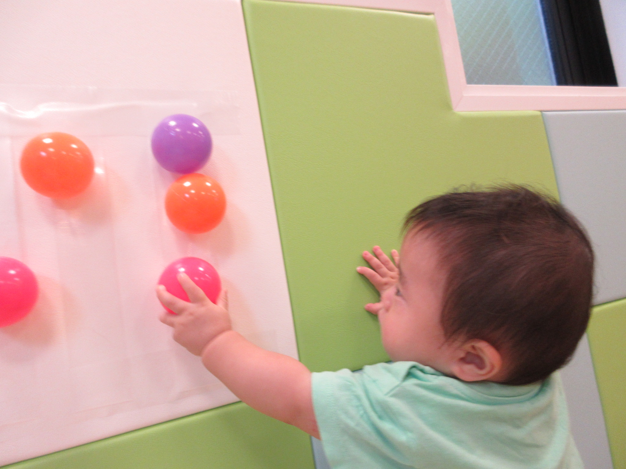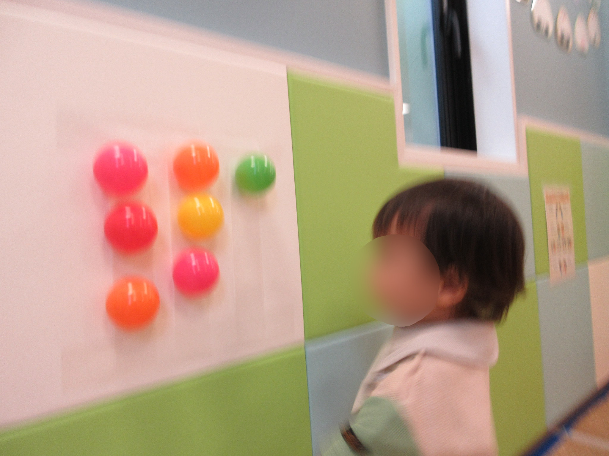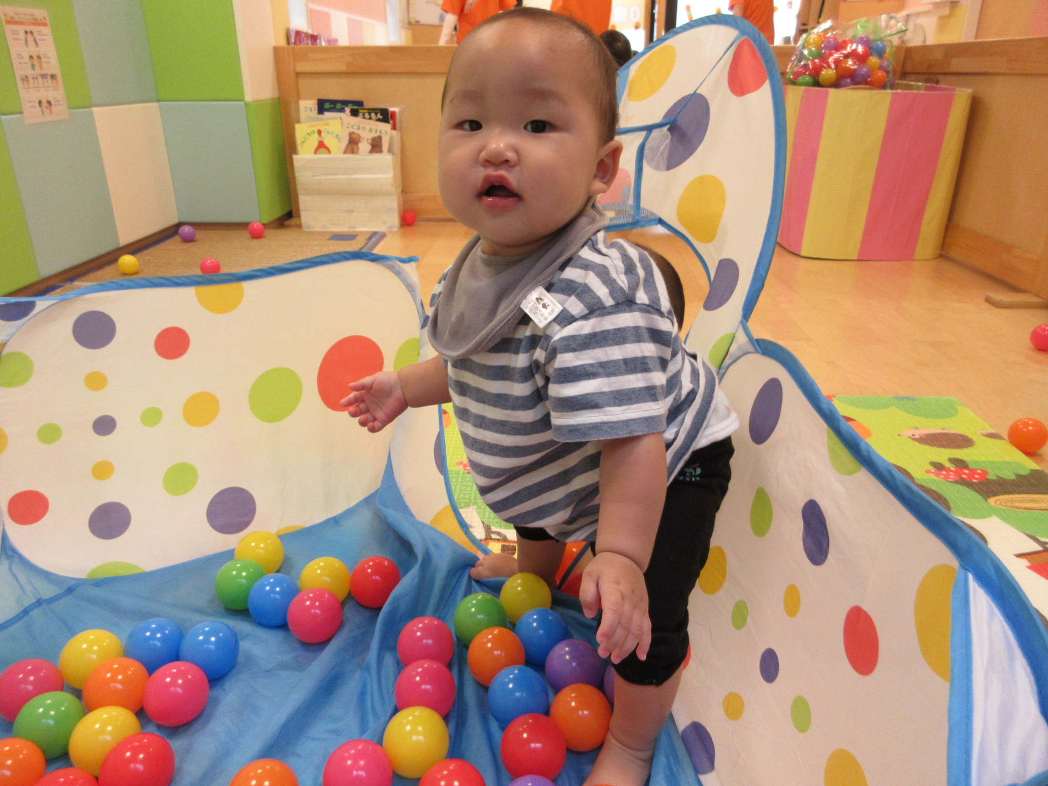 ボールプールだけでなく、貼って剥がしたりするボール遊びも楽しいですね![]()