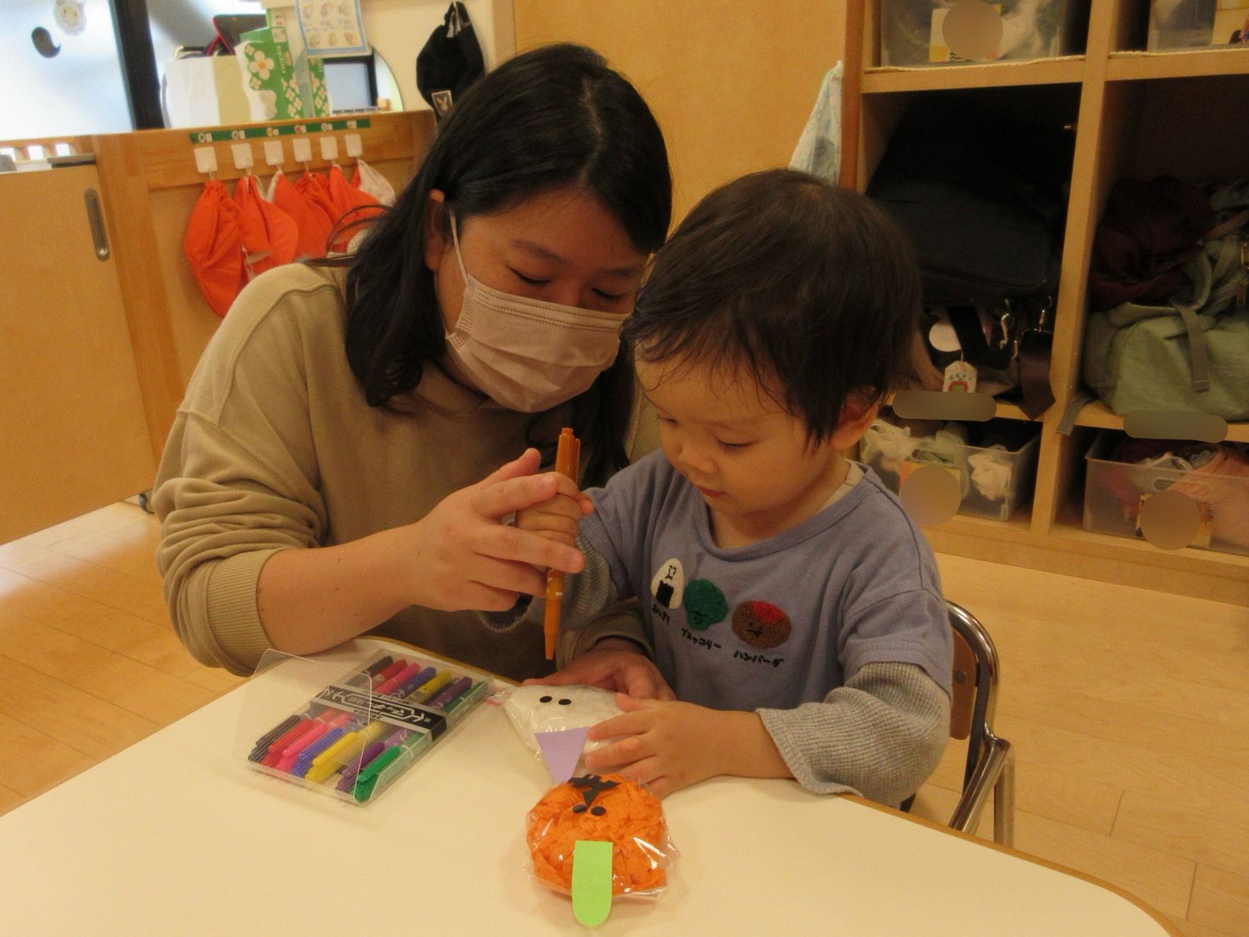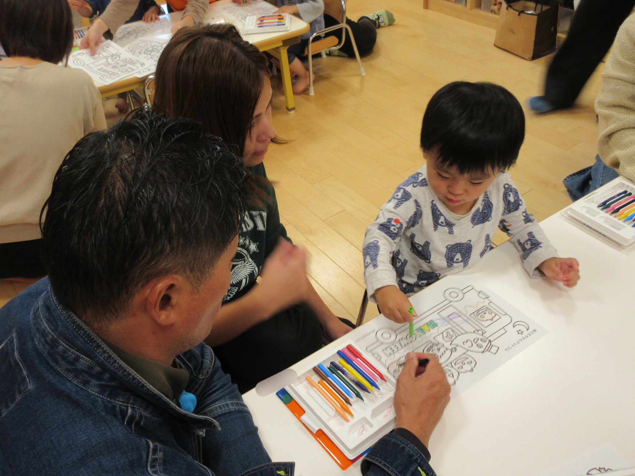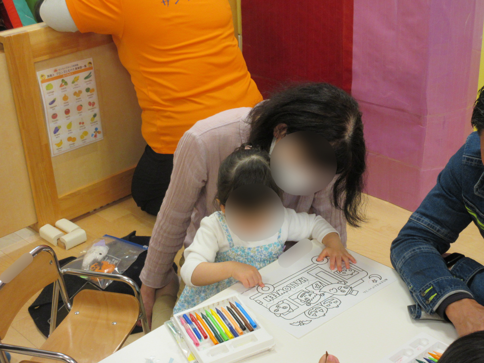 製作が早く終わったお友だちは、ハロウィンの塗り絵やシール貼りも楽しみました![]()