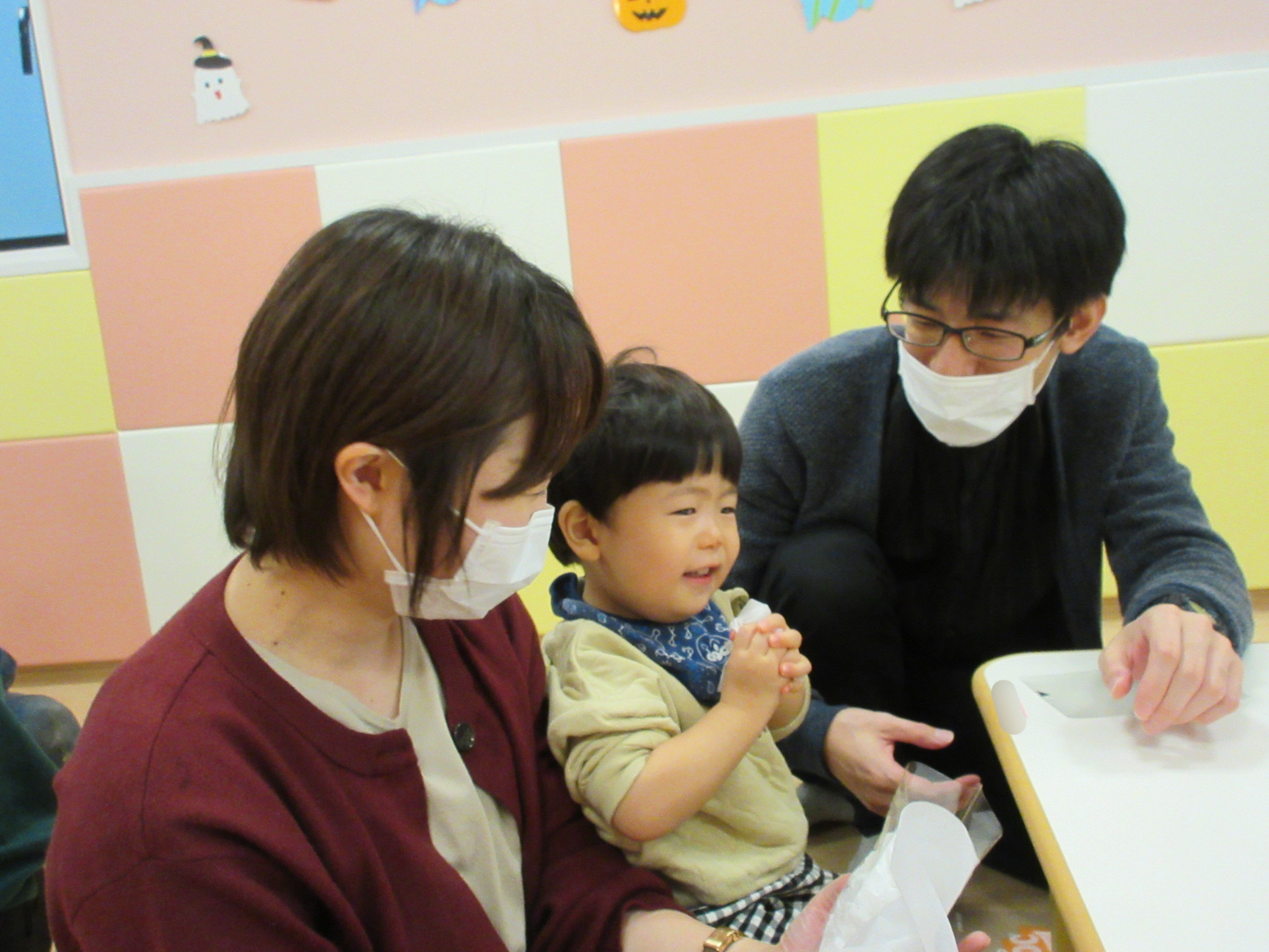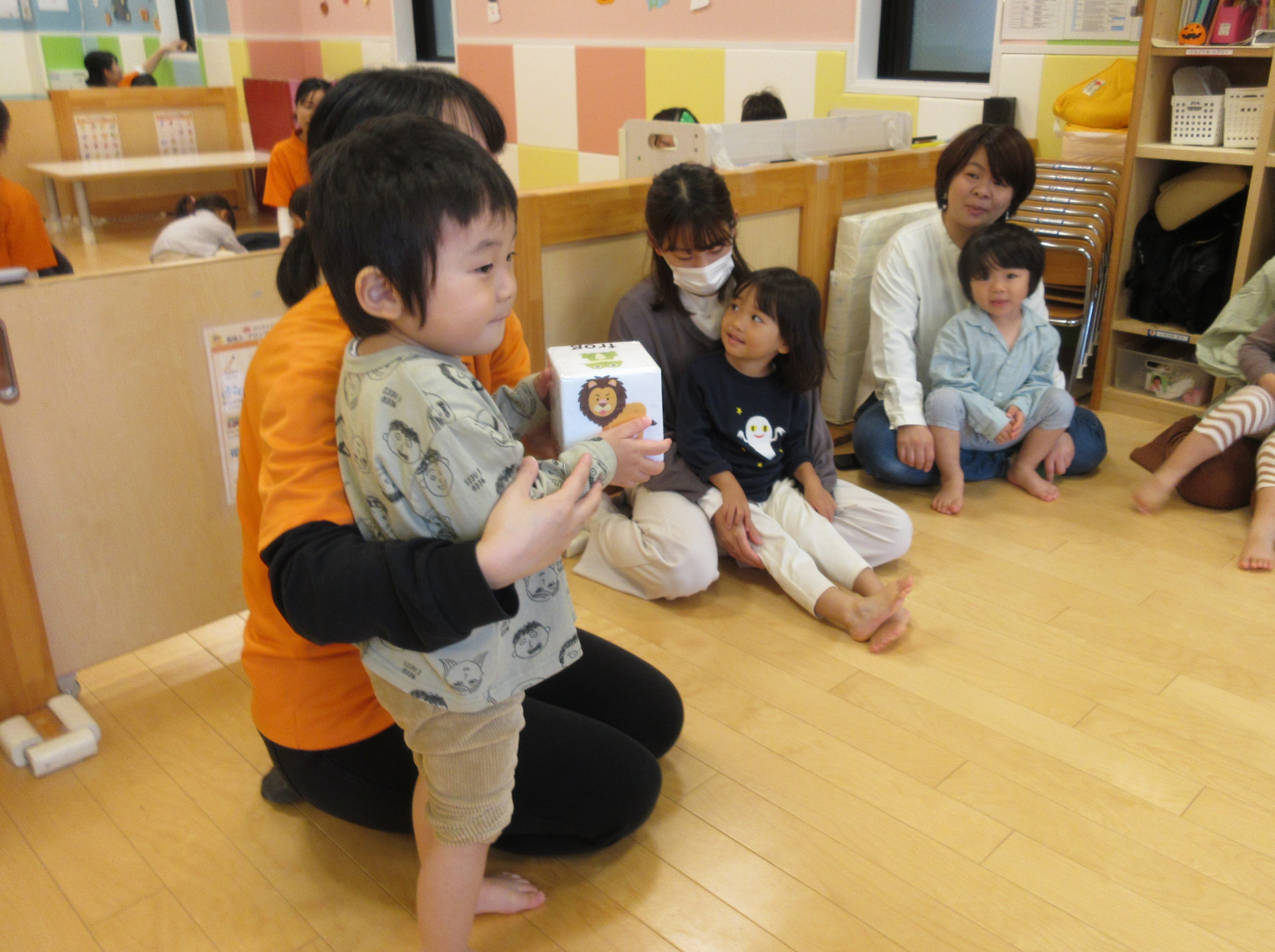 いつもとは、違う様子で保護者の方がお部屋に一緒にいてくださることが嬉しい様子の子どもたち![]()