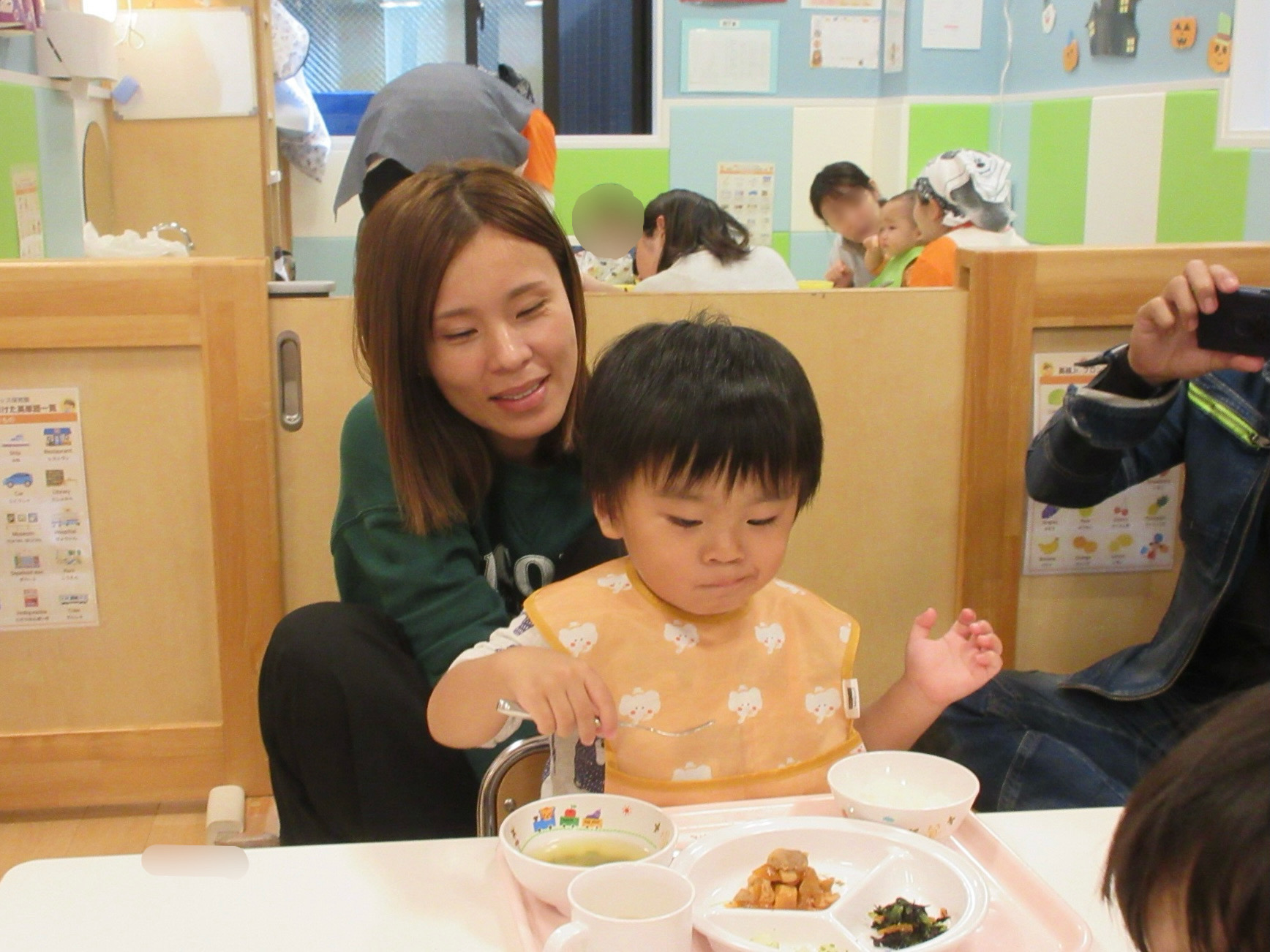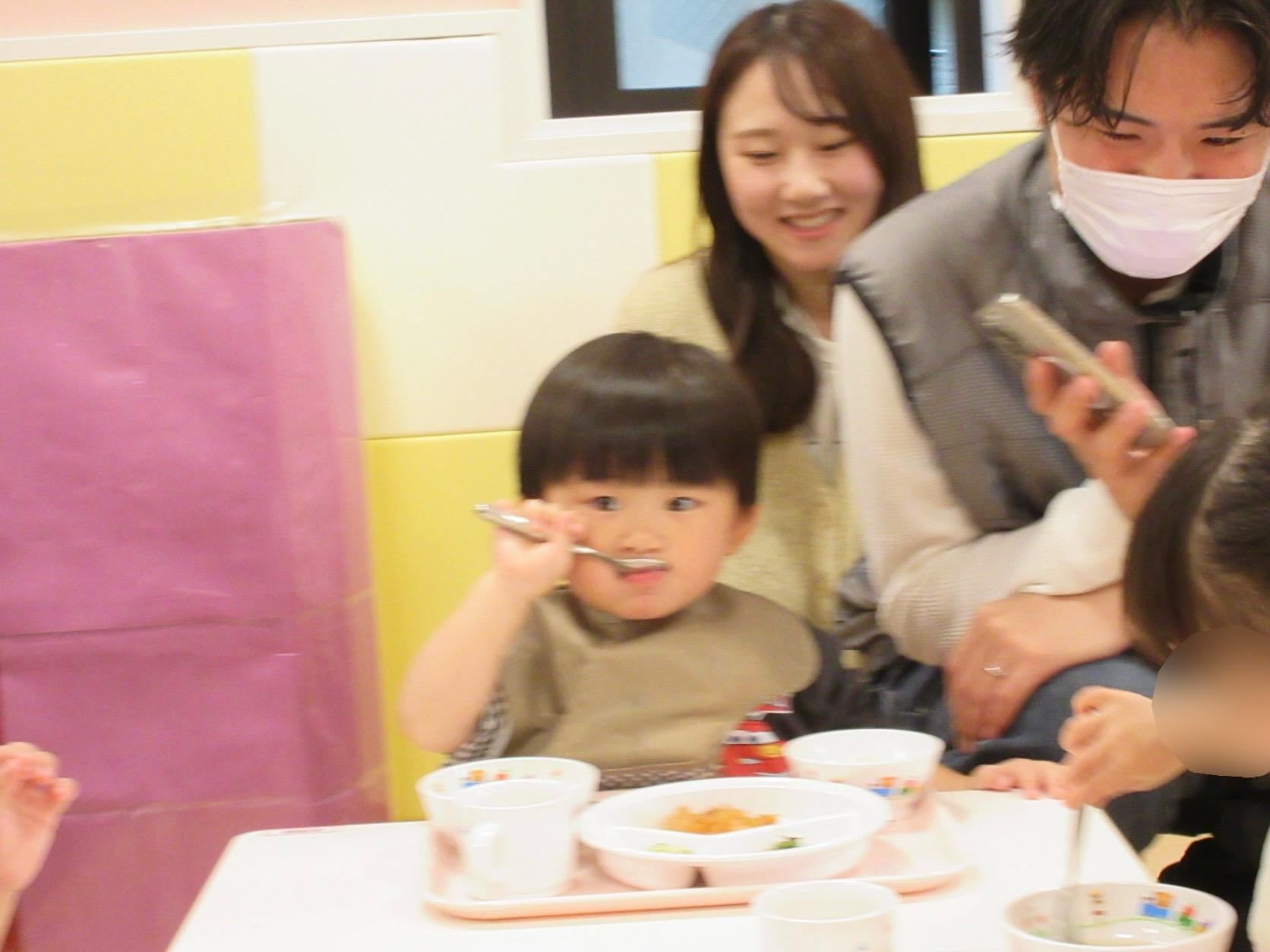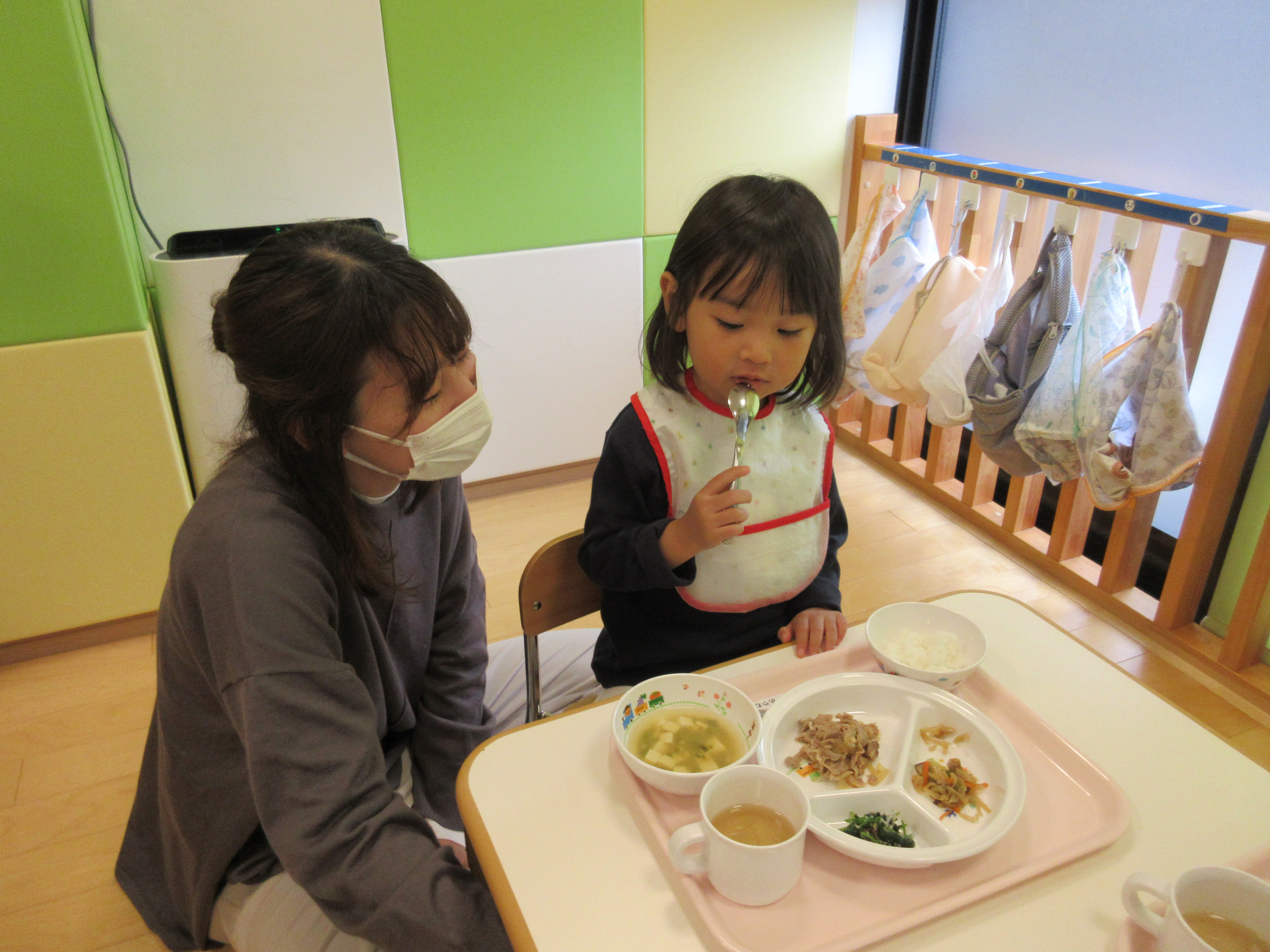 お母様やお父様と一緒に給食を食べられることが嬉しかったようで、いつもよりも沢山おかわりしていたいちごぐみさんです![]()