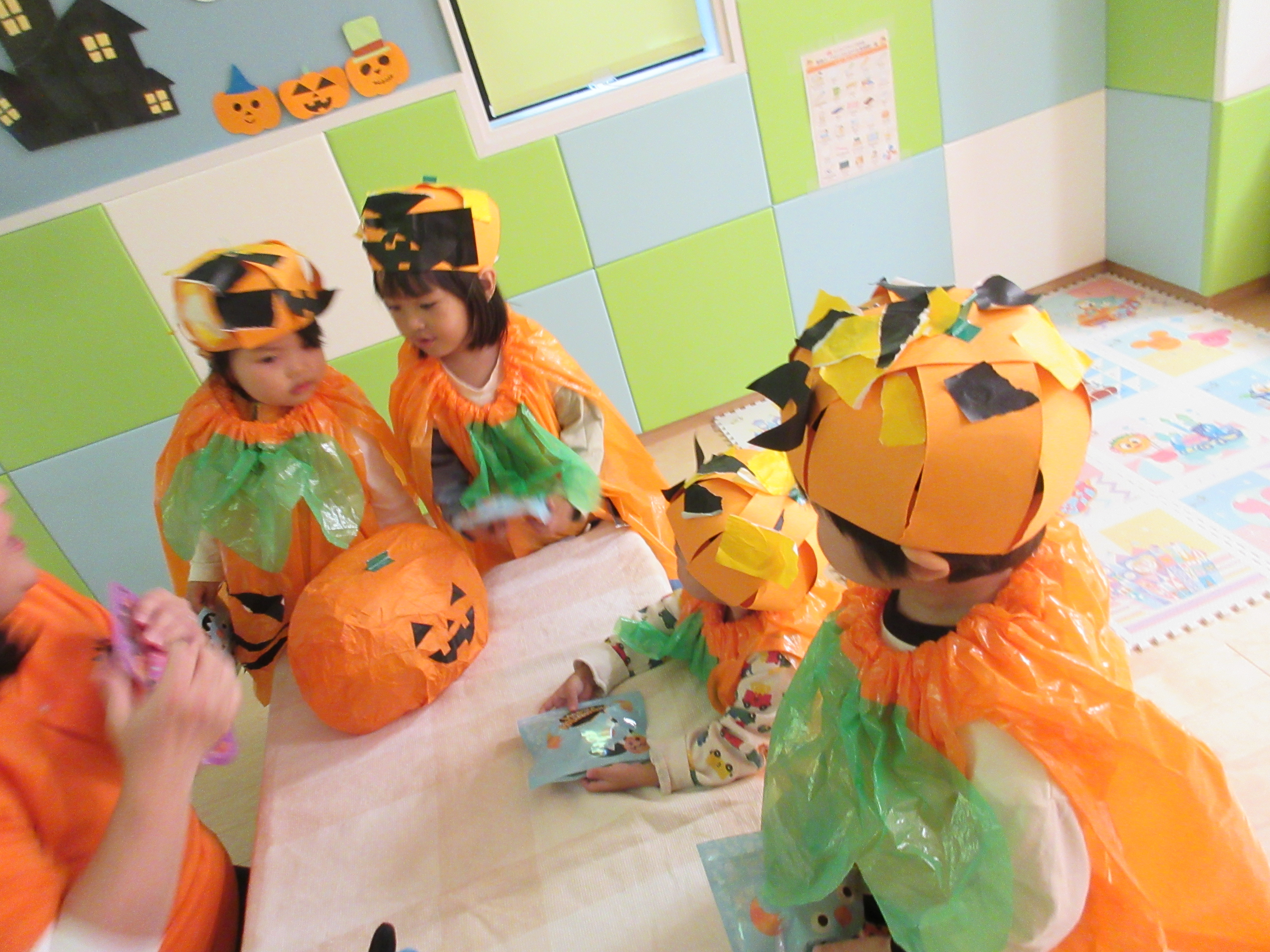 衣装を作ったり、ダンスや「「Trick or Treat!」(トリックオアトリート)と合言葉を練習していたりと、ハロウィン会を楽しみにしていた子どもたち![]()
