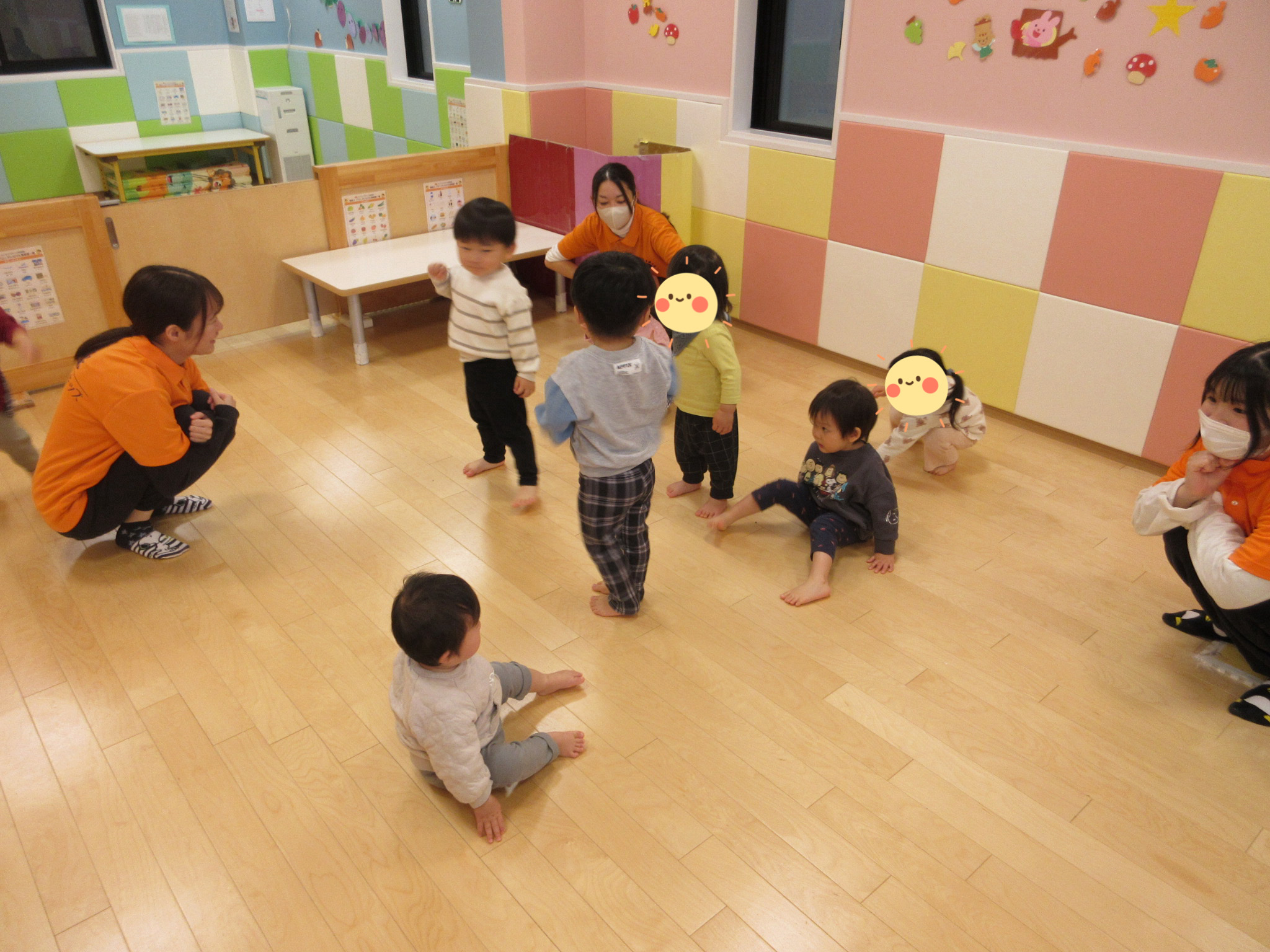 この日は、「ピカピカブー」と「エビカニクス」の2曲を踊りました!どの子も、ノリノリで音楽に合わせて楽しんでいますよ![]()