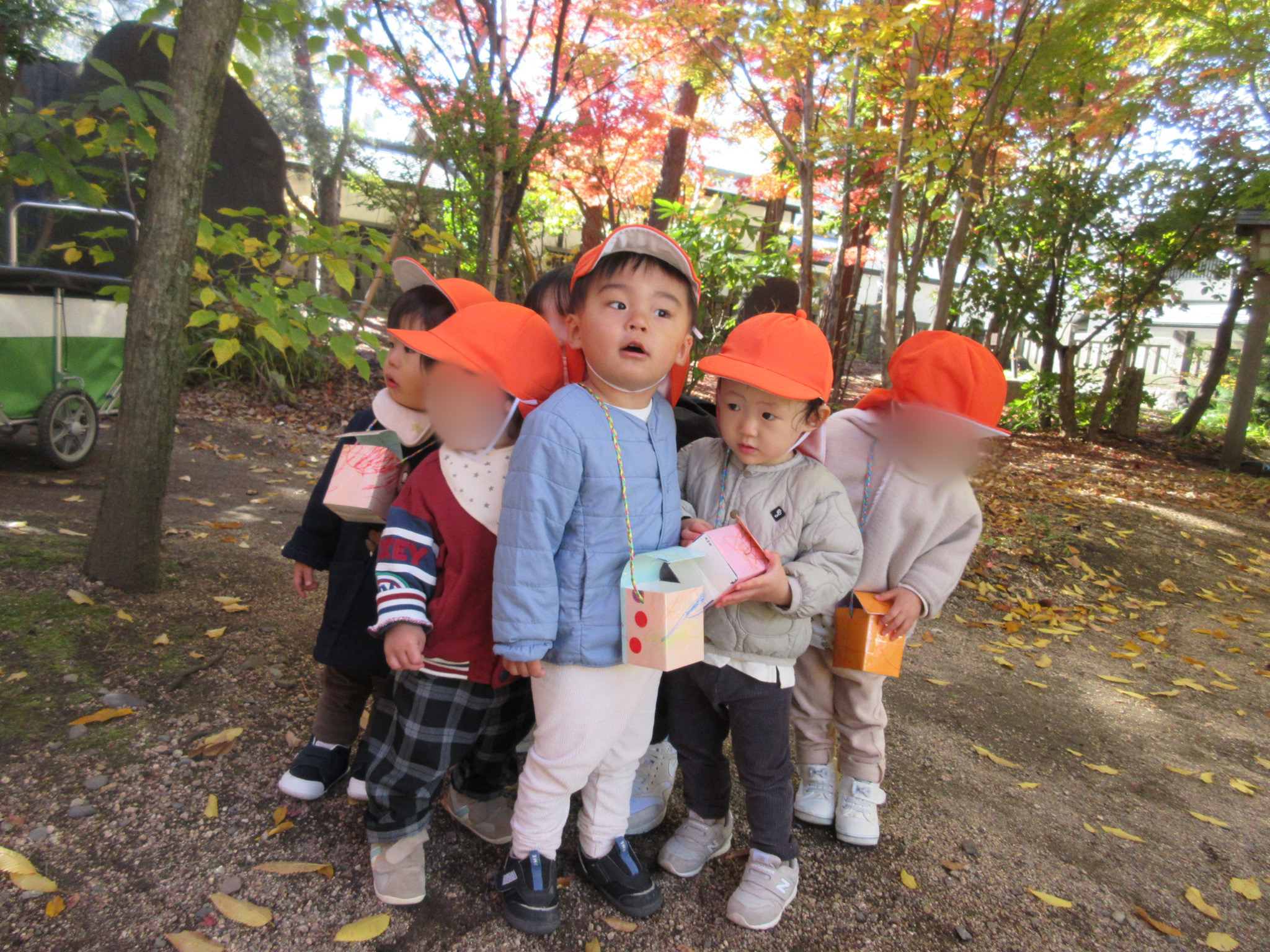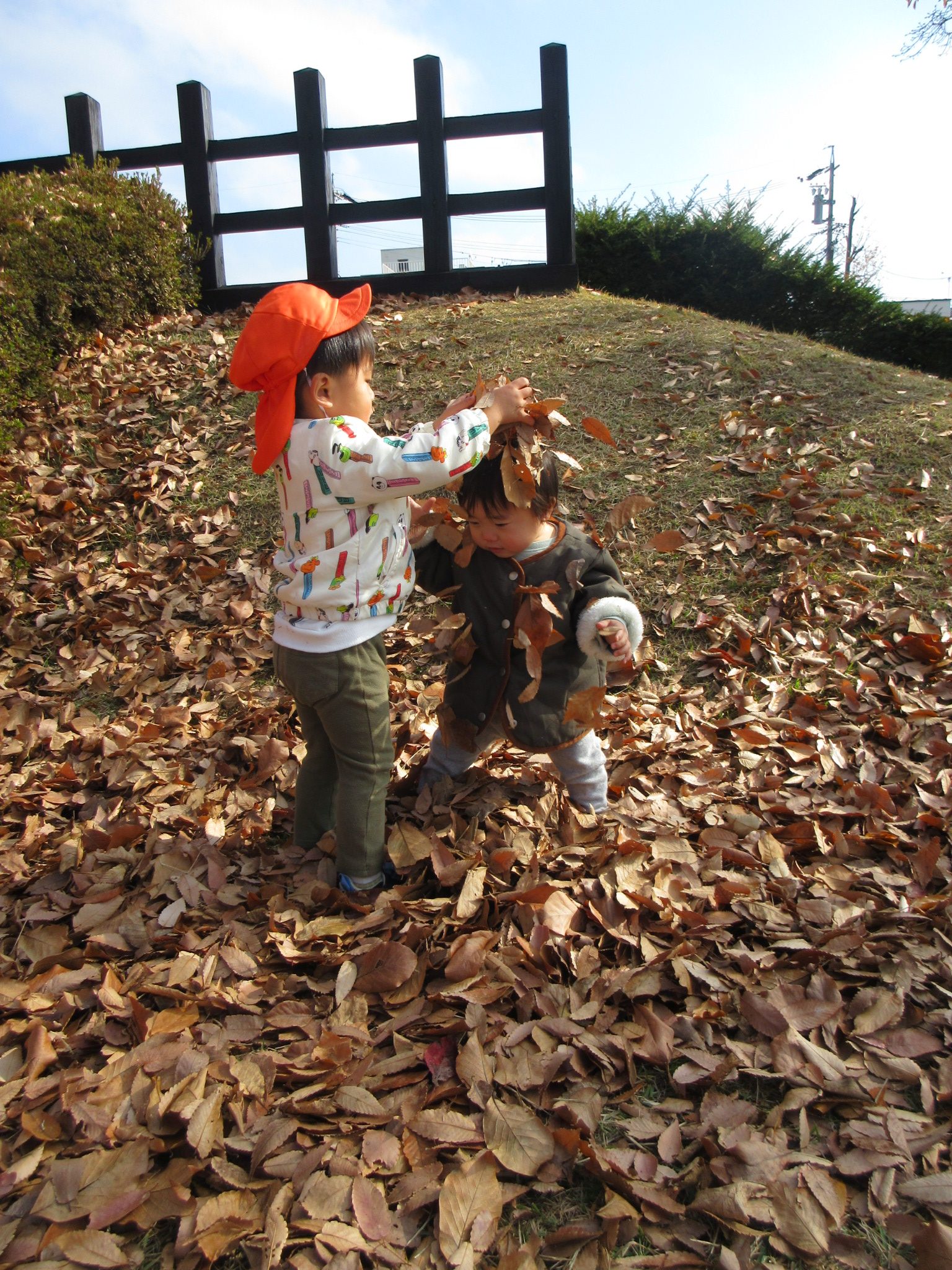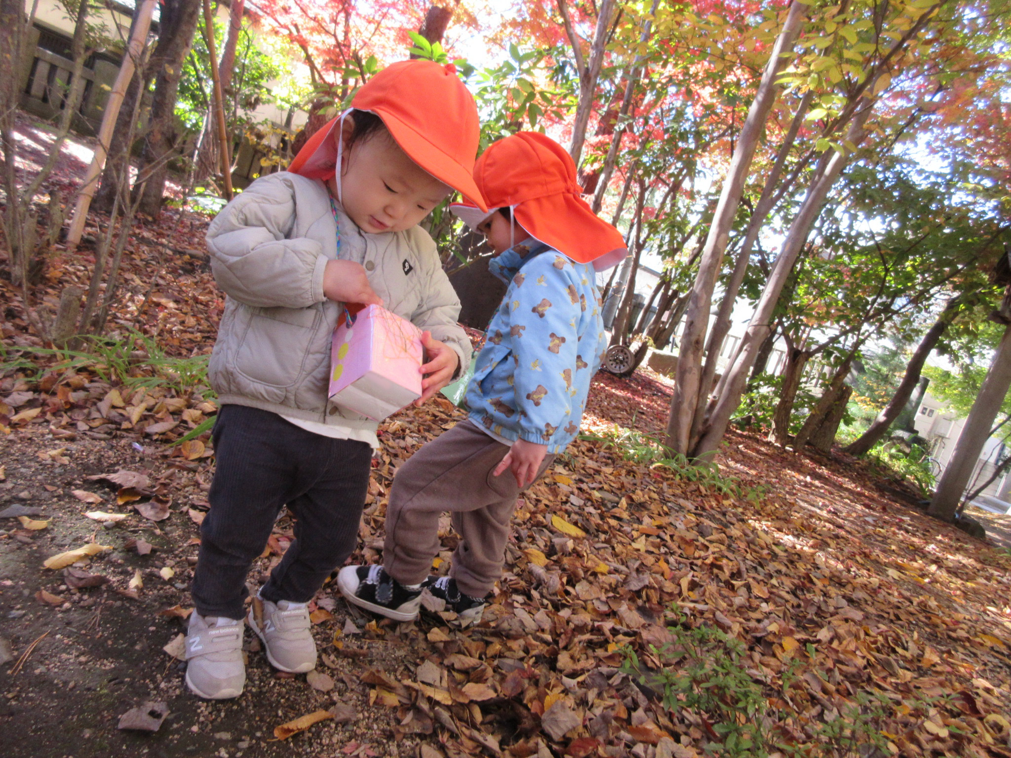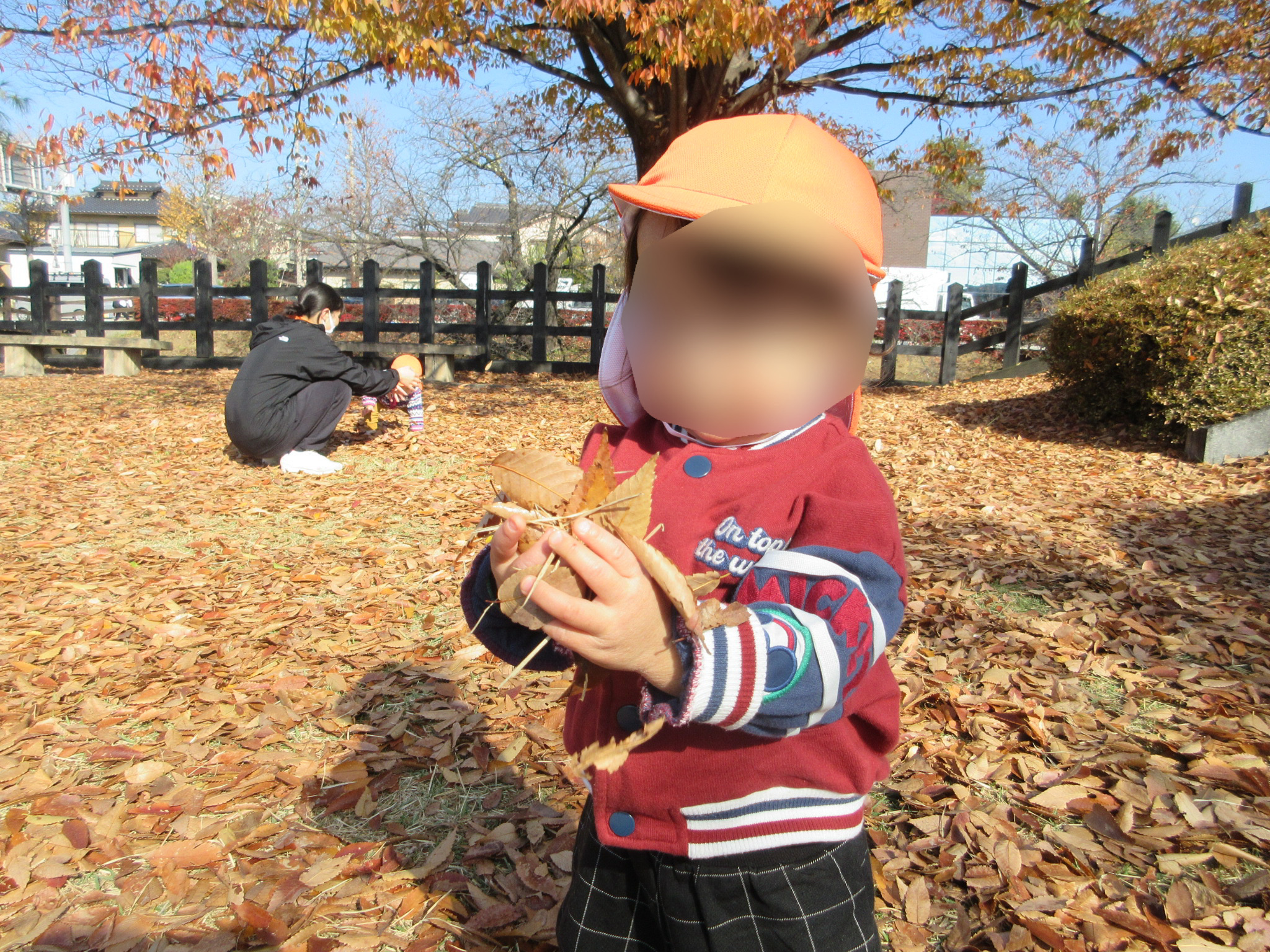 落ち葉の感触や沢山集めて見せにきてくれる子がいました![]()