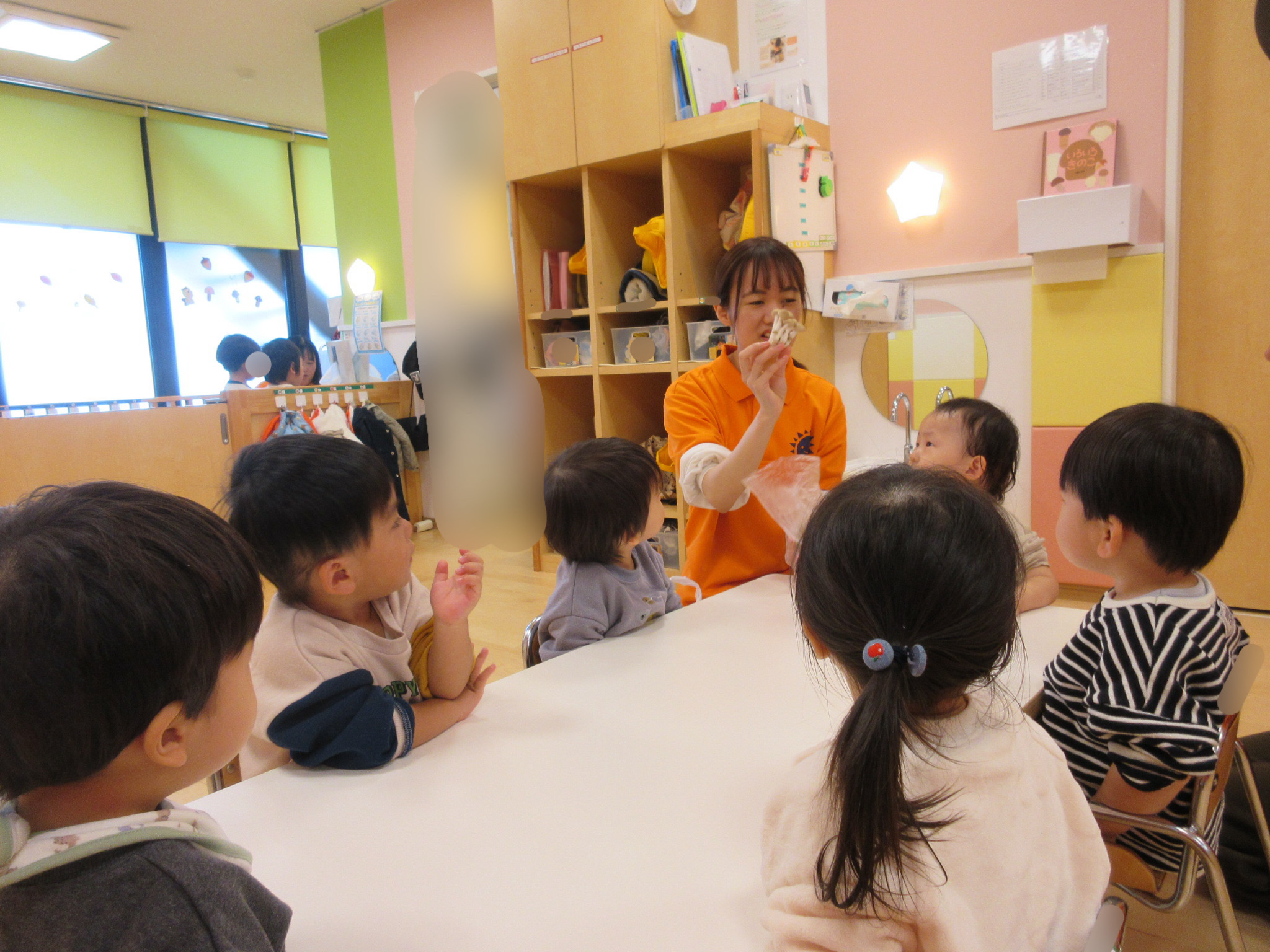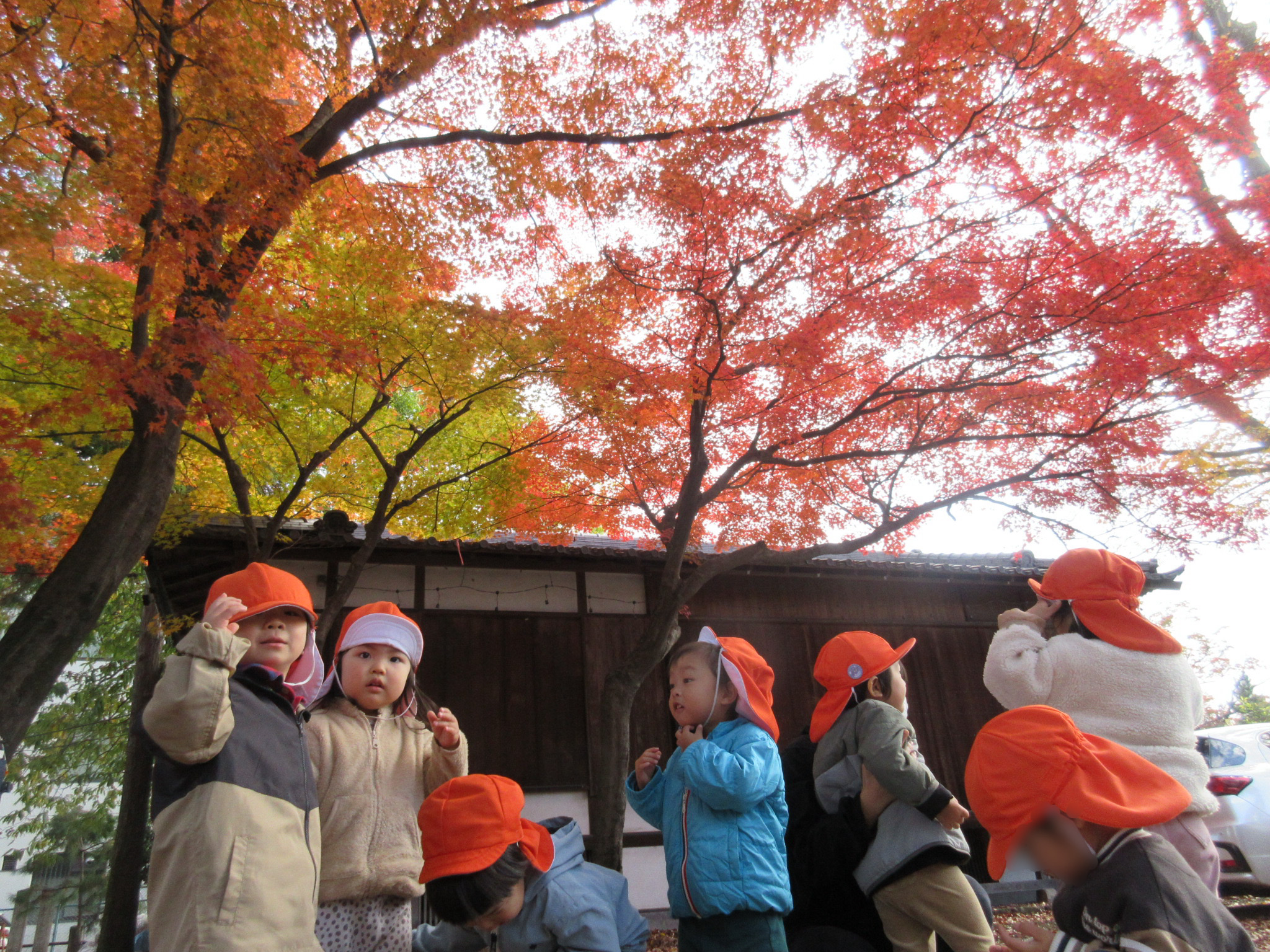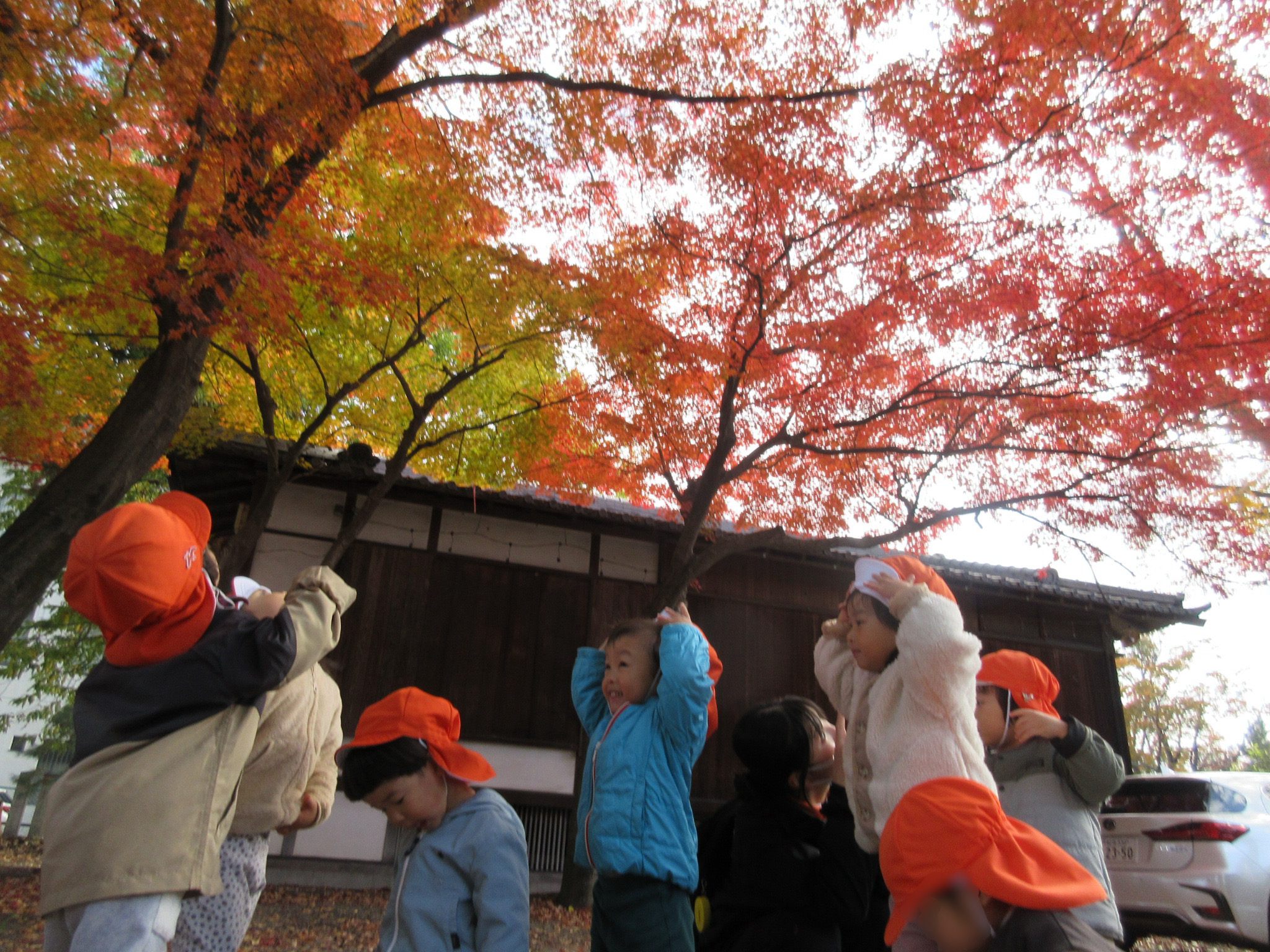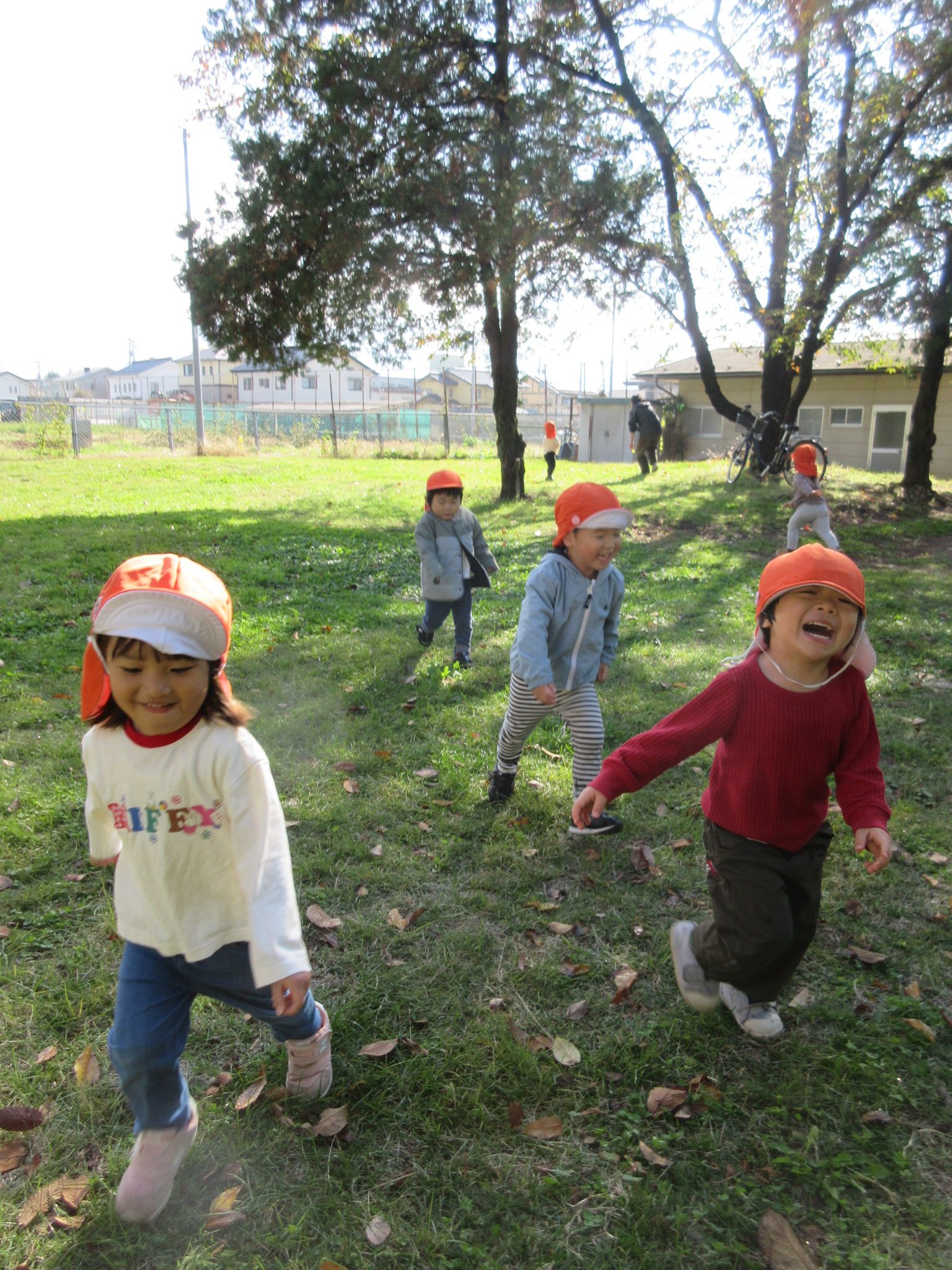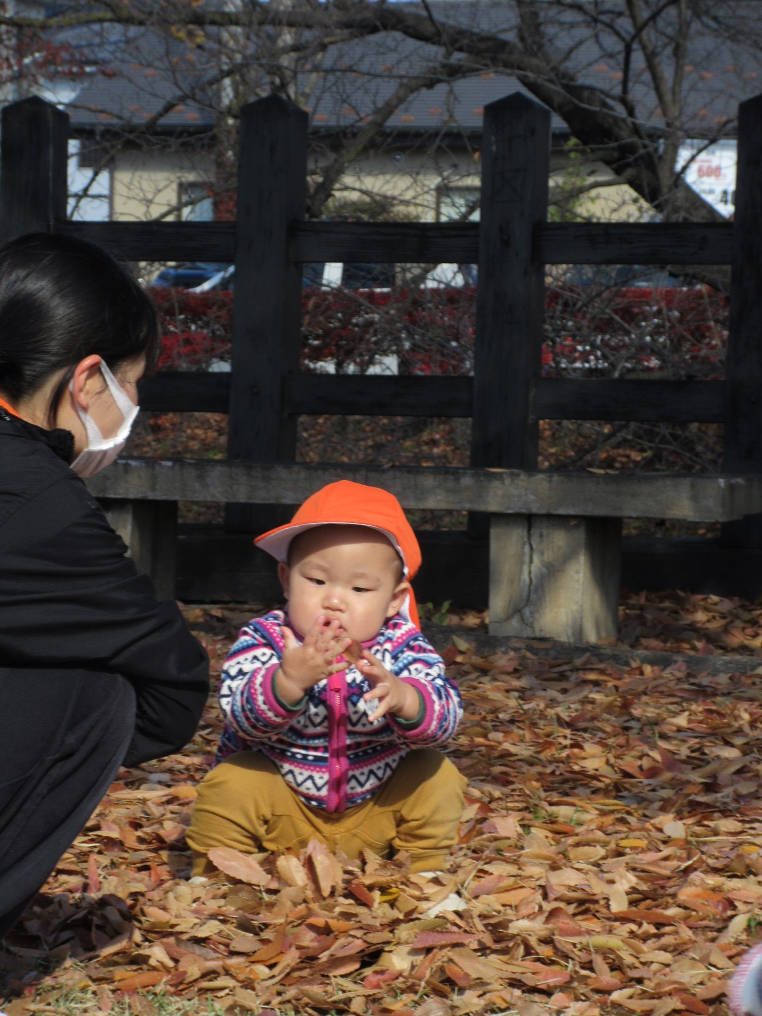 落ち葉の感触や沢山集めて見せにきてくれる子がいました![]()