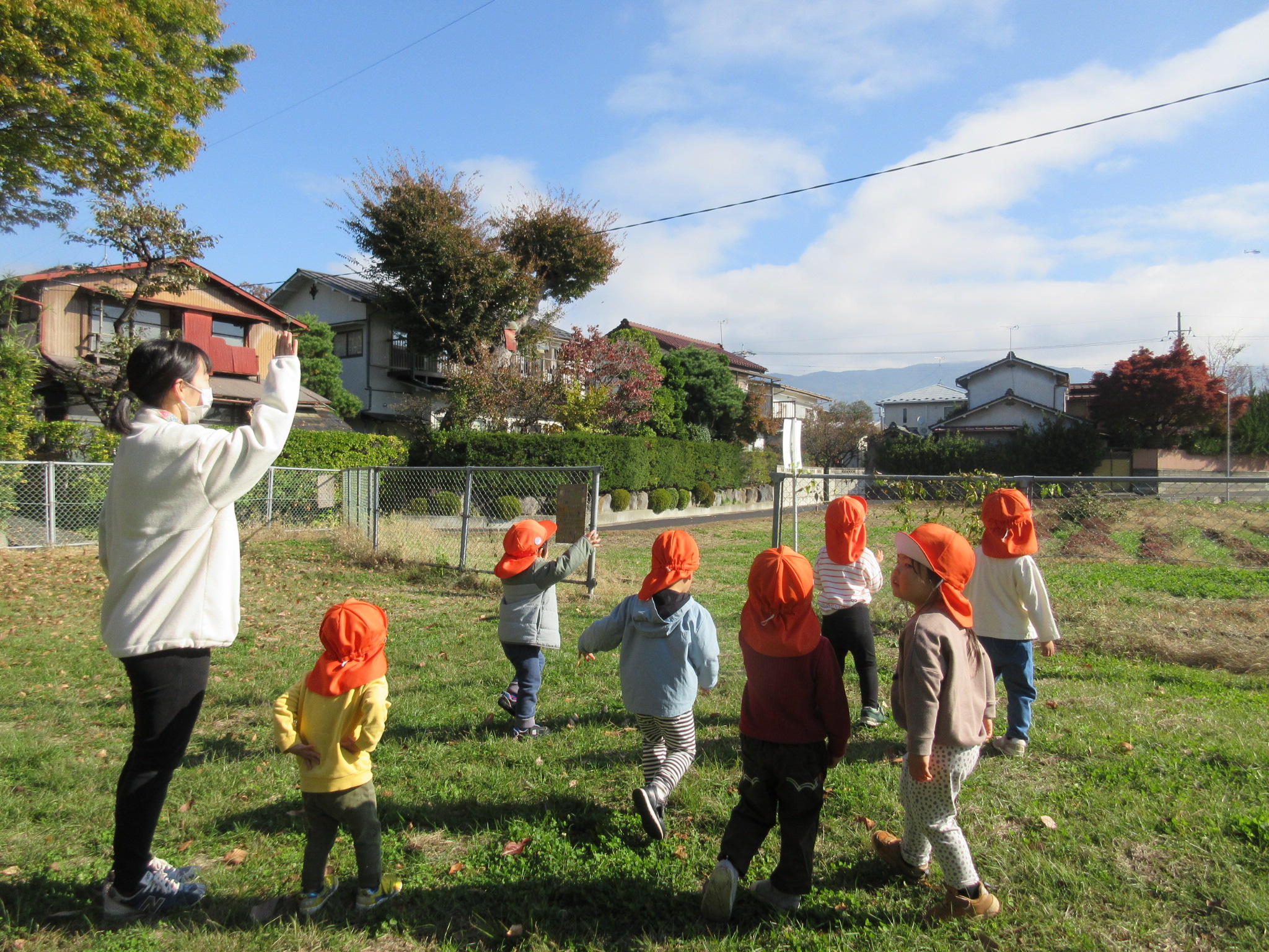↓ヘリコプターに向かってみんなで「お〜い