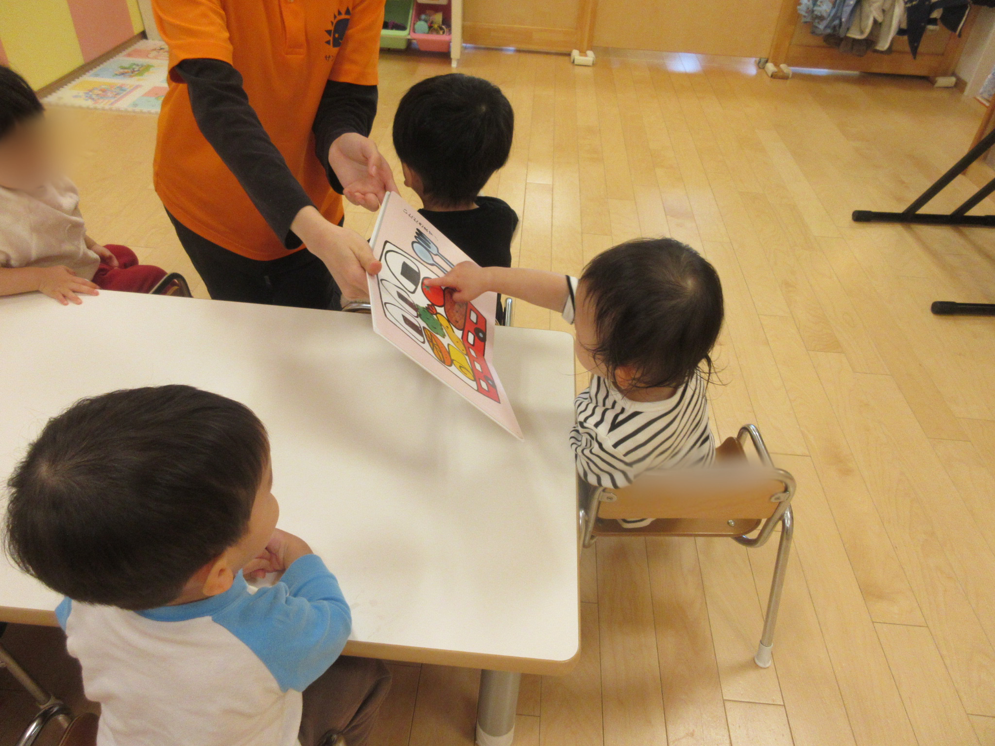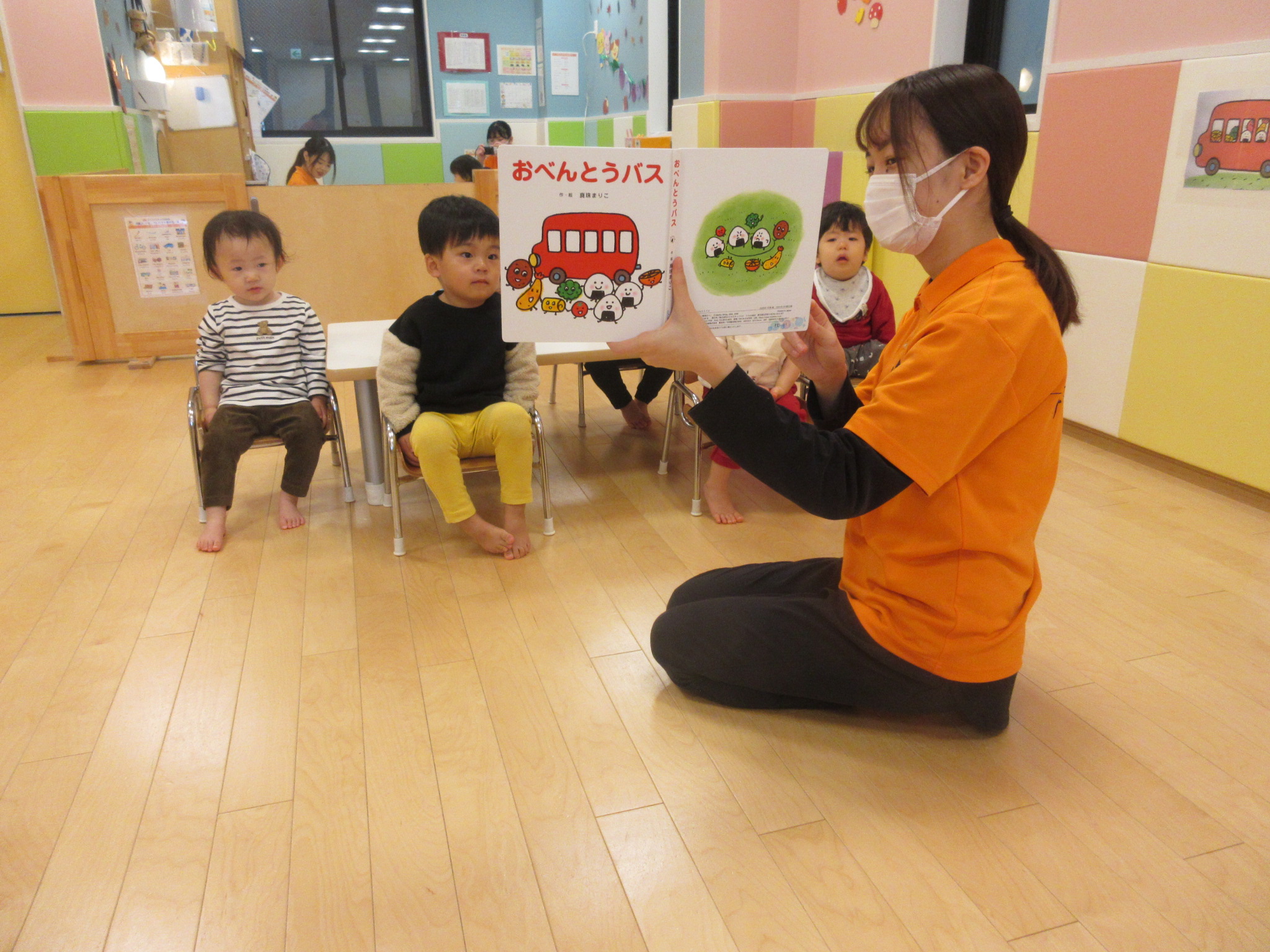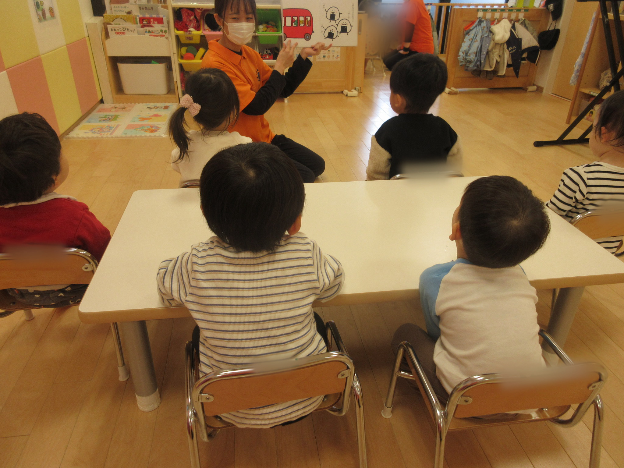 何回も読んでいくうちに登場人物を覚えてきたお友だちも多く、先生が聞くと「たまごやき!」などと大きな声で答えてくれる姿がありました![]()