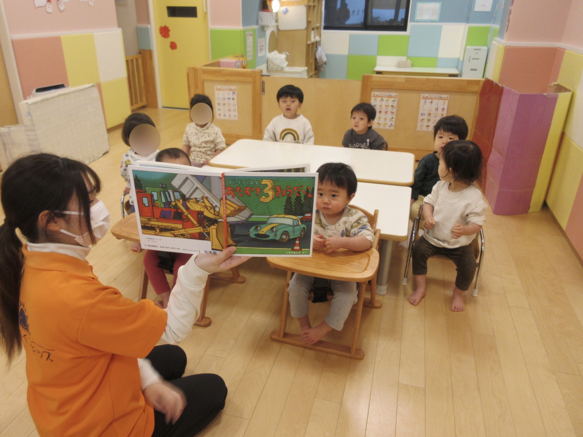お散歩の際も「ブルドーザーかっこいい!」「クレーン車いた!」とはたらく車に興味津々の子どもたちです![]()