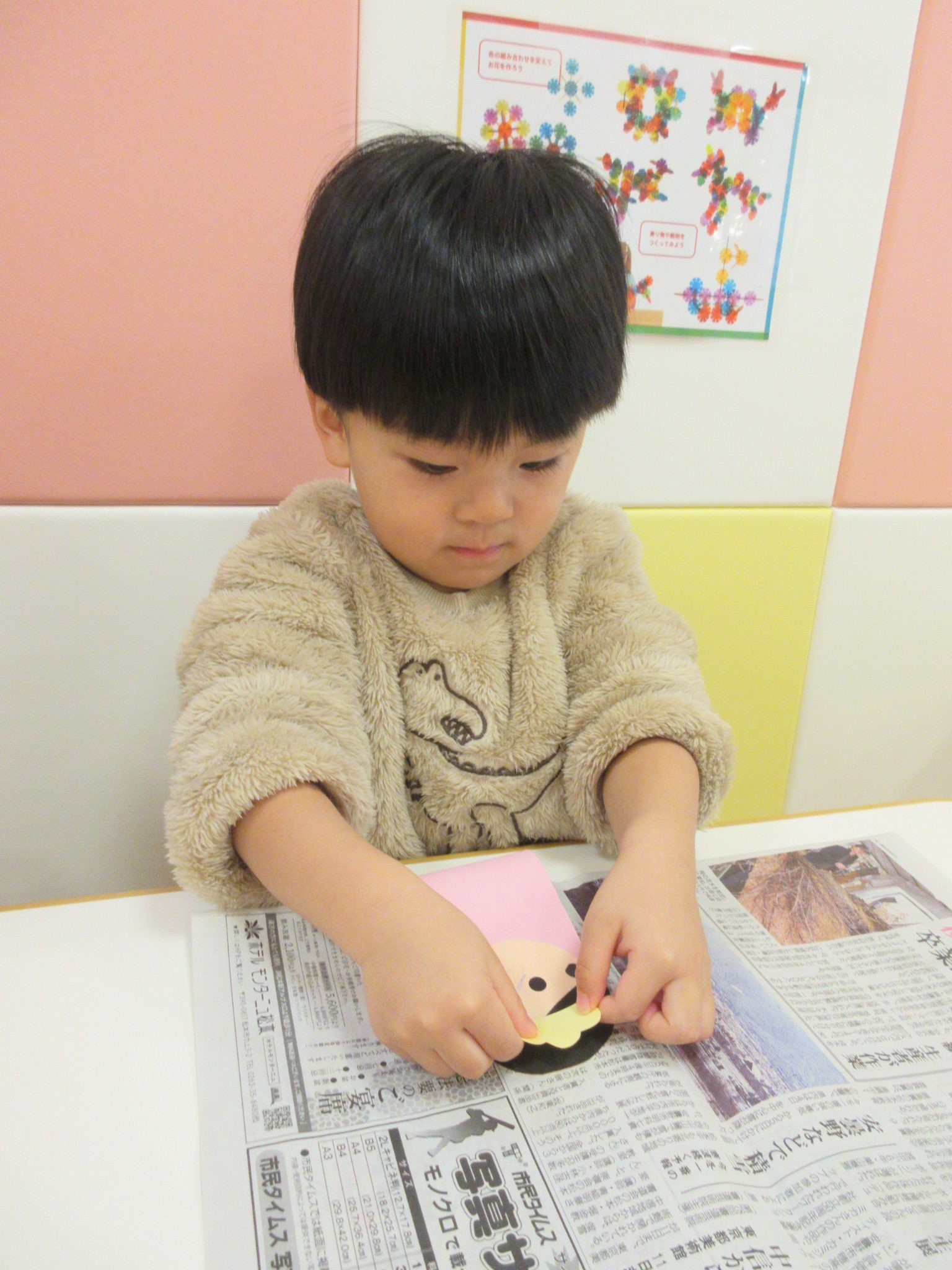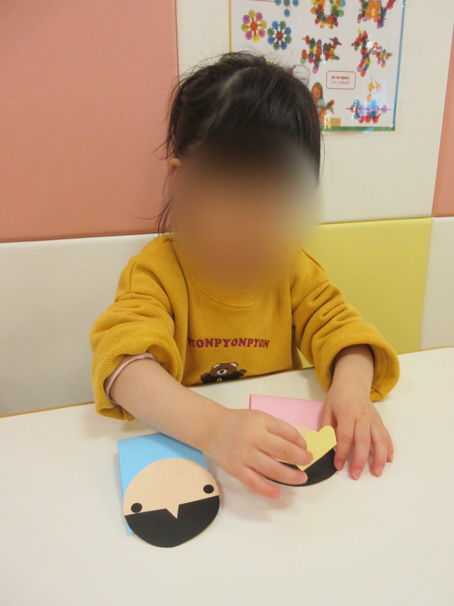 お休みしていてまだ製作ができていない子もいるので、全員分完成したところでまたご紹介できたらと思います。また、もうすぐですひなまつりなのでみんなで雛人形も見に行くことができたらと思っています