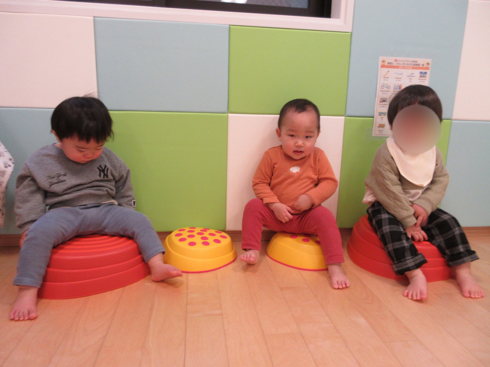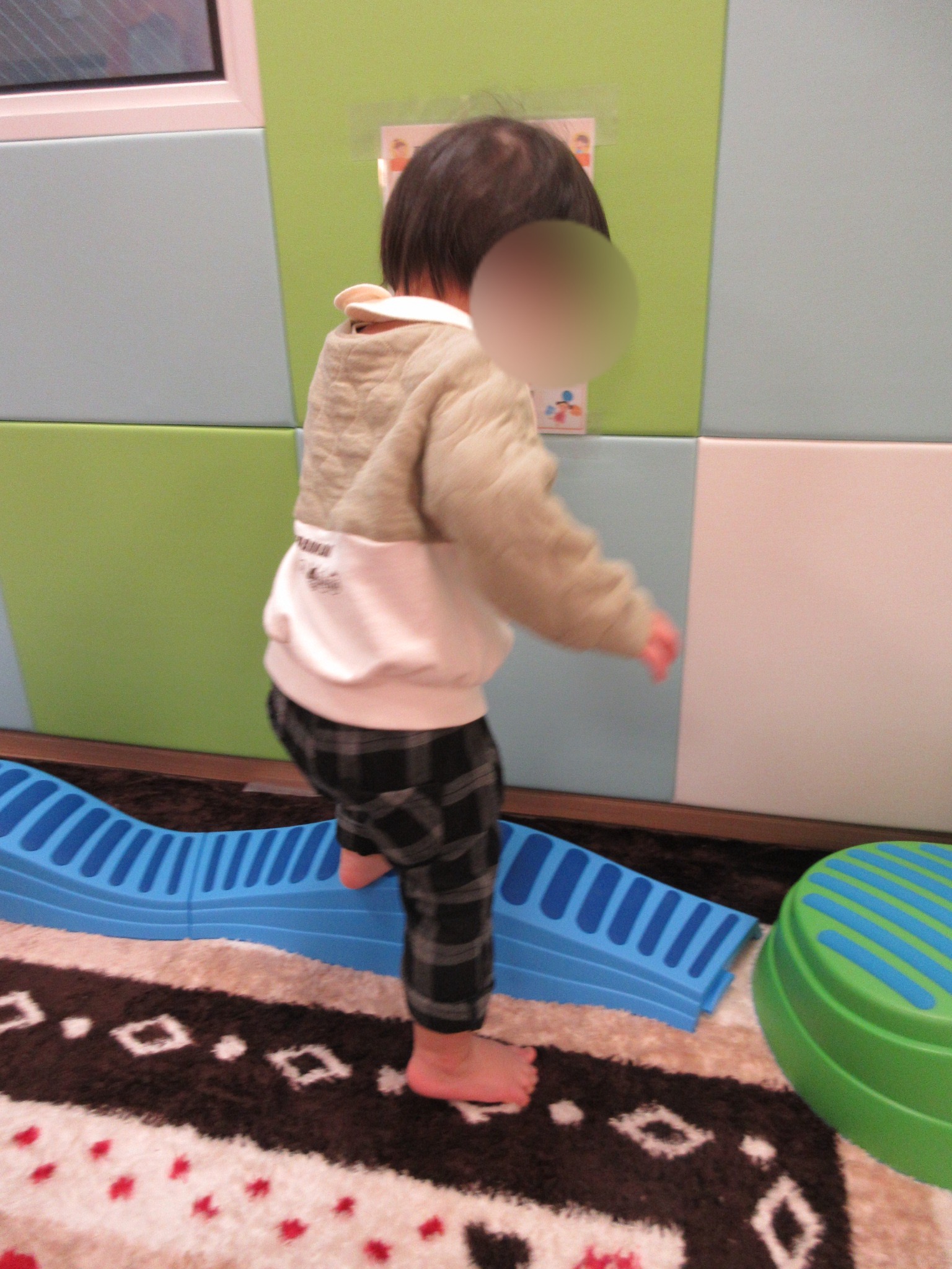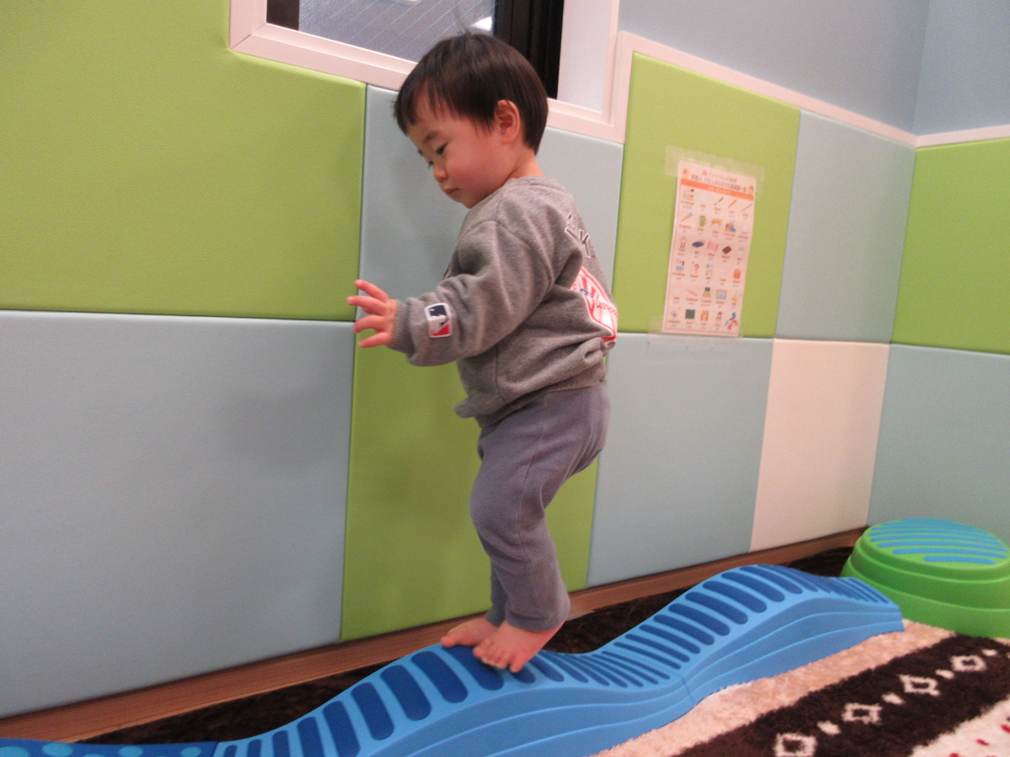 ももぐみさんは、バランスストーンや平均台に挑戦しました