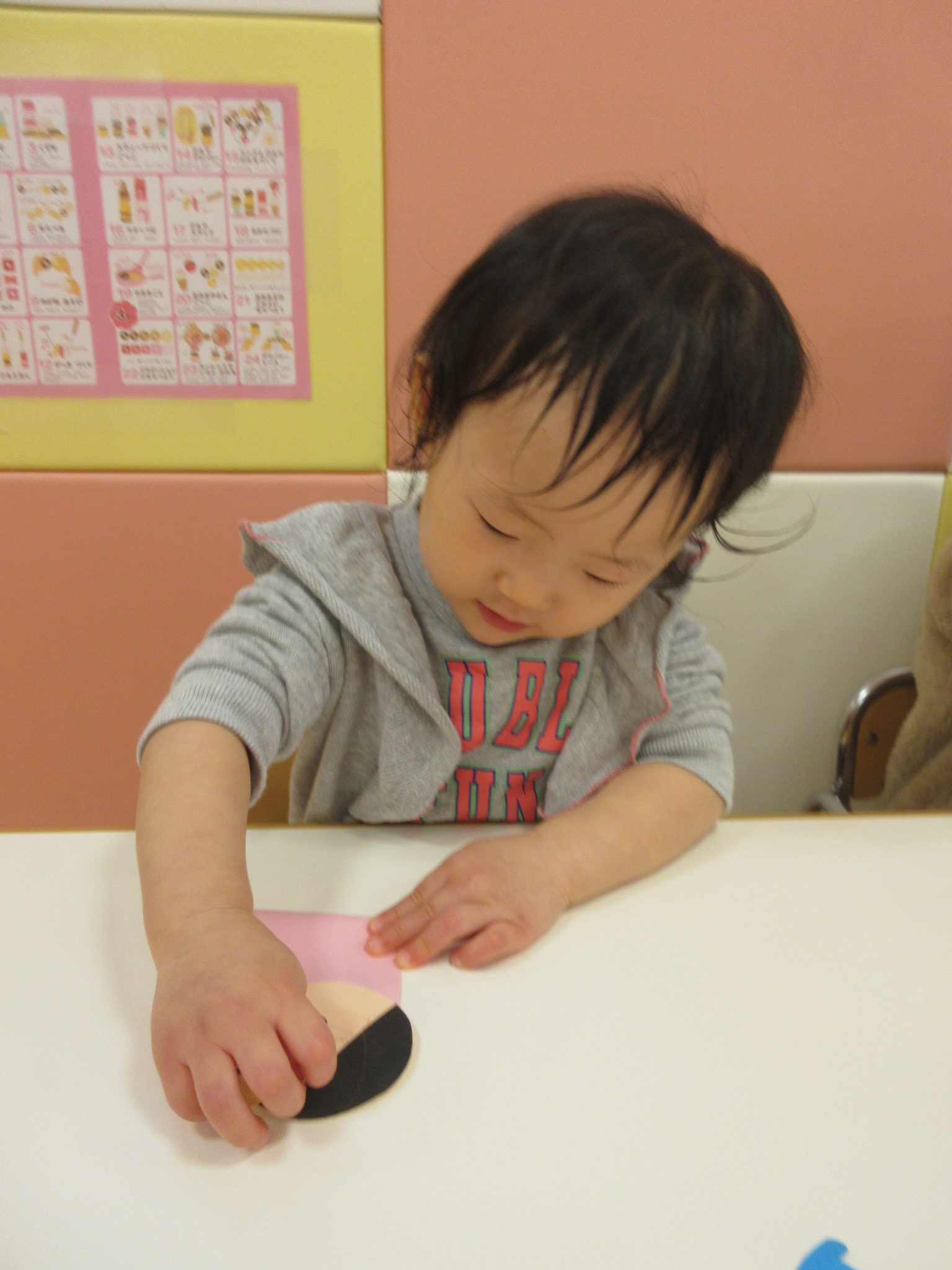 ↓シールを貼ることはお手のもの!とても上手です。