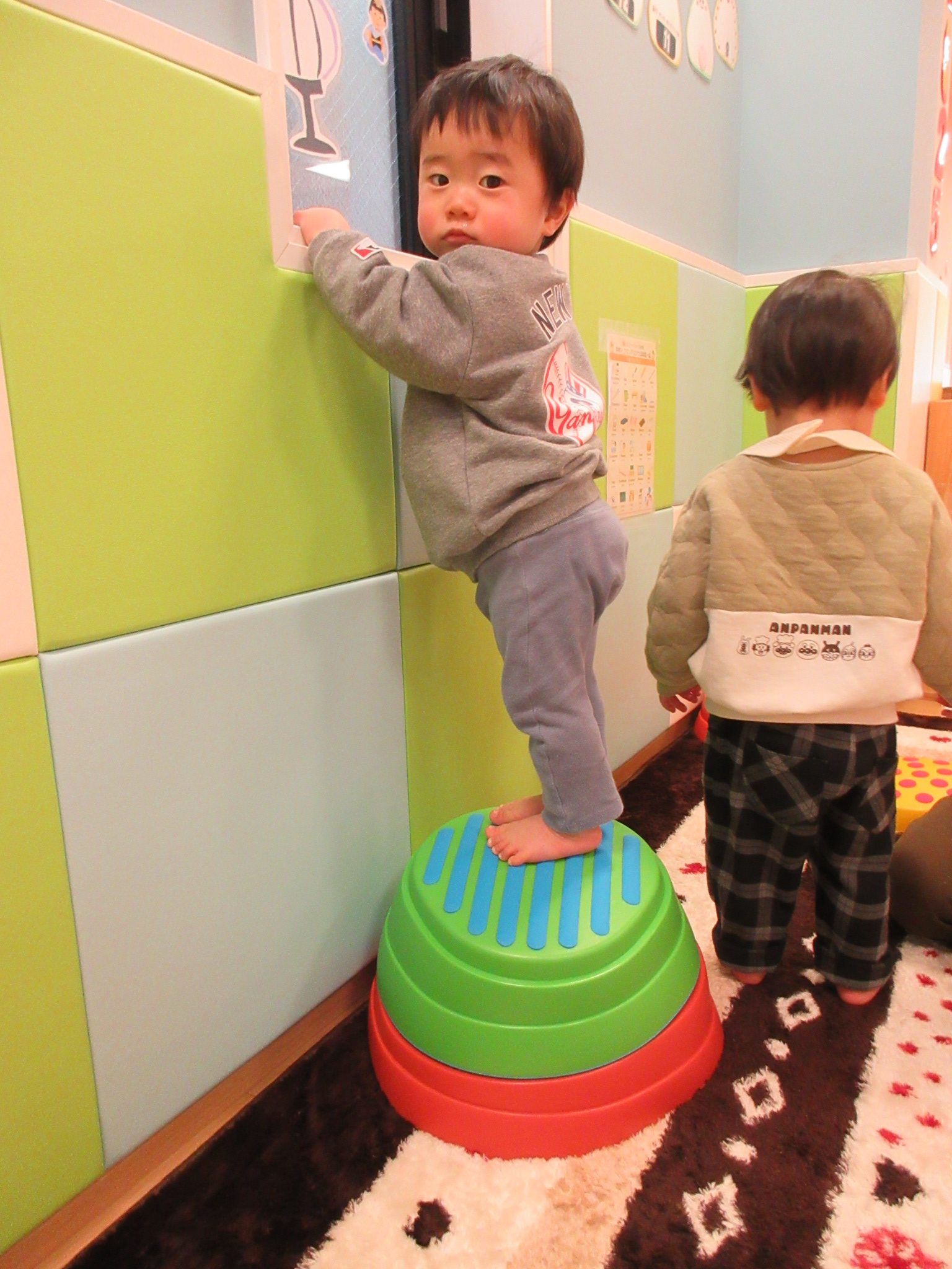 数ヶ月、前まではバランスストーンに乗ることで精一杯だった子どもたちが