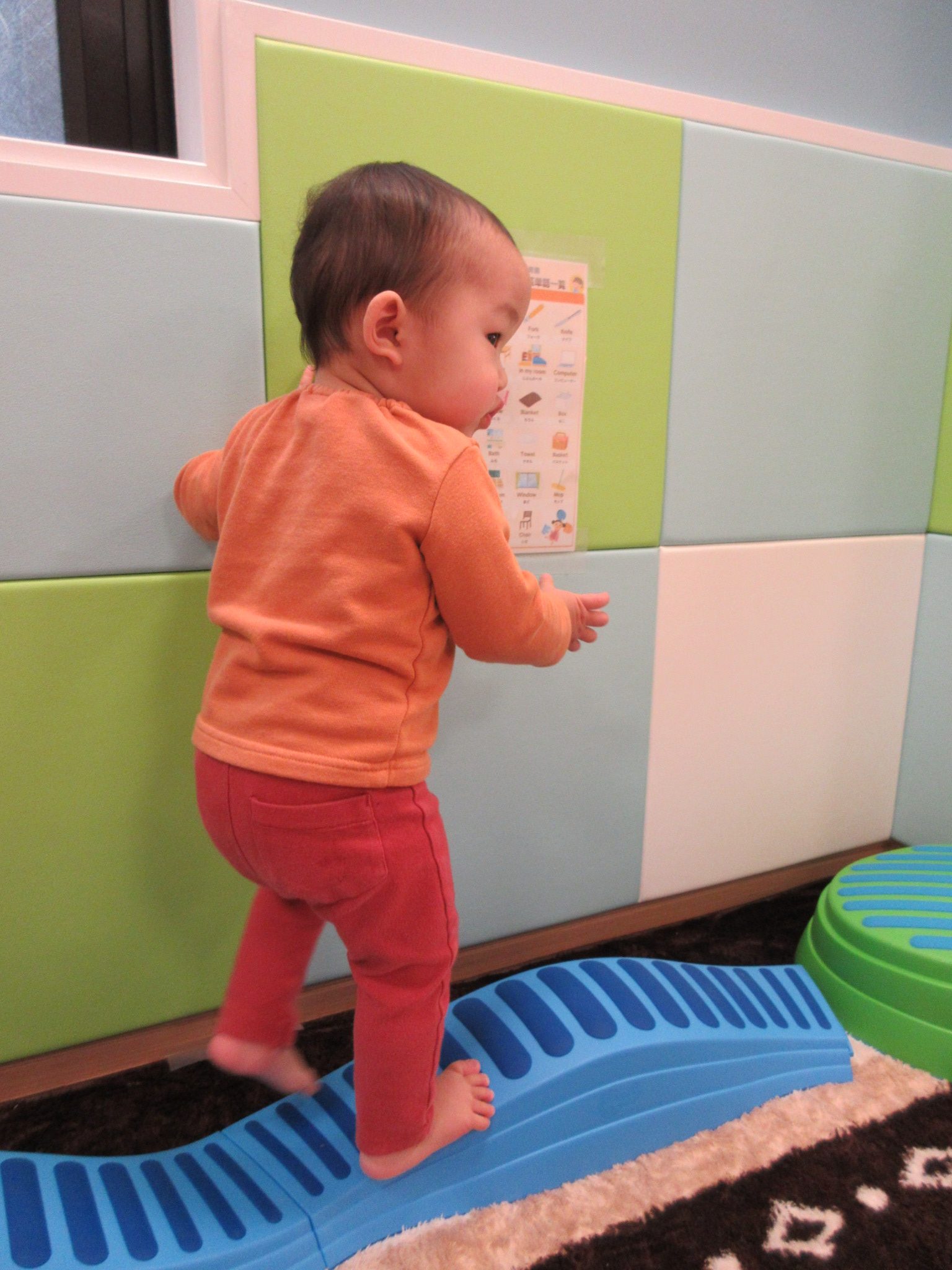 壁に手をつかずバランスをとりながら歩く子や、渡るスピードが早くなっていました