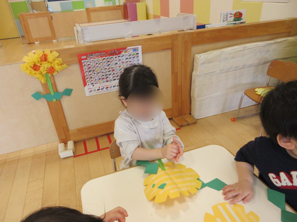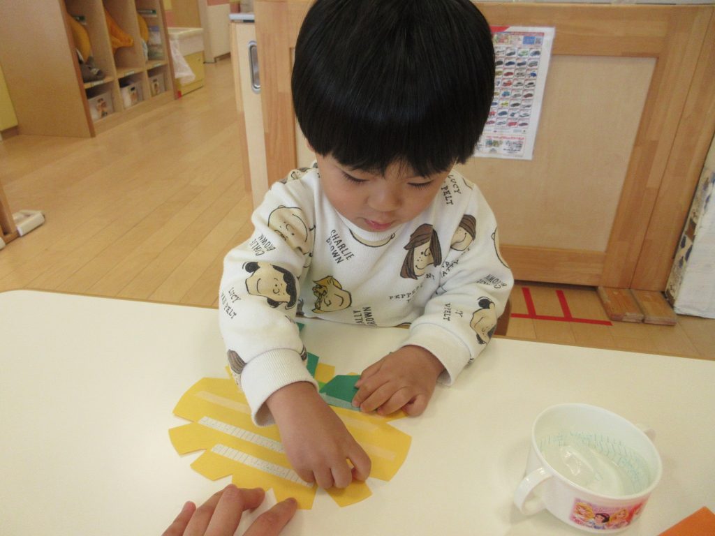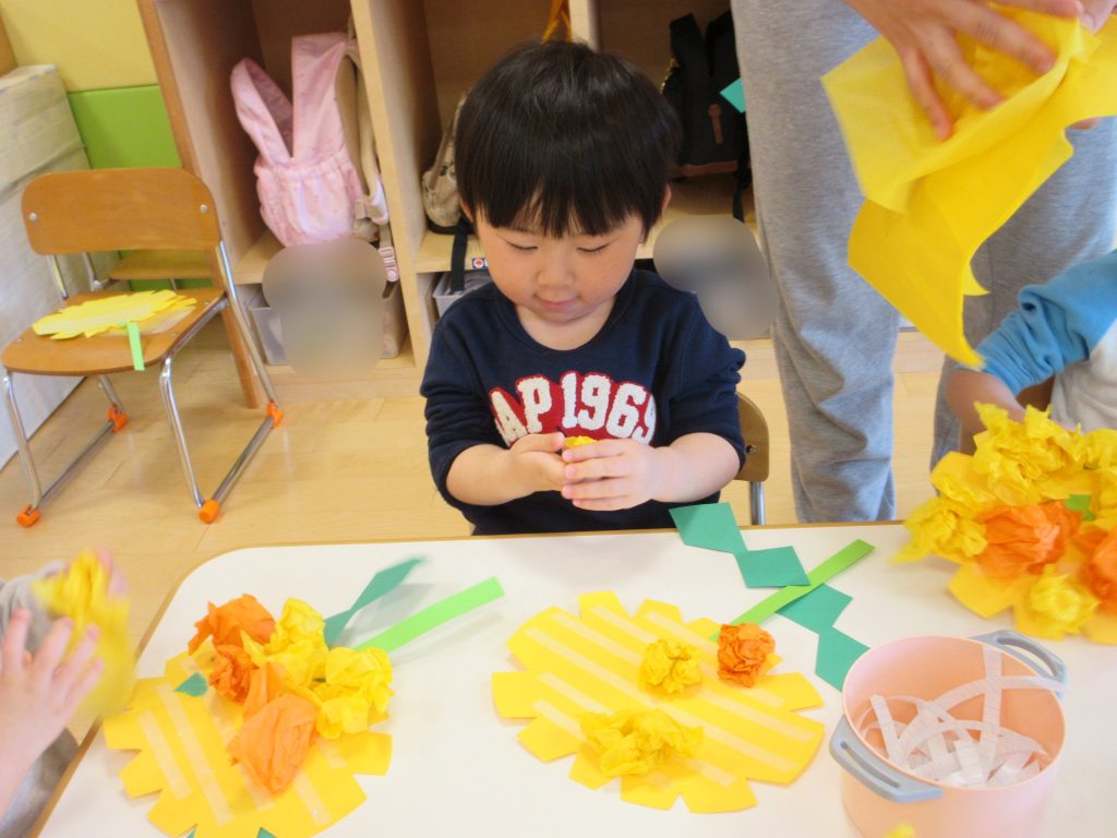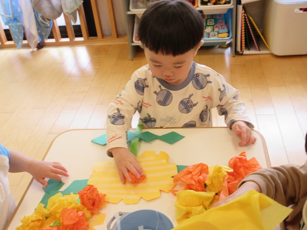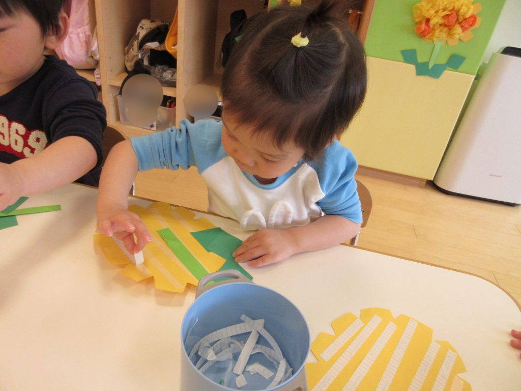 小さく丸める子や、大きな花にする子、隙間がないように沢山貼っている子がいました![]()
