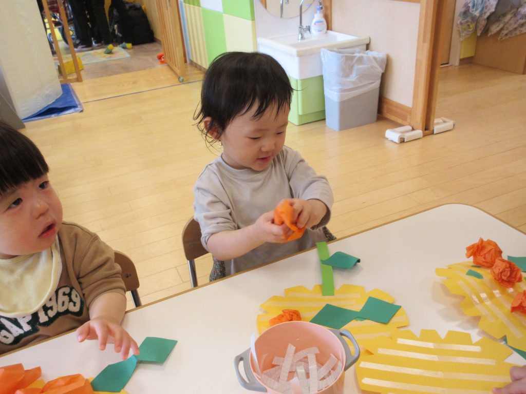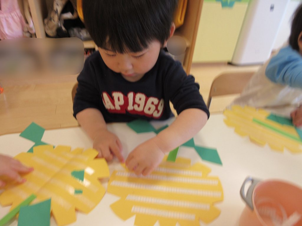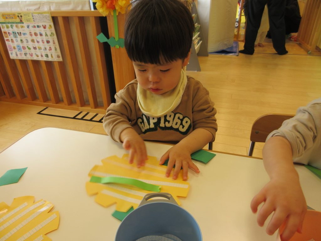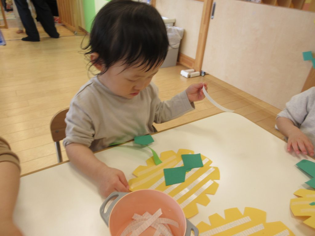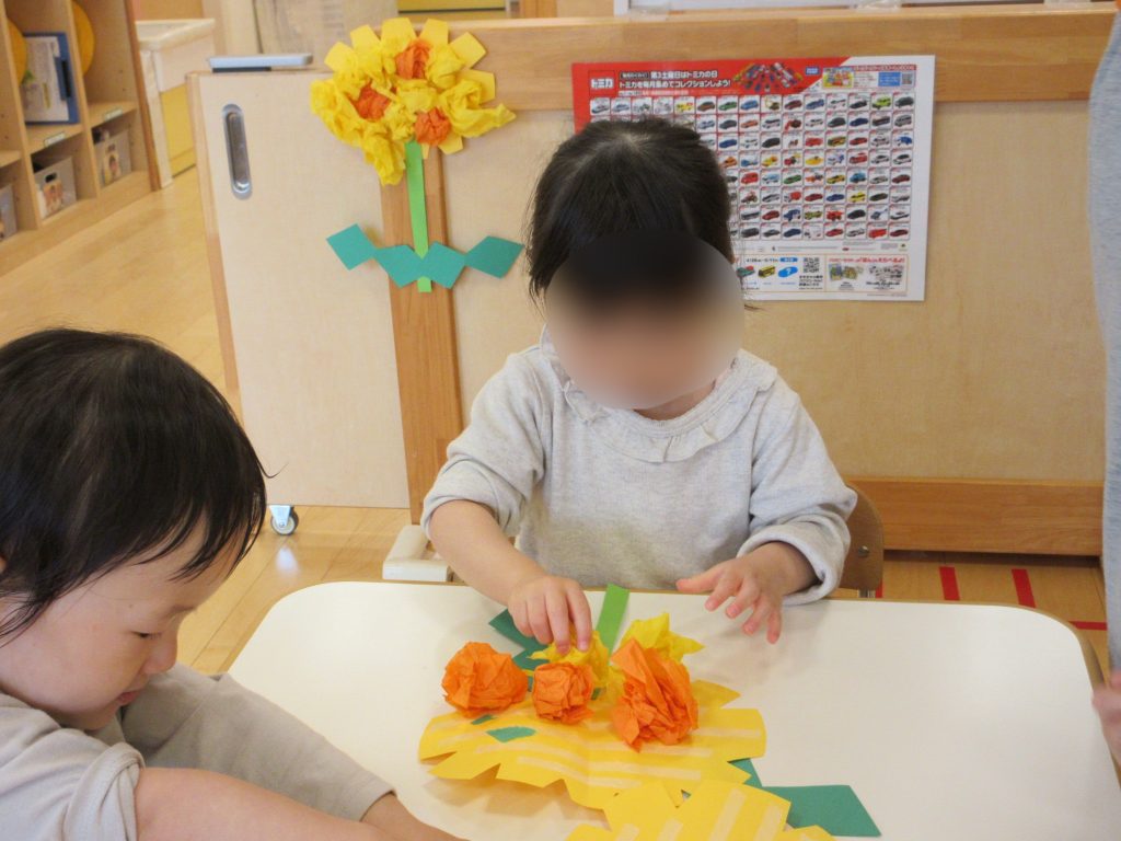 小さく丸める子や、大きな花にする子、隙間がないように沢山貼っている子がいました![]()