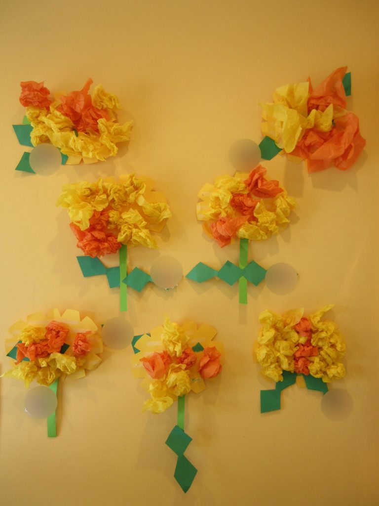 4月の製作で花紙を使用し『たたんぽぽ』の製作をしました![]()