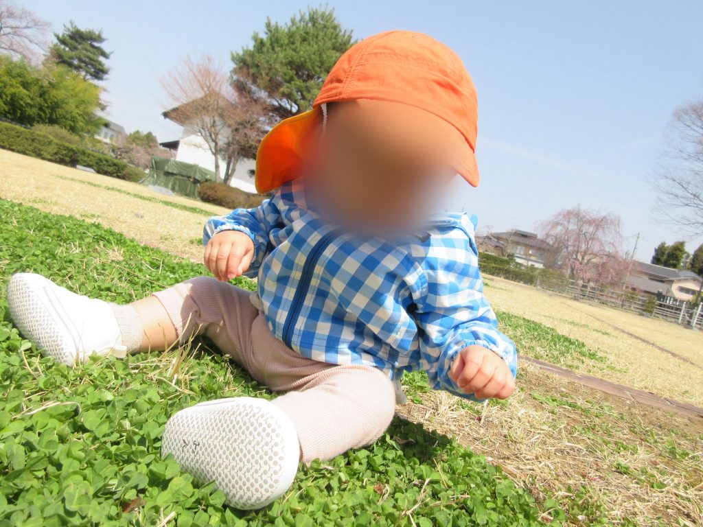 芝生公園では、レジャーシートの上に座ってお友だちが遊んでいる姿を少し観察してから先生たちと一緒に遊んでいましたよ!