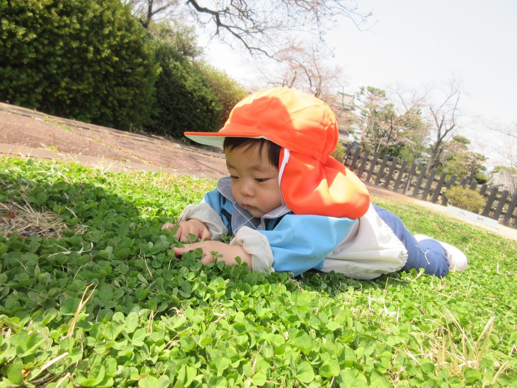 クローバーの上に寝そべって感触を楽しんでいた子、