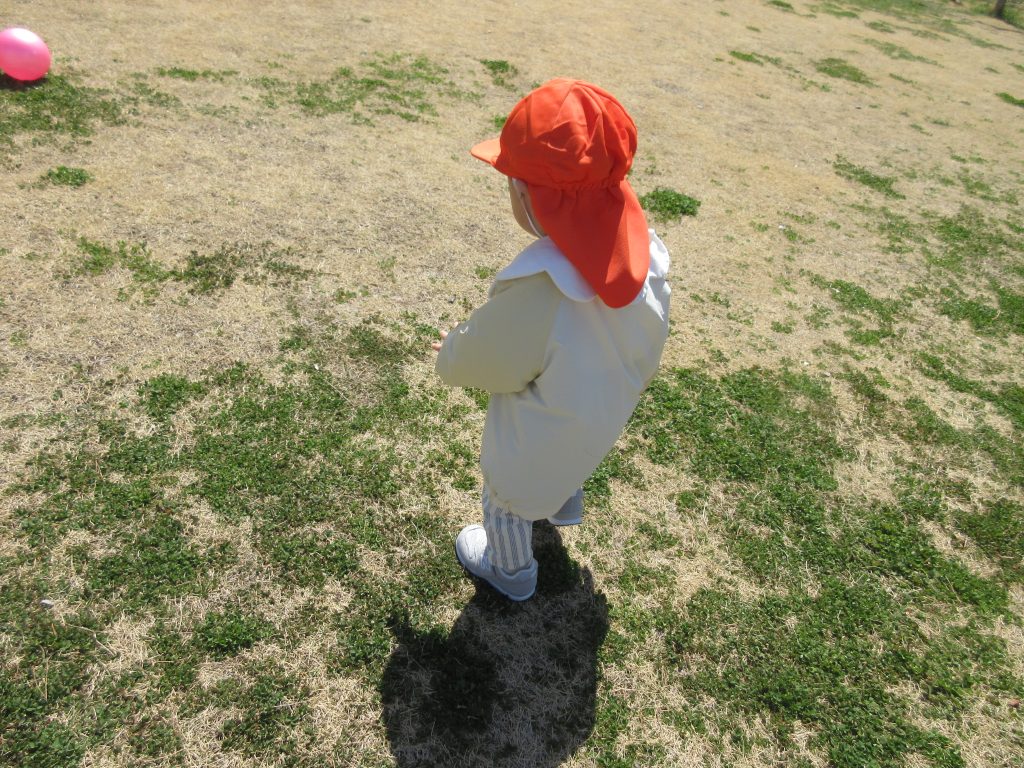 また、こちらのお友だちは、りんご組さんが使っていたボールを貸してもらって一生懸命追いかけていました!