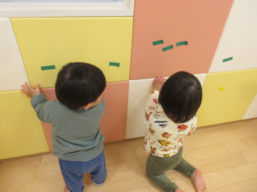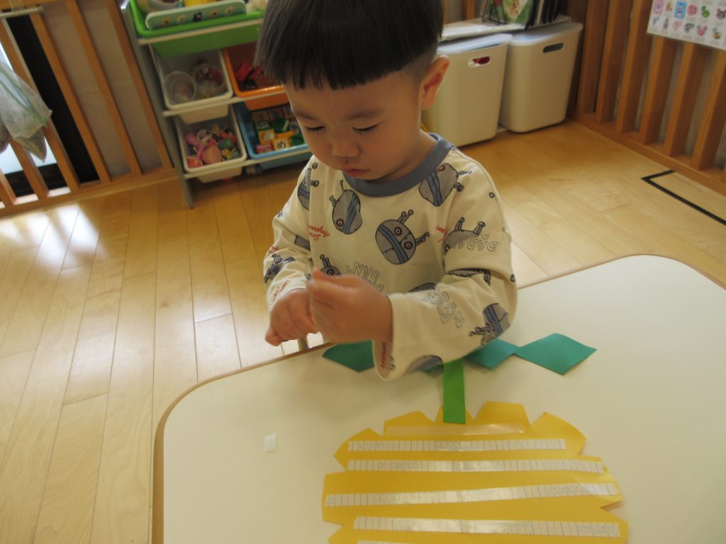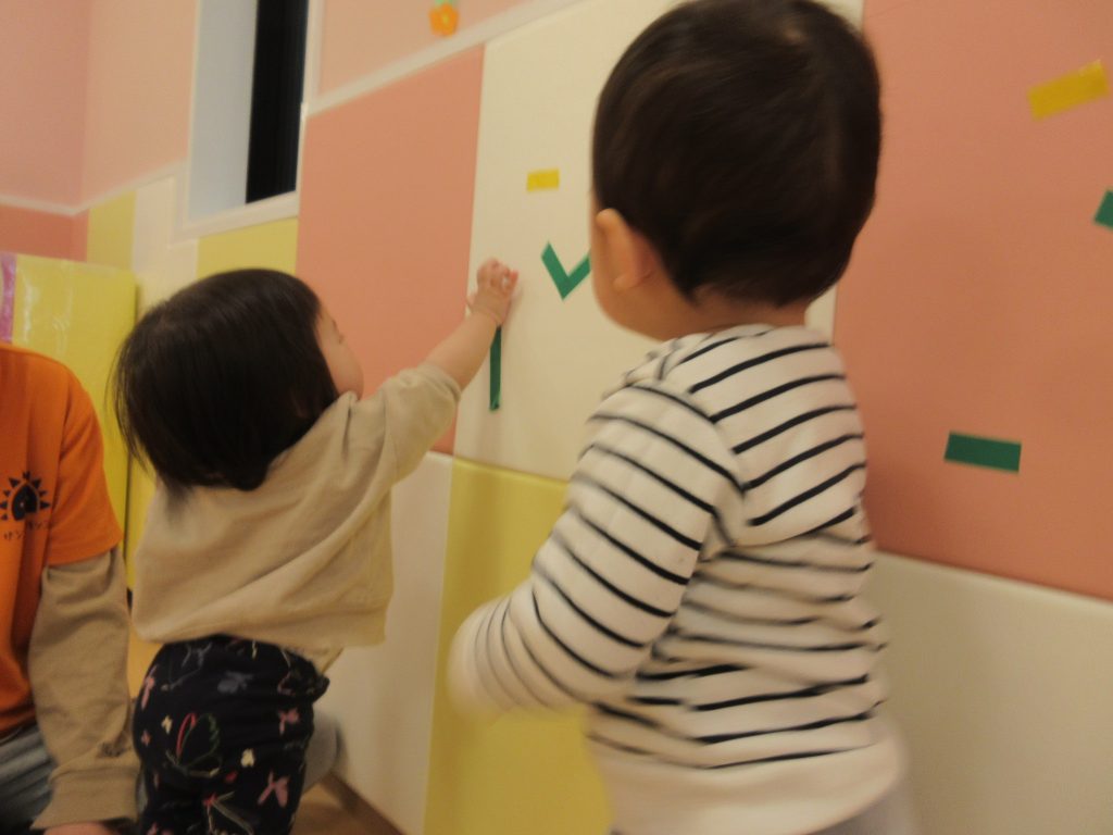 お部屋では、テープを貼って剥がす遊びにも挑戦しました![]()