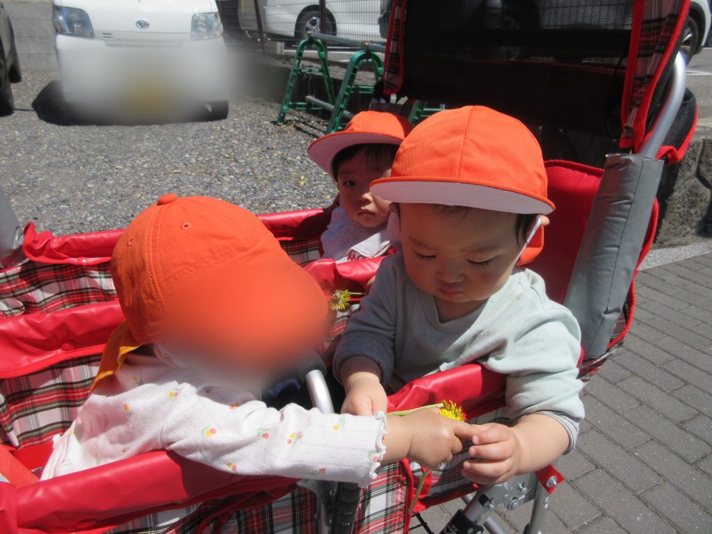 ↓帰り道は仲良くたんぽぽを触って楽しんでいましたよ途中、「ほしい!」という気持ちが強くなり、茎の部分を引っ張りあってちぎれてしまうとお互いに驚いていた姿もまた可愛らしかったです