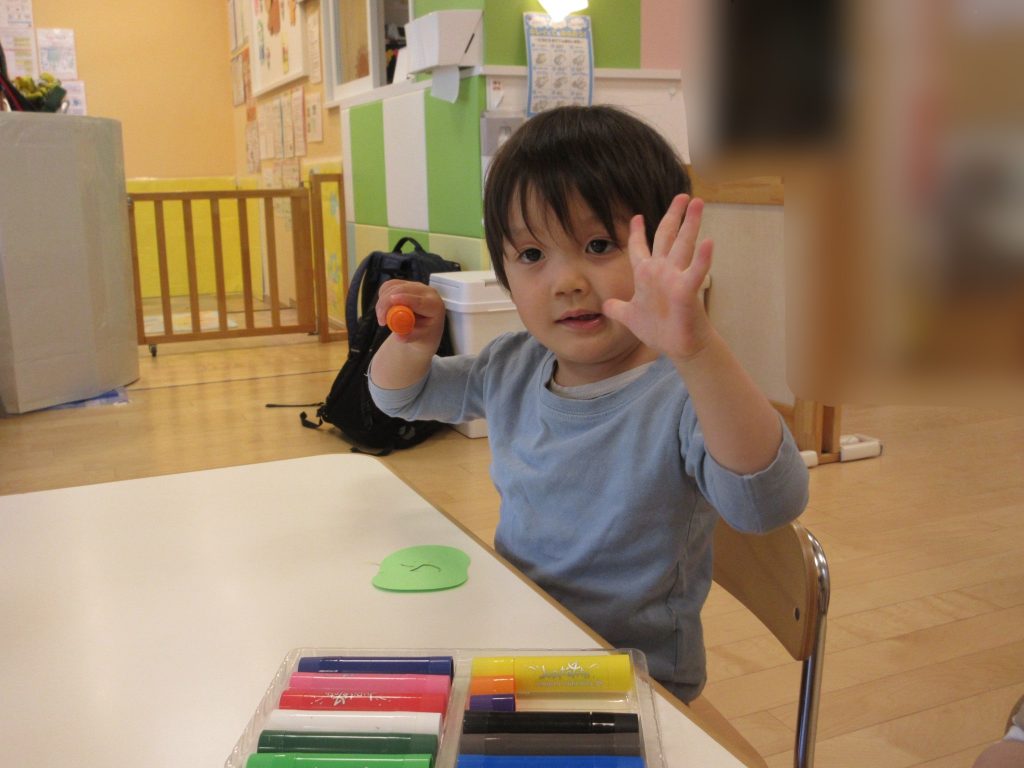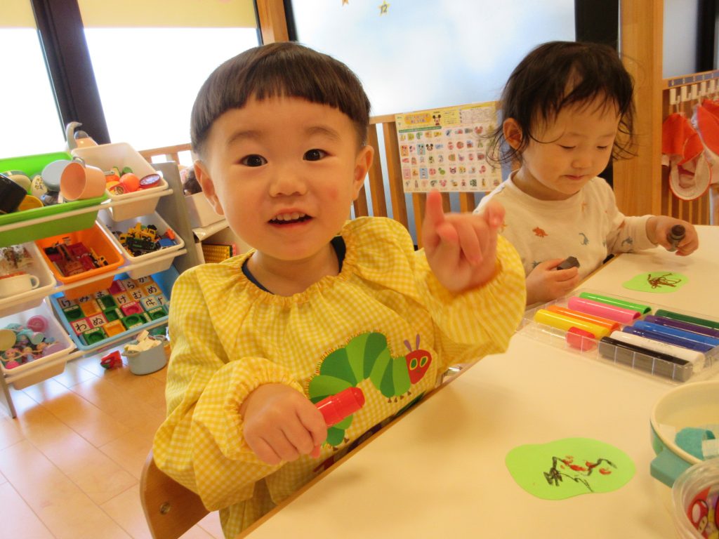 「クレヨンてについたよ〜!」と教えてくれる姿が可愛らしいですね![]()