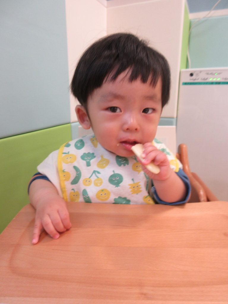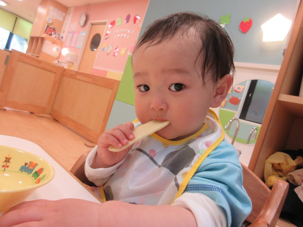 また、おやつの時間は上手にお皿から自分でおせんべいを持って食べることができるようになってきました![]()