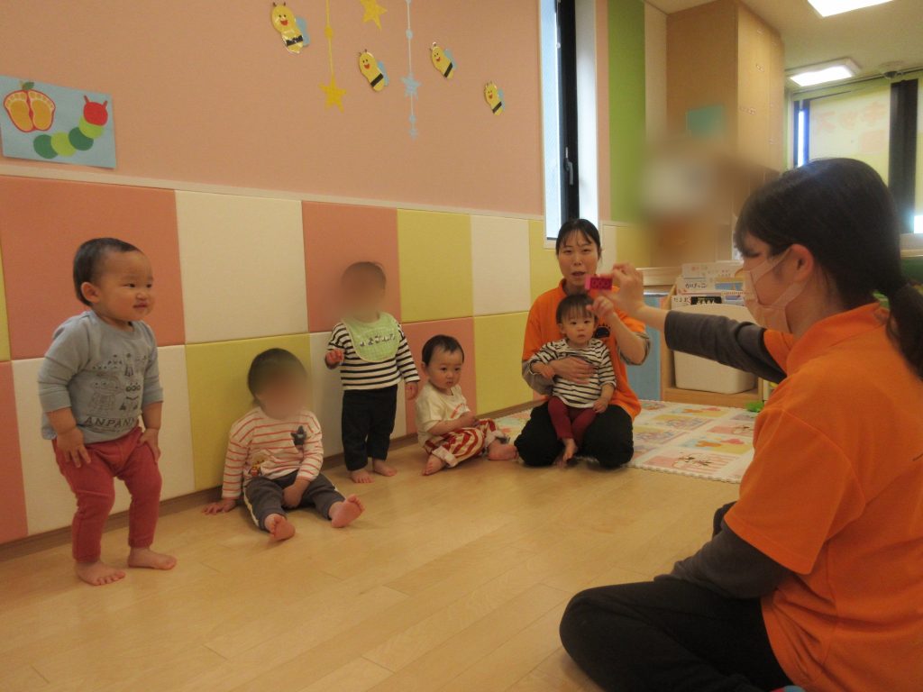 ももぐみ、いちごぐみのお友だちで実際にブロックにタッチしながら楽しみましたよ