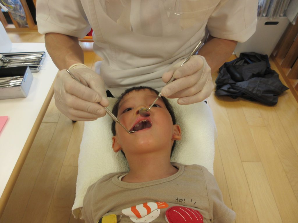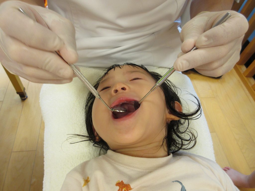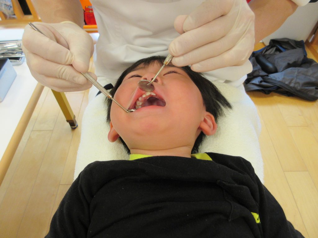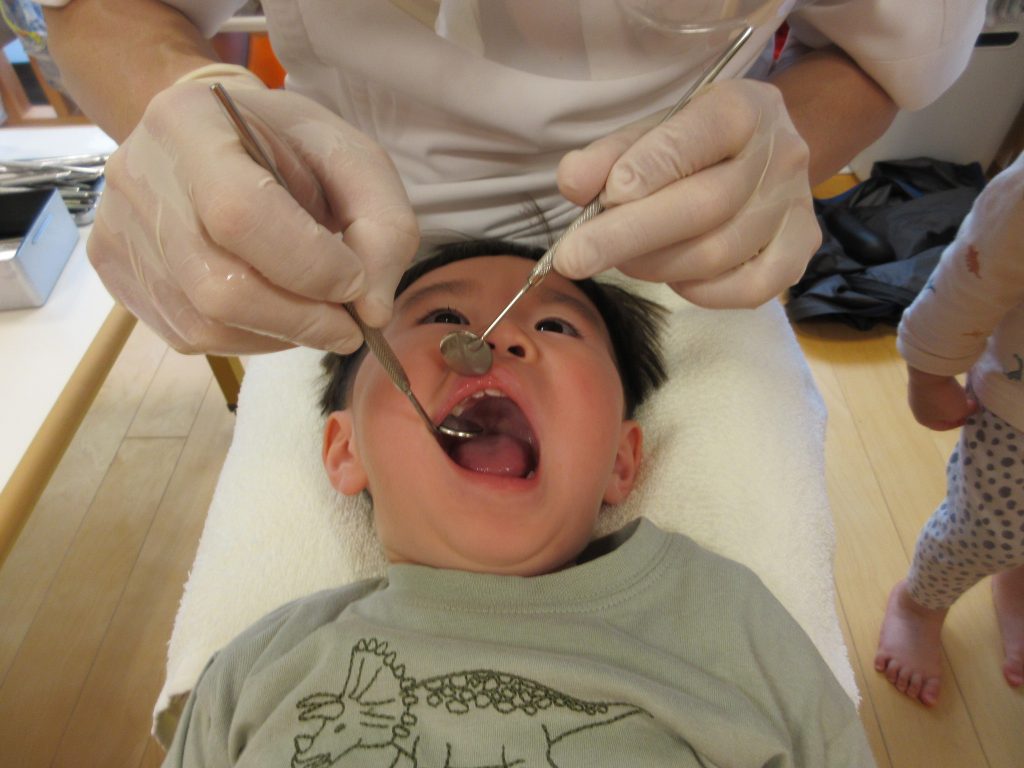 お医者さん(歯科医師さん)に興味津々で、お友だちが診てもらっている姿を側で見ていましたよ![]()