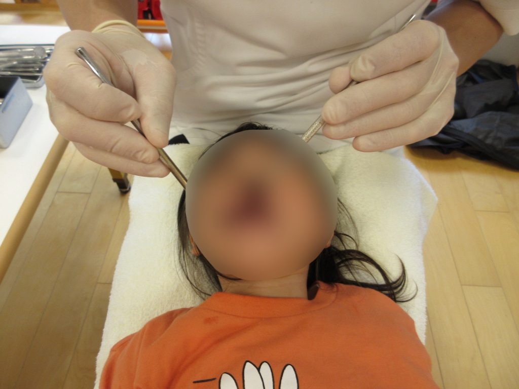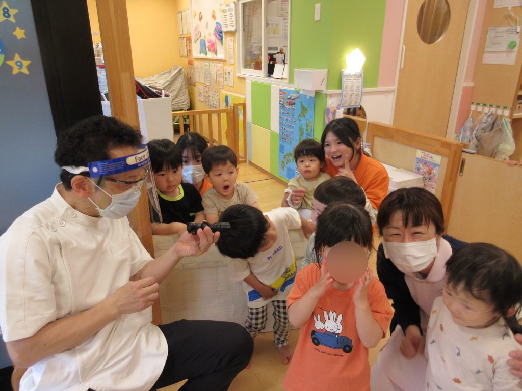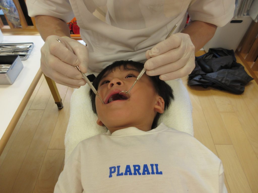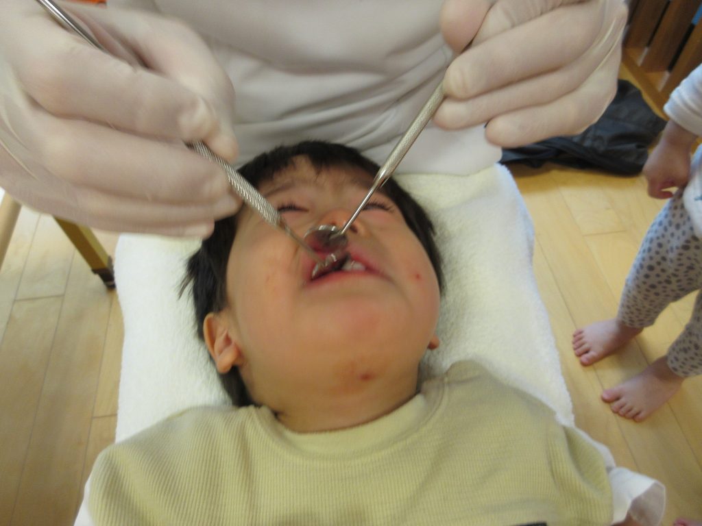 お医者さん(歯科医師さん)に興味津々で、お友だちが診てもらっている姿を側で見ていましたよ![]()